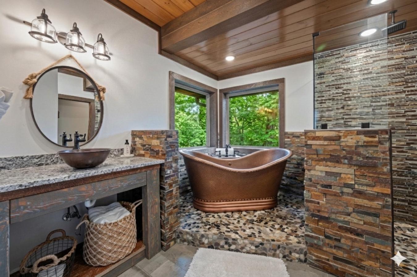 Luxury Creekside Retreat Hochatown/Broken Bow, OK, Private Estate Cabin at the End of a Cul-de-Sac overlooking a tranquil creek, this extraordinary 5-bedroom, 5-bathroom, plus 2 half-bath luxury retreat offers an exceptional blend of craftsmanship, privacy, and living in the heart of the coveted Hochatown resort market.