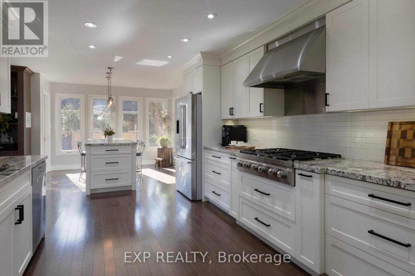 Welcome to 109 Parkview Drive in the heart of Dorchester. This beautifully maintained two-story home sits on a private, landscaped lot surrounded by mature trees, just steps from the scenic walking trails of Dorchester Mill Pond. Enter through a custom front door into a bright, spacious foyer. The open-concept main floor features soaring cathedral ceilings in the living and dining areas, creating an inviting space filled with natural light. The family room showcases a striking floor-to-ceiling marble feature wall, complete with a modern fireplace and built-in shelving. The custom chefs kitchen is the centerpiece of the home, featuring a 6-burner Dacor gas cooktop, JennAir wall oven system, large island with integrated wine/beer fridge, and numerous custom upgrades. Upstairs offers 3 generously sized bedrooms and 2 bathrooms, including a spacious primary suite with three walk-in closets and a luxurious 4-piece ensuite. Additional features include Canadian maple flooring throughout, main-floor laundry, an oversized 2-car garage, a concrete driveway, and a storage shed. The unfinished basement includes a newly installed egress window, providing excellent potential for future living space. This meticulously cared-for home offers the perfect blend of comfort, style, and location, ideal for both everyday living and entertaining. (id:58753)