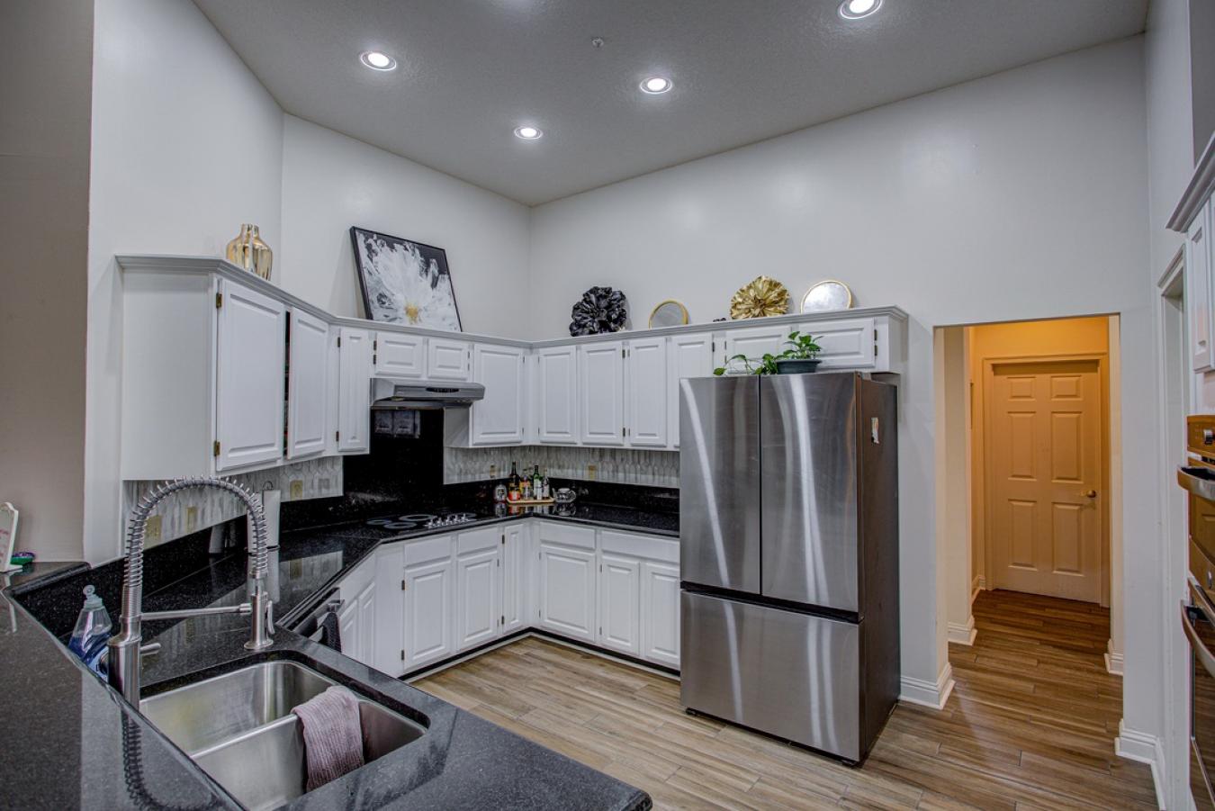 This stunning 3 bedroom, 2 bathroom gem was completely remodeled down to the studs in 2025! Enjoy an open floor plan, a huge Taj Mahal countertop island with custom cabinetry, stainless appliances, brass pulls and details, gorgeous new pendant lighting and a spacious walk in pantry which also includes a laundry room. Cozy fireplace second living area makes this space perfect for entertaining with new sliding doors leading to large backyard, patio area. Every detail shines with new windows, updated electric, a new tankless water heater, custom cabinetry everywhere, new lighting, quartz and marble countertops, brass accents, fresh paint, and new hardwoods throughout. Primary suite includes walk in closet, built in drawers, double vanity with quartz countertops, gorgeous walk in shower with brass accents and frameless glass. Second bath has precious checkerboard flooring with custom cabinets, quart countertops. Generous sized 2 more bedrooms with hardwood floors, new fans, nice closet space. New landscaping and an electric gate add convenience and curb appeal. Move right in, just bring your toothbrush! Dont miss out on this adorable home!