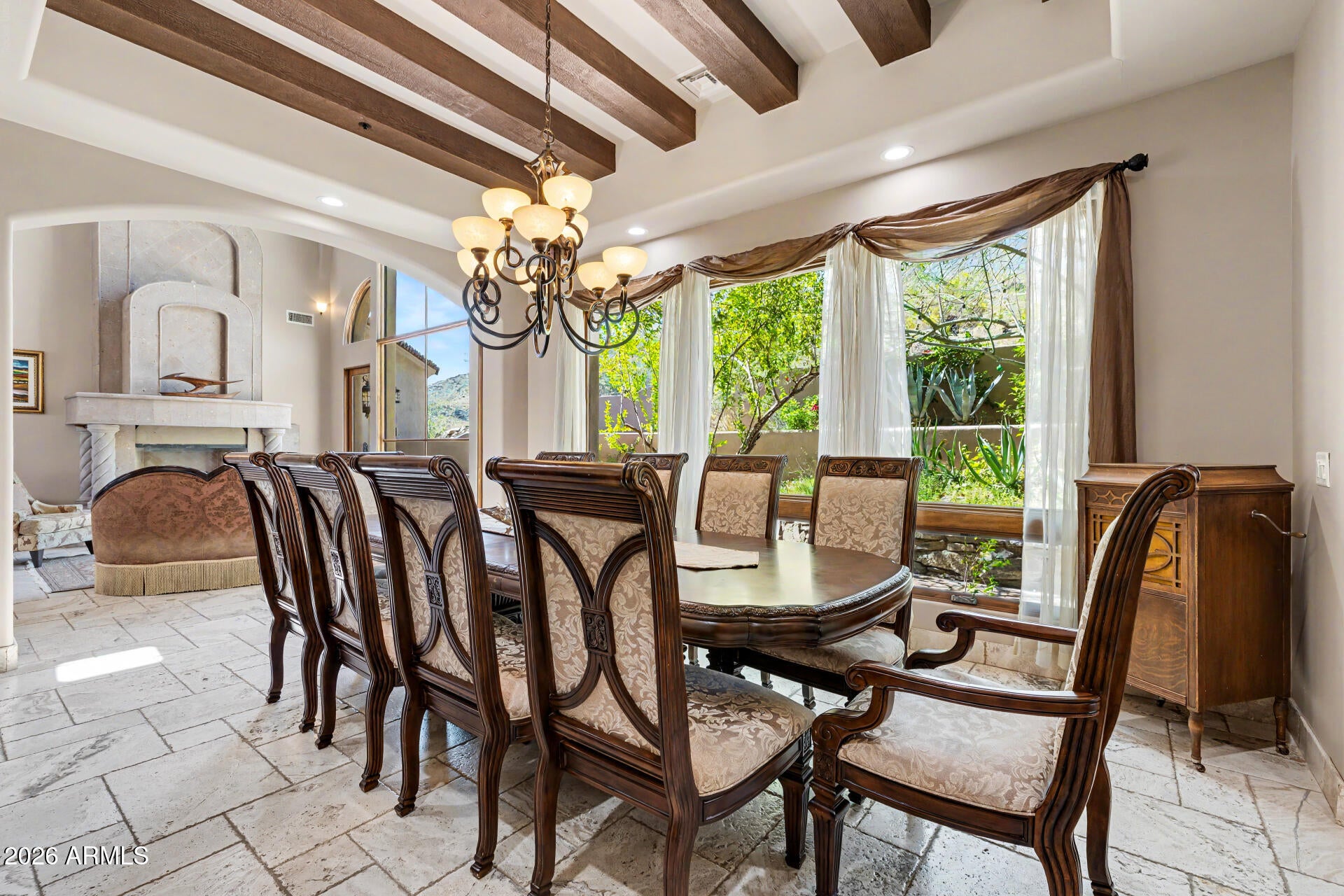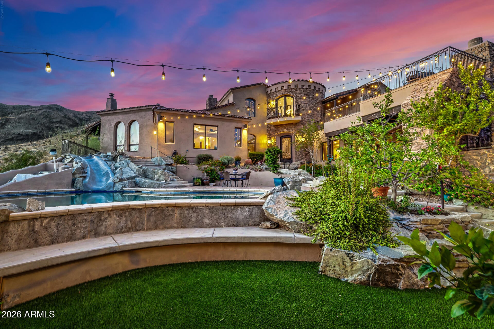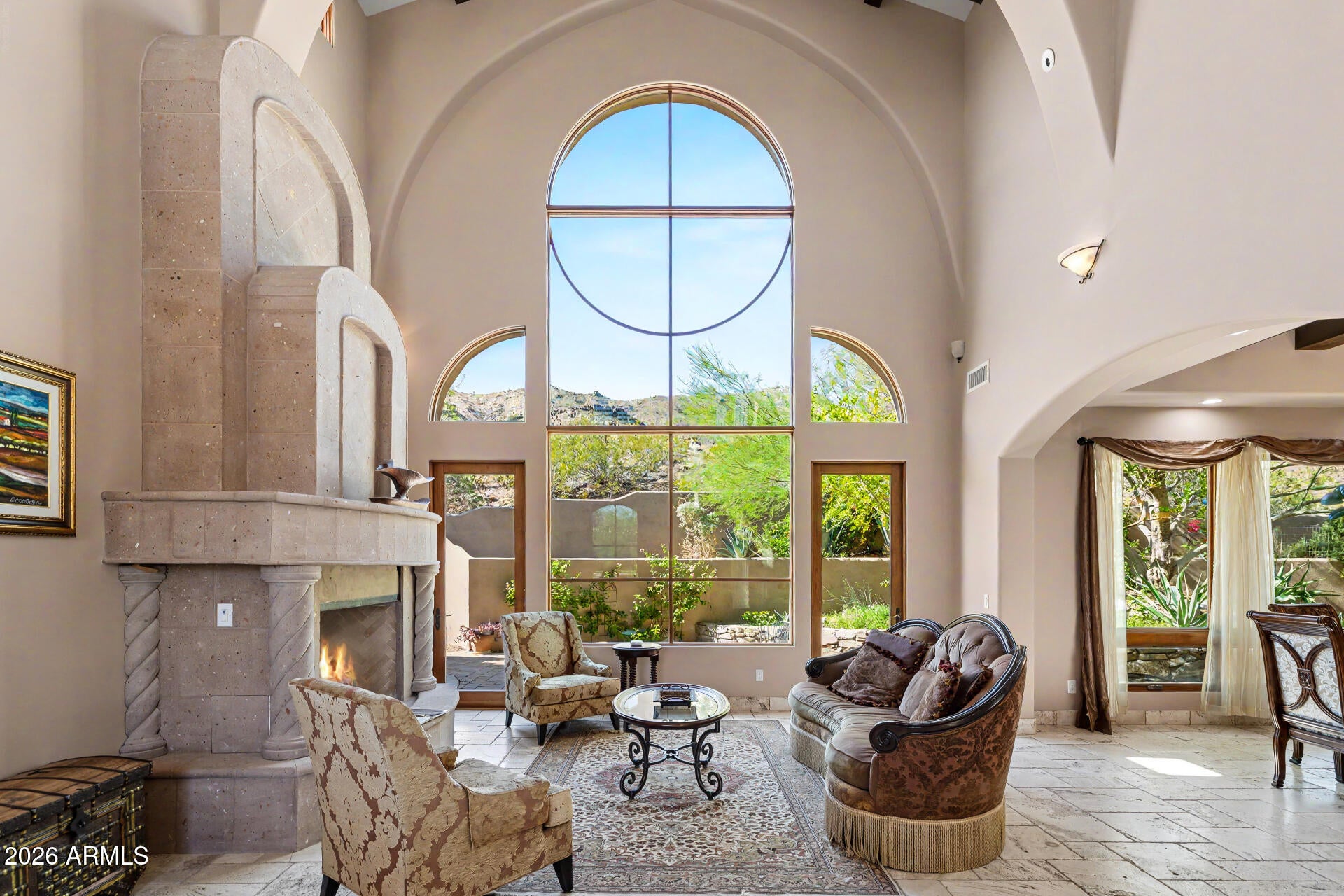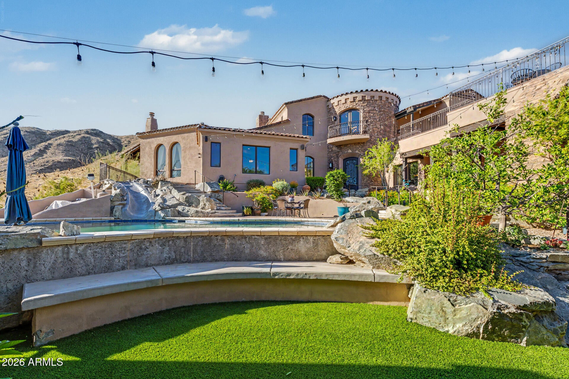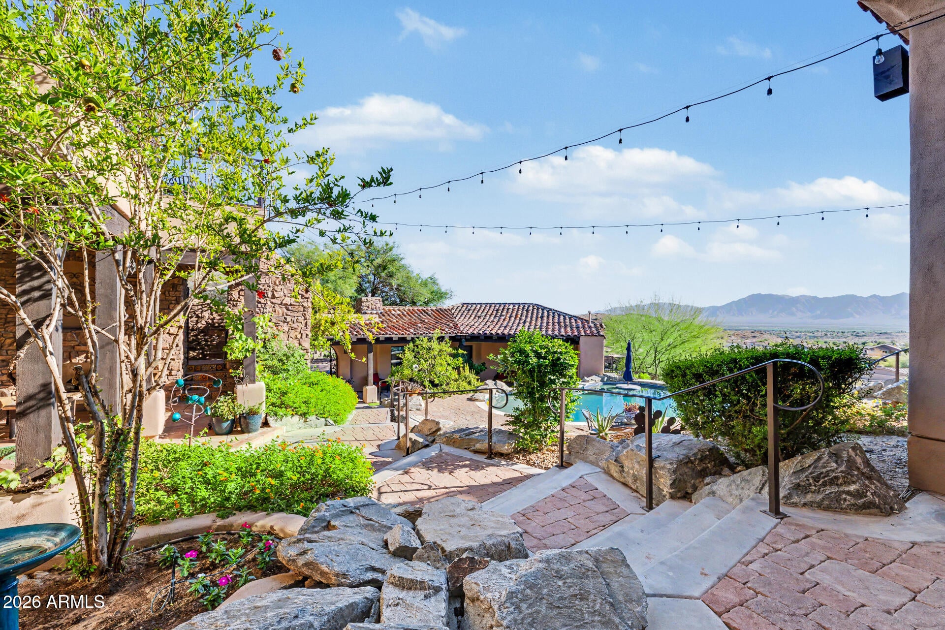 This is the one! Experience the luxury, peace, and breathtaking mountain views of this stunning residence. From the gorgeous facade, rare 6-car garage with a huge paver driveway, to the beautifully manicured landscape, everything about this home is sure to impress. The generous living spaces are filled with natural light, boasting elegant touches throughout-soaring ceilings, dramatic arches, a fireplace to add warmth, floor-to-ceiling windows, exposed beams that add character, and a soothing palette, making every space ideal for entertaining and comfortable everyday living. The kitchen is a chefs dream, complete with abundant cabinetry adorned with crown molding, tile backsplash, granite countertops, a large walk-in pantry, high-end appliances, and an island, perfect for meal prep and mid midnight snacks. The main bedroom is a true retreat, including a fireplace to ensure cozy winter nights, large windows that offer beautiful views, a spa-like bathroom with a separate shower & tub, and a walk-in closet for all your belongings. The den and loft add flexibility, providing space and privacy to work from home, study, or engage in your hobbies in peace. Another great feature of this home is the huge guest quarters, with spacious living areas complete with a fireplace, a separate exit, and a kitchenette. The backyard oasis is a dream, offering a serene landscape that pairs beautifully with the mountain views you can enjoy from the view deck and covered patio with a fireplace. Host gatherings and relax in the ample seating space with pavers, and lets not forget the sparkling pool and spa! This gem truly has it all! Just WOW!
