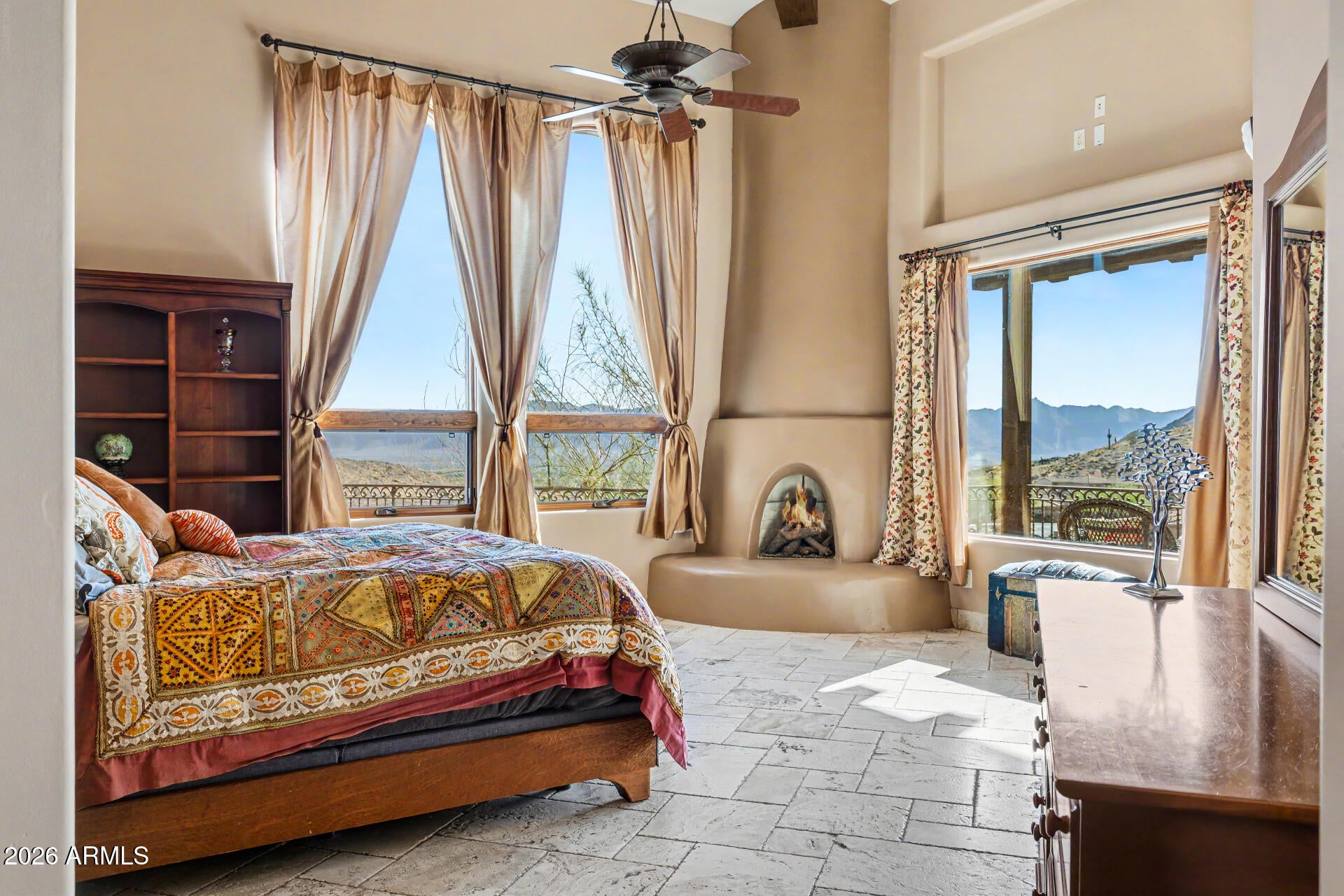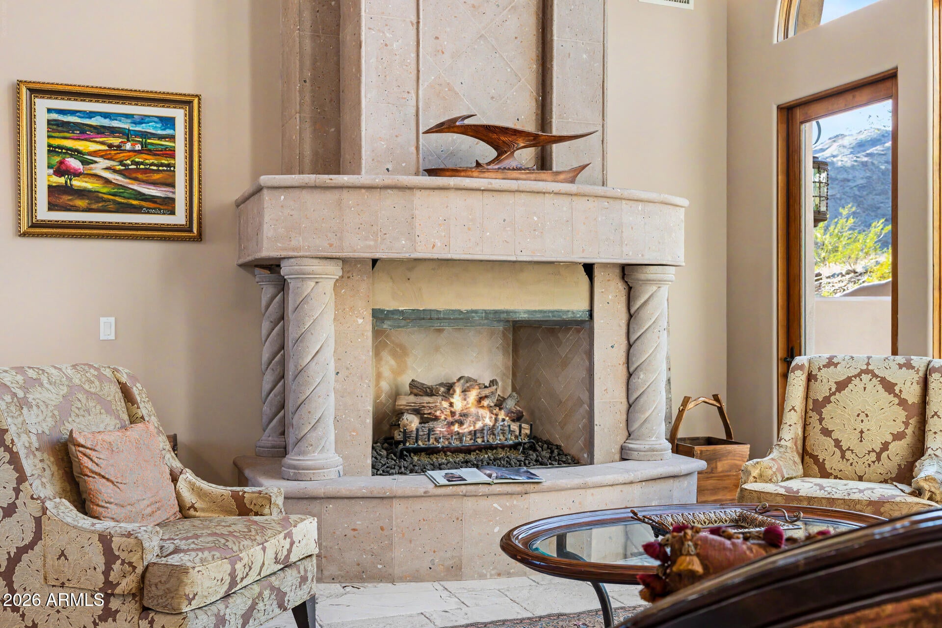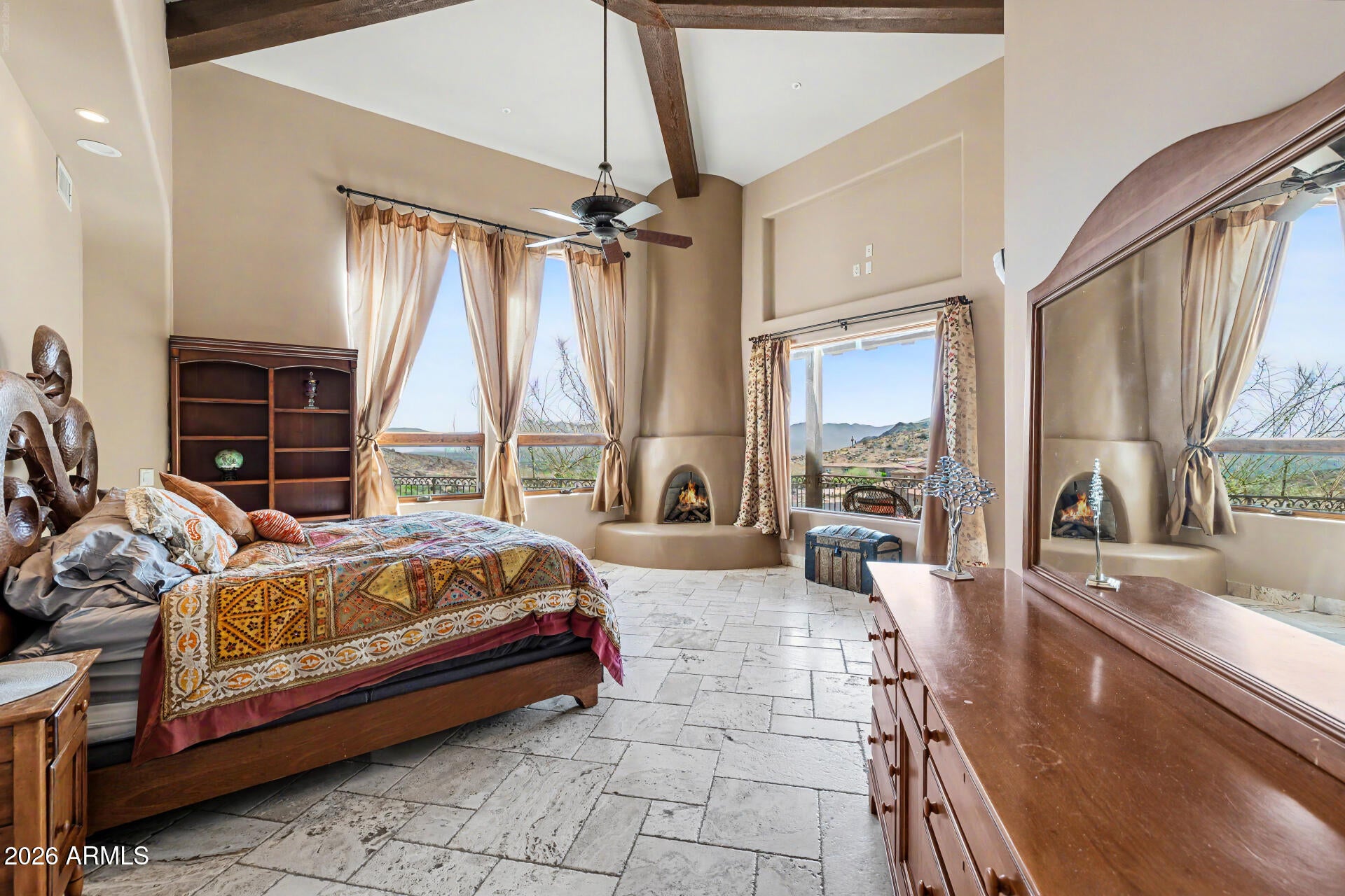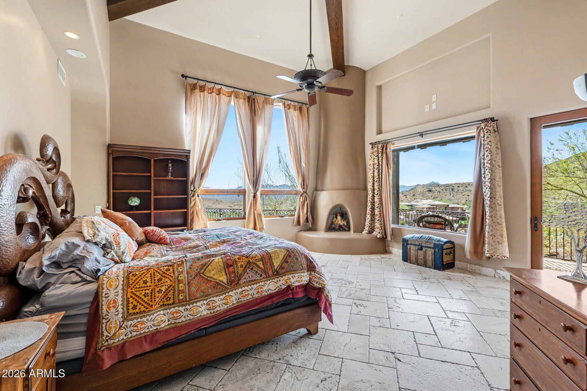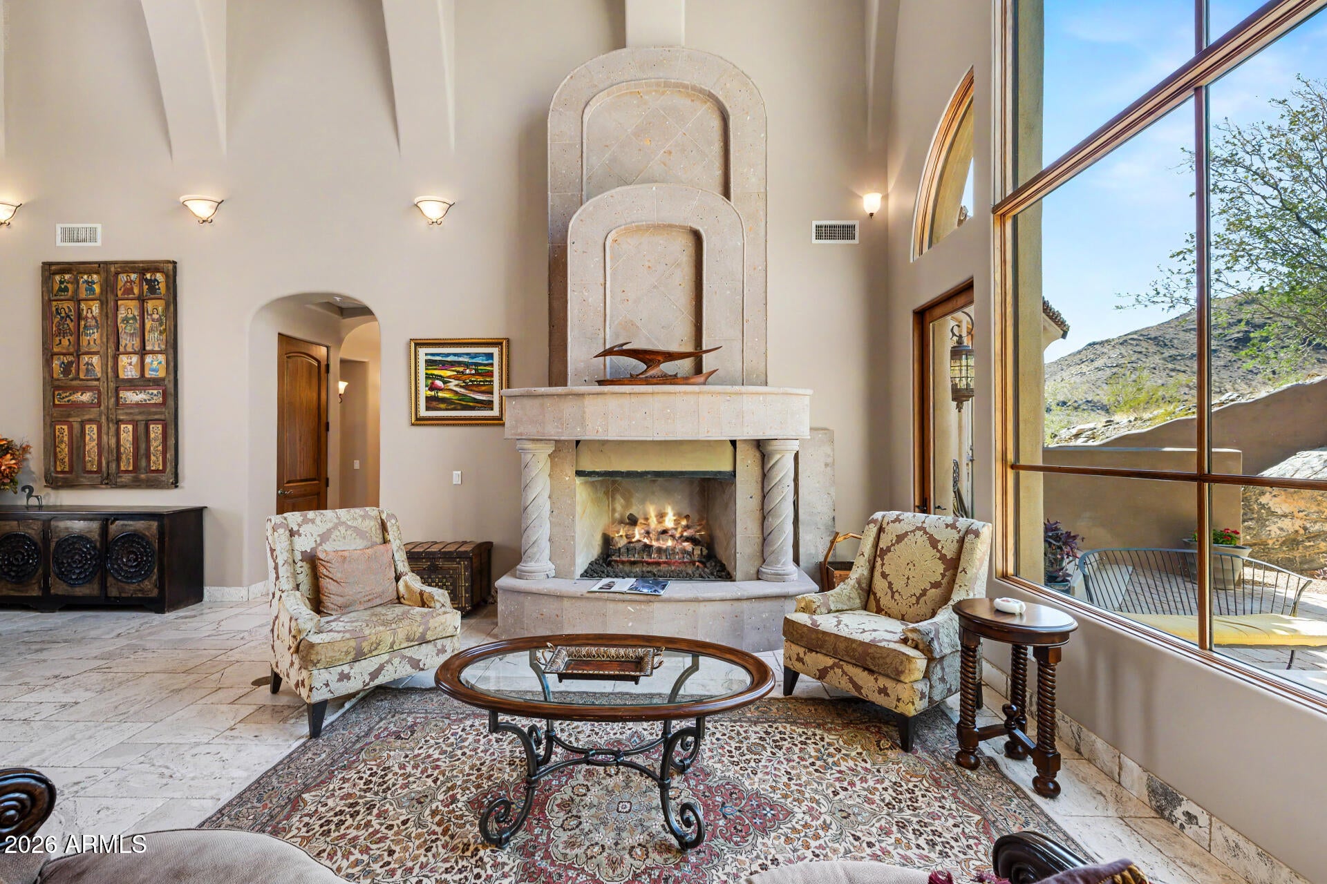 This is the one! Experience the luxury, peace, and breathtaking mountain views of this stunning residence. From the gorgeous facade, rare 6-car garage with a huge paver driveway, to the beautifully manicured landscape, everything about this home is sure to impress. The generous living spaces are filled with natural light, boasting elegant touches throughout-soaring ceilings, dramatic arches, a fireplace to add warmth, floor-to-ceiling windows, exposed beams that add character, and a soothing palette, making every space ideal for entertaining and comfortable everyday living. The kitchen is a chefs dream, complete with abundant cabinetry adorned with crown molding, tile backsplash, granite countertops, a large walk-in pantry, high-end appliances, and an island, perfect for meal prep and mid midnight snacks. The main bedroom is a true retreat, including a fireplace to ensure cozy winter nights, large windows that offer beautiful views, a spa-like bathroom with a separate shower & tub, and a walk-in closet for all your belongings. The den and loft add flexibility, providing space and privacy to work from home, study, or engage in your hobbies in peace. Another great feature of this home is the huge guest quarters, with spacious living areas complete with a fireplace, a separate exit, and a kitchenette. The backyard oasis is a dream, offering a serene landscape that pairs beautifully with the mountain views you can enjoy from the view deck and covered patio with a fireplace. Host gatherings and relax in the ample seating space with pavers, and lets not forget the sparkling pool and spa! This gem truly has it all! Just WOW!