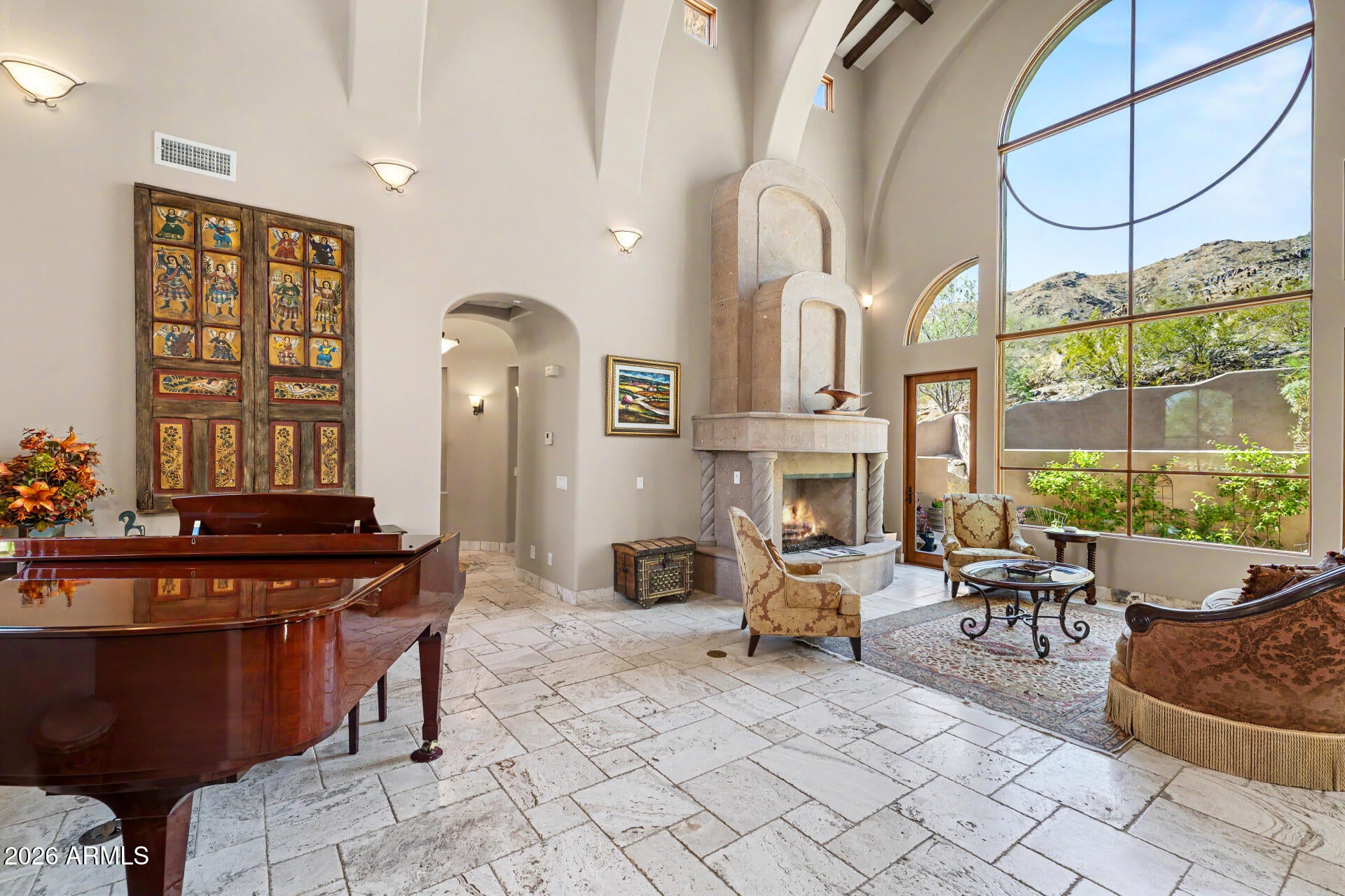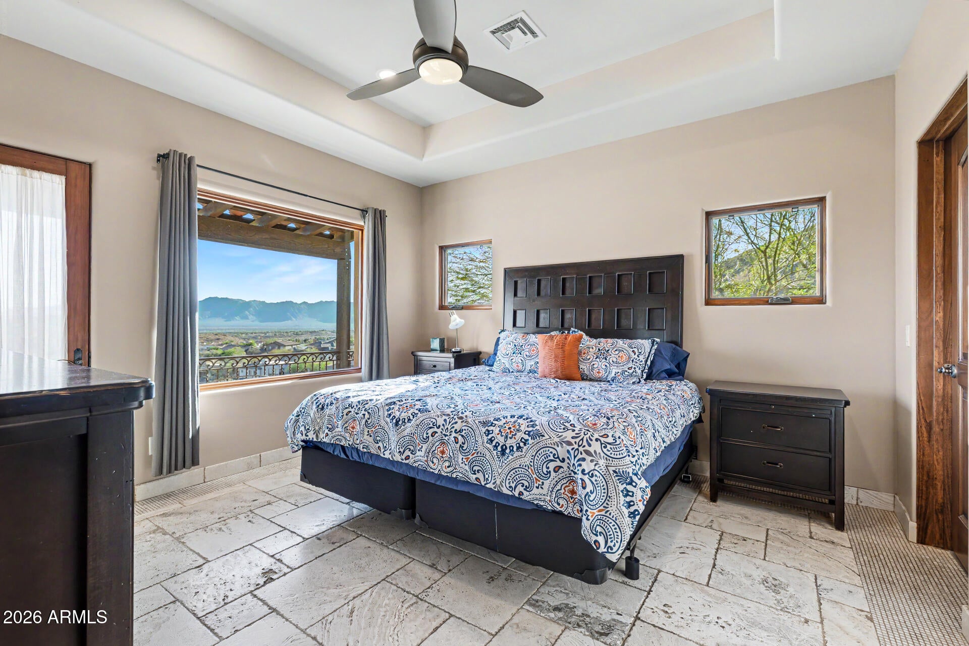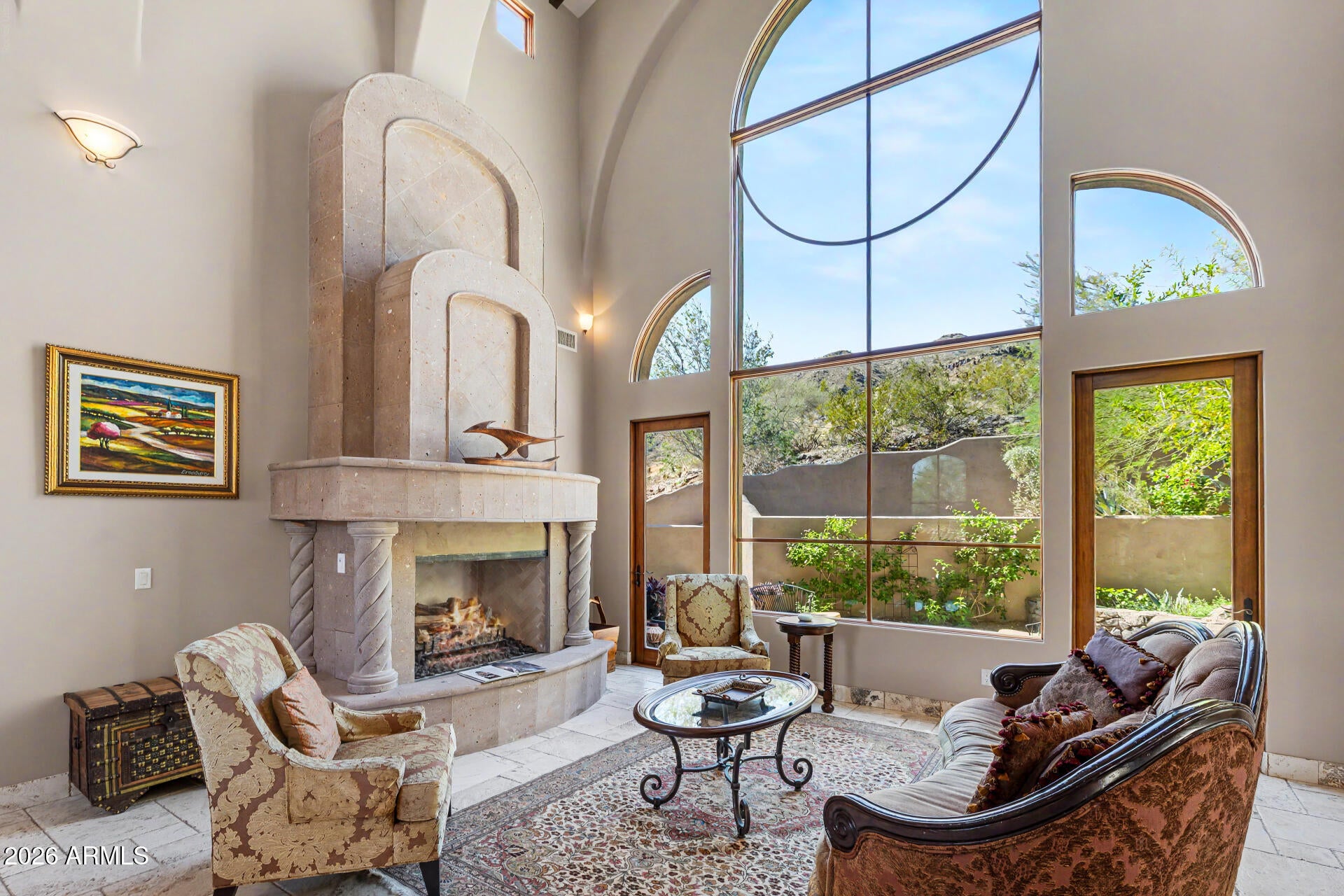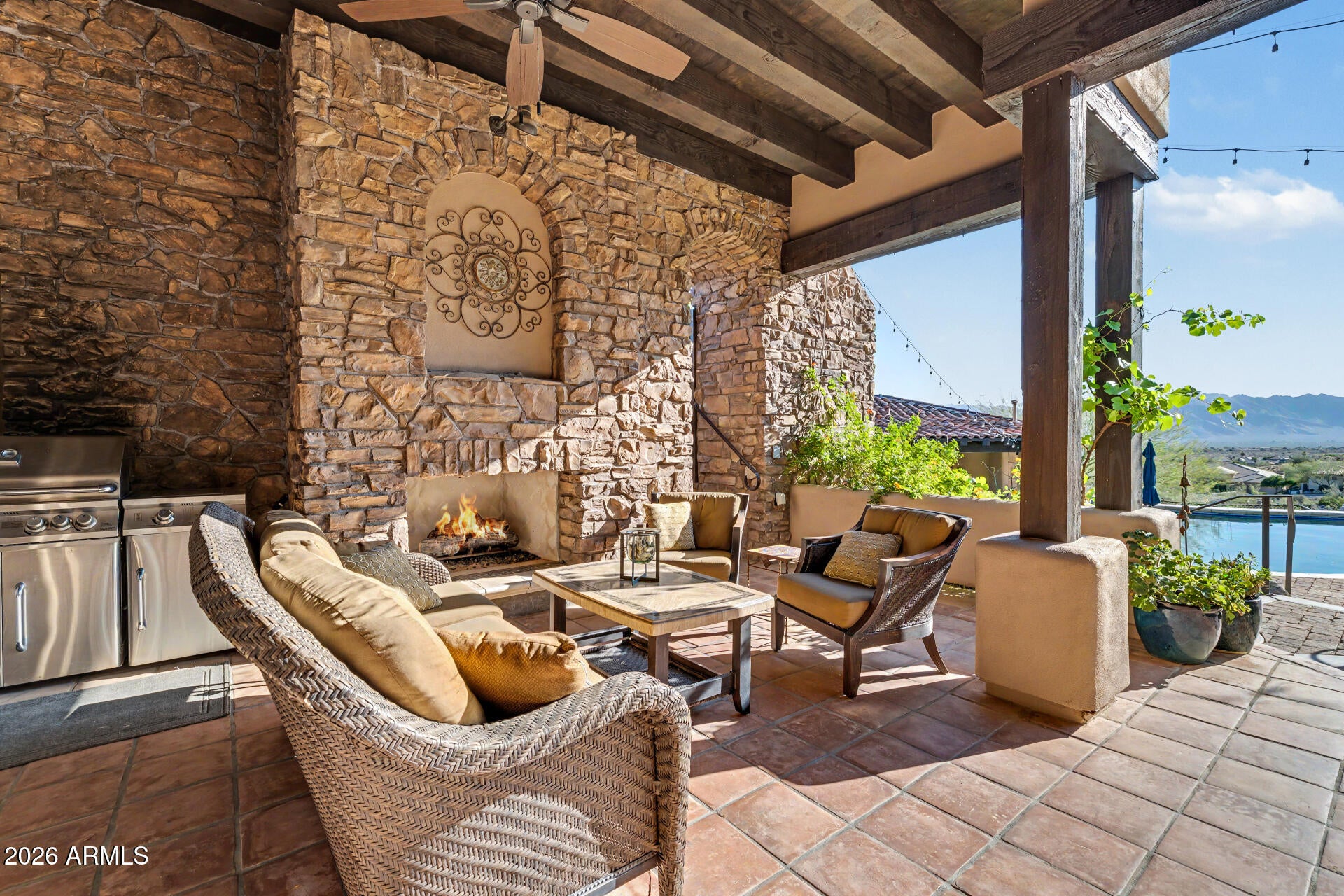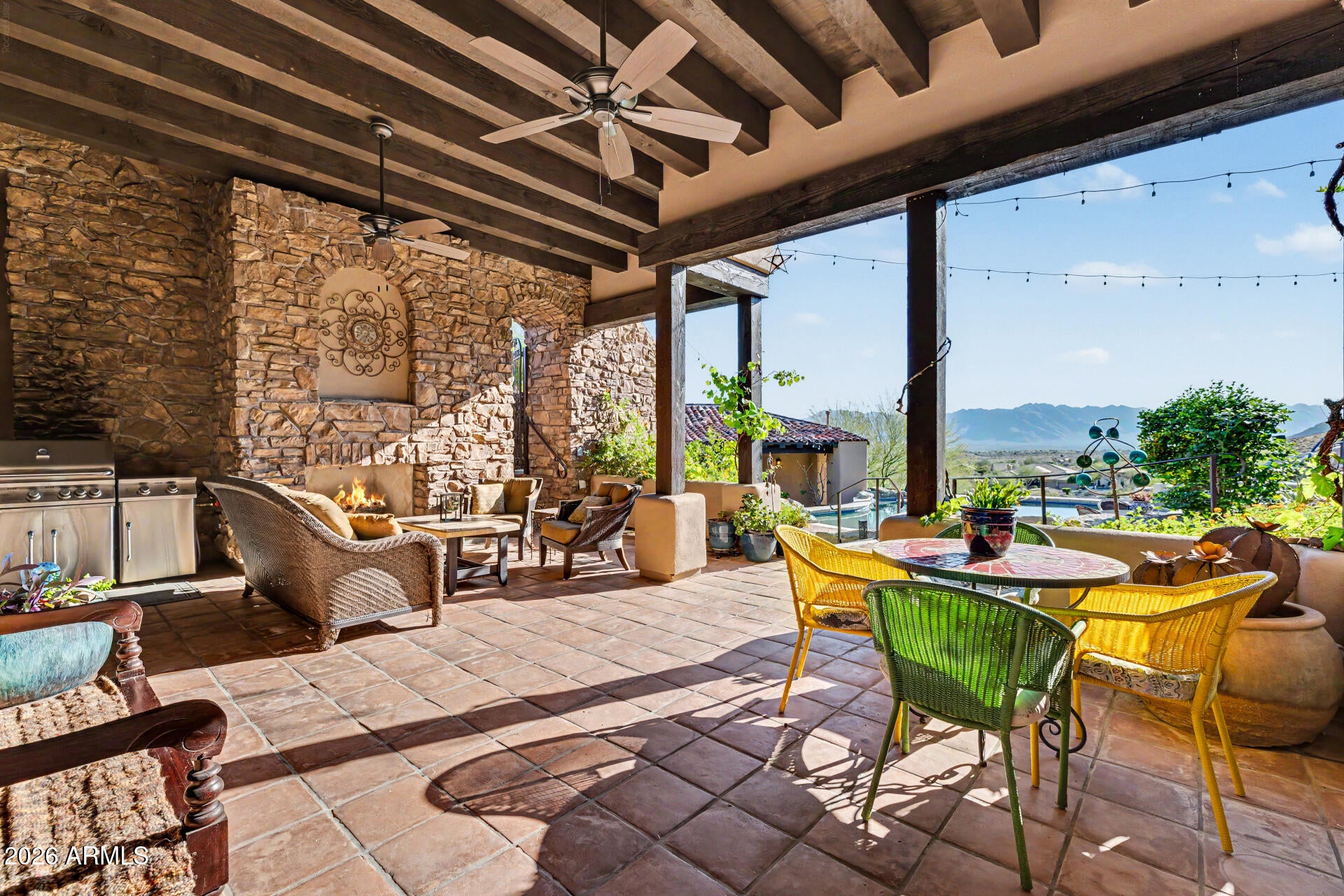 This is the one! Experience the luxury, peace, and breathtaking mountain views of this stunning residence. From the gorgeous facade, rare 6-car garage with a huge paver driveway, to the beautifully manicured landscape, everything about this home is sure to impress. The generous living spaces are filled with natural light, boasting elegant touches throughout-soaring ceilings, dramatic arches, a fireplace to add warmth, floor-to-ceiling windows, exposed beams that add character, and a soothing palette, making every space ideal for entertaining and comfortable everyday living. The kitchen is a chefs dream, complete with abundant cabinetry adorned with crown molding, tile backsplash, granite countertops, a large walk-in pantry, high-end appliances, and an island, perfect for meal prep and mid midnight snacks. The main bedroom is a true retreat, including a fireplace to ensure cozy winter nights, large windows that offer beautiful views, a spa-like bathroom with a separate shower & tub, and a walk-in closet for all your belongings. The den and loft add flexibility, providing space and privacy to work from home, study, or engage in your hobbies in peace. Another great feature of this home is the huge guest quarters, with spacious living areas complete with a fireplace, a separate exit, and a kitchenette. The backyard oasis is a dream, offering a serene landscape that pairs beautifully with the mountain views you can enjoy from the view deck and covered patio with a fireplace. Host gatherings and relax in the ample seating space with pavers, and lets not forget the sparkling pool and spa! This gem truly has it all! Just WOW!