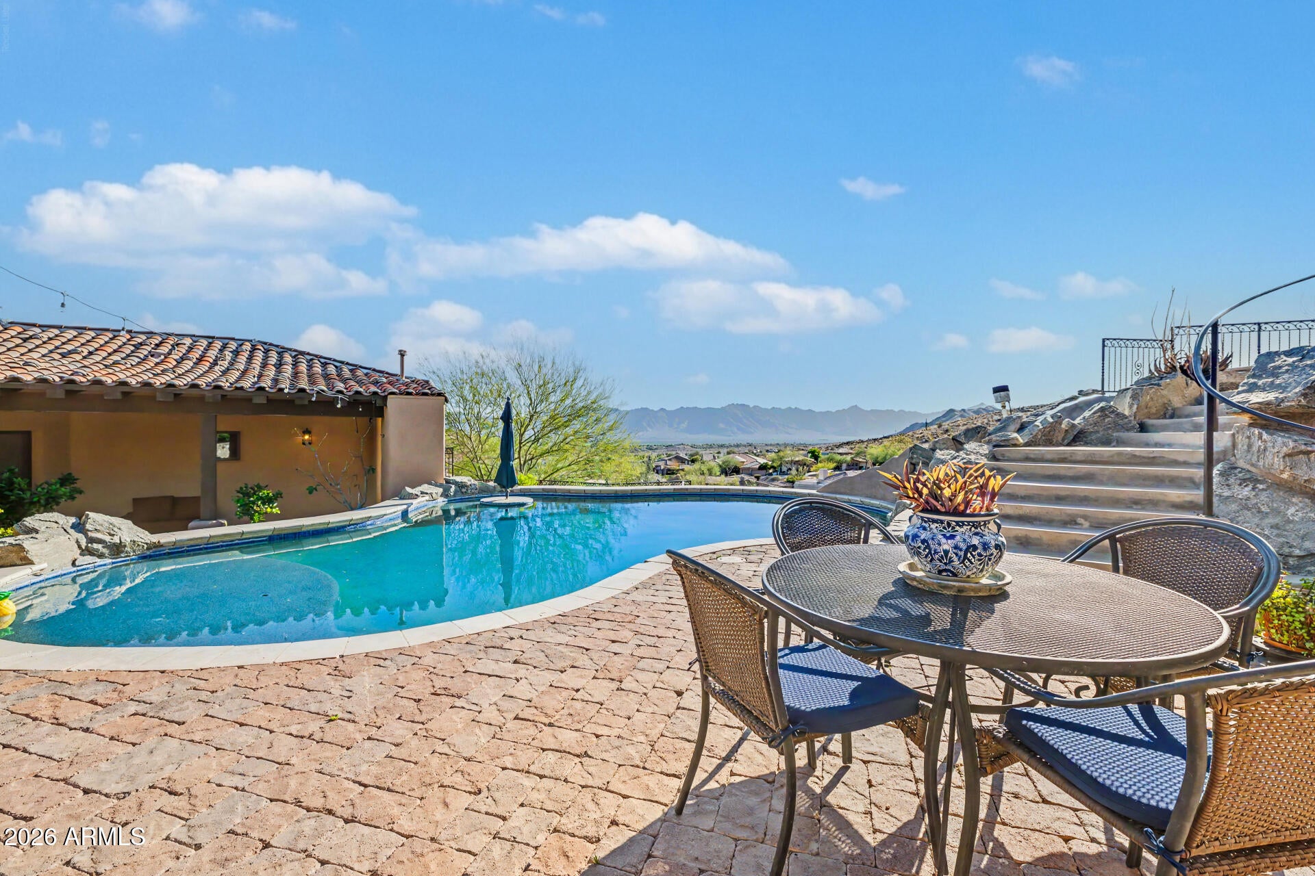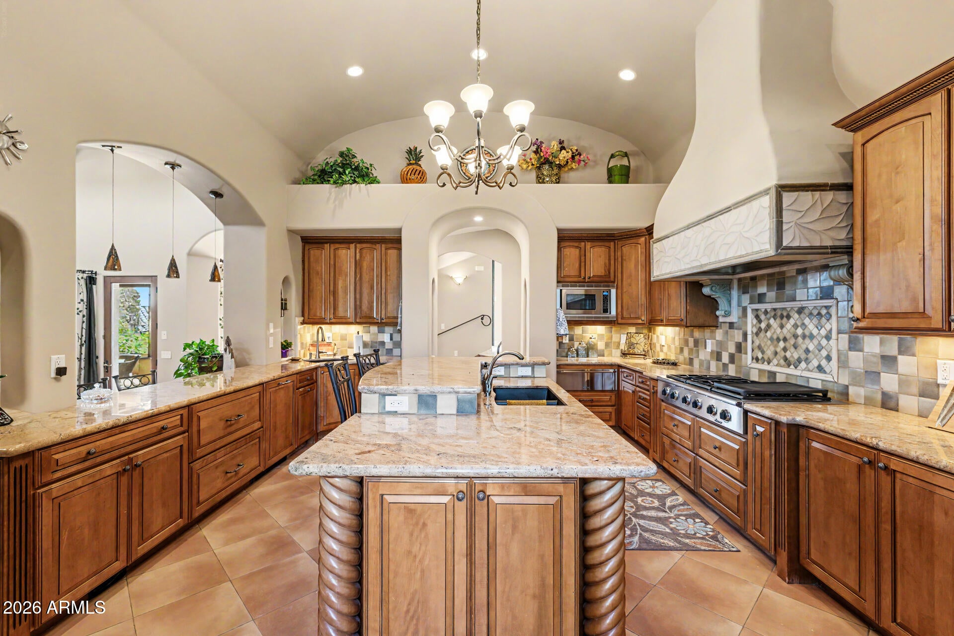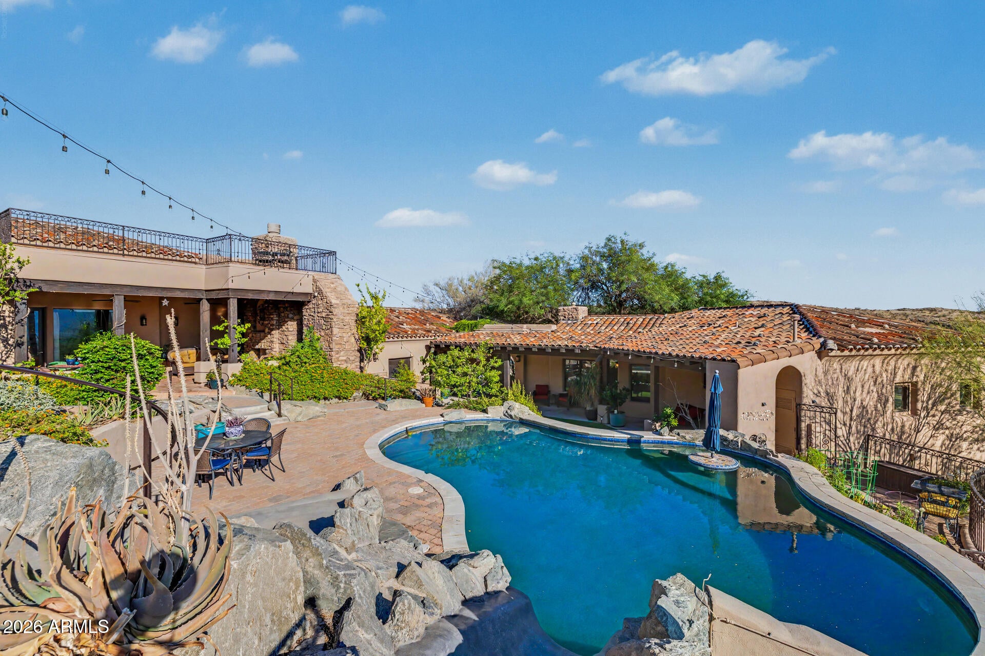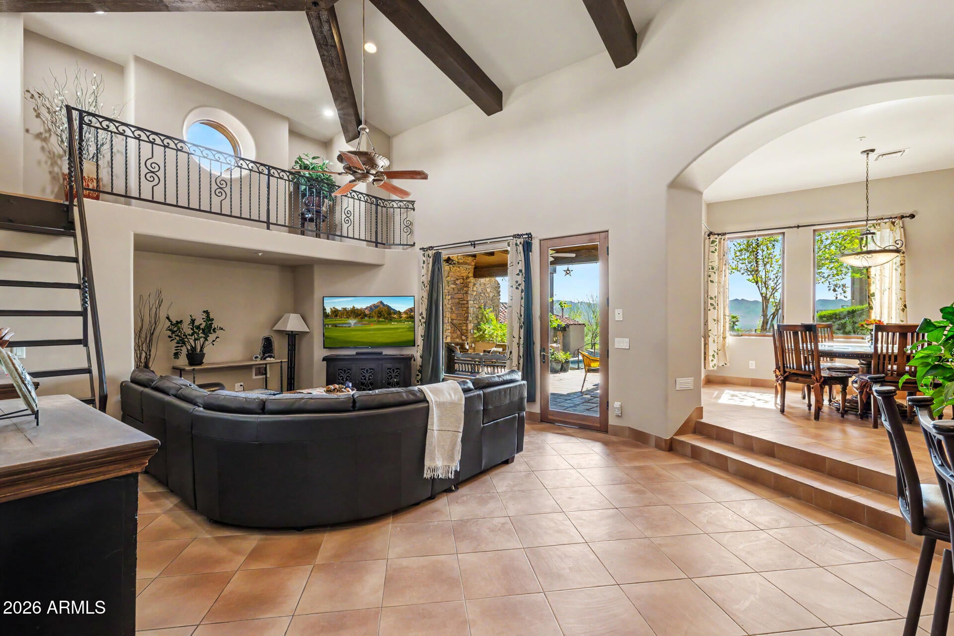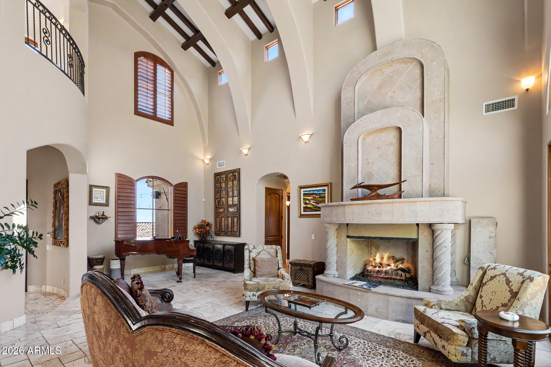 This is the one! Experience the luxury, peace, and breathtaking mountain views of this stunning residence. From the gorgeous facade, rare 6-car garage with a huge paver driveway, to the beautifully manicured landscape, everything about this home is sure to impress. The generous living spaces are filled with natural light, boasting elegant touches throughout-soaring ceilings, dramatic arches, a fireplace to add warmth, floor-to-ceiling windows, exposed beams that add character, and a soothing palette, making every space ideal for entertaining and comfortable everyday living. The kitchen is a chefs dream, complete with abundant cabinetry adorned with crown molding, tile backsplash, granite countertops, a large walk-in pantry, high-end appliances, and an island, perfect for meal prep and mid midnight snacks. The main bedroom is a true retreat, including a fireplace to ensure cozy winter nights, large windows that offer beautiful views, a spa-like bathroom with a separate shower & tub, and a walk-in closet for all your belongings. The den and loft add flexibility, providing space and privacy to work from home, study, or engage in your hobbies in peace. Another great feature of this home is the huge guest quarters, with spacious living areas complete with a fireplace, a separate exit, and a kitchenette. The backyard oasis is a dream, offering a serene landscape that pairs beautifully with the mountain views you can enjoy from the view deck and covered patio with a fireplace. Host gatherings and relax in the ample seating space with pavers, and lets not forget the sparkling pool and spa! This gem truly has it all! Just WOW!