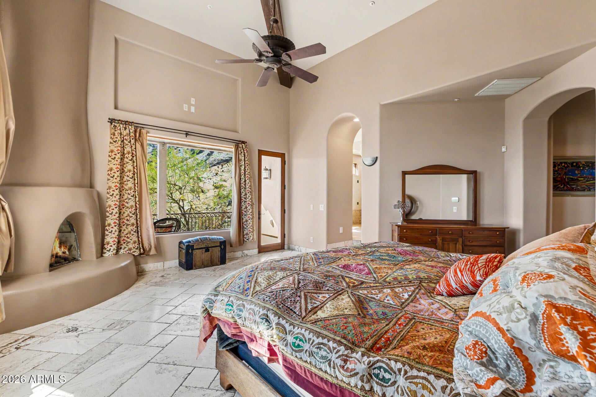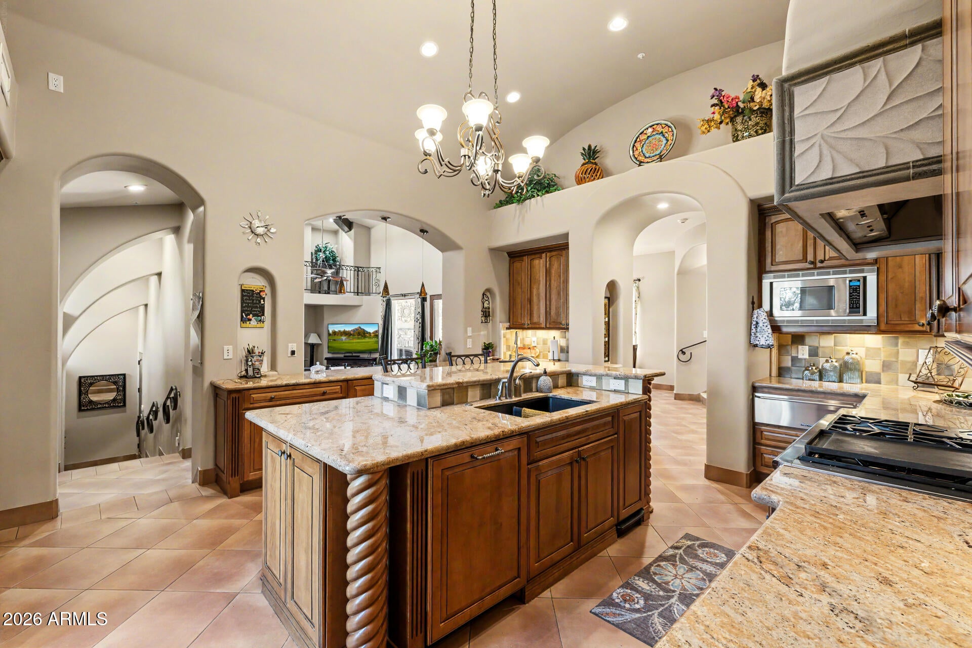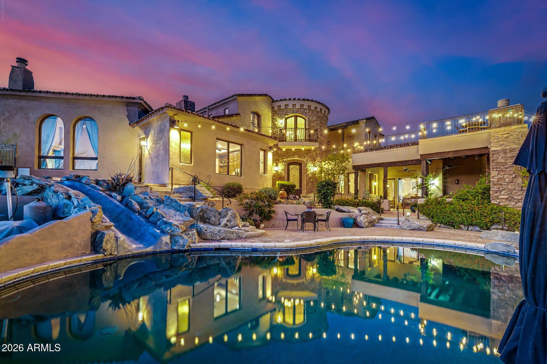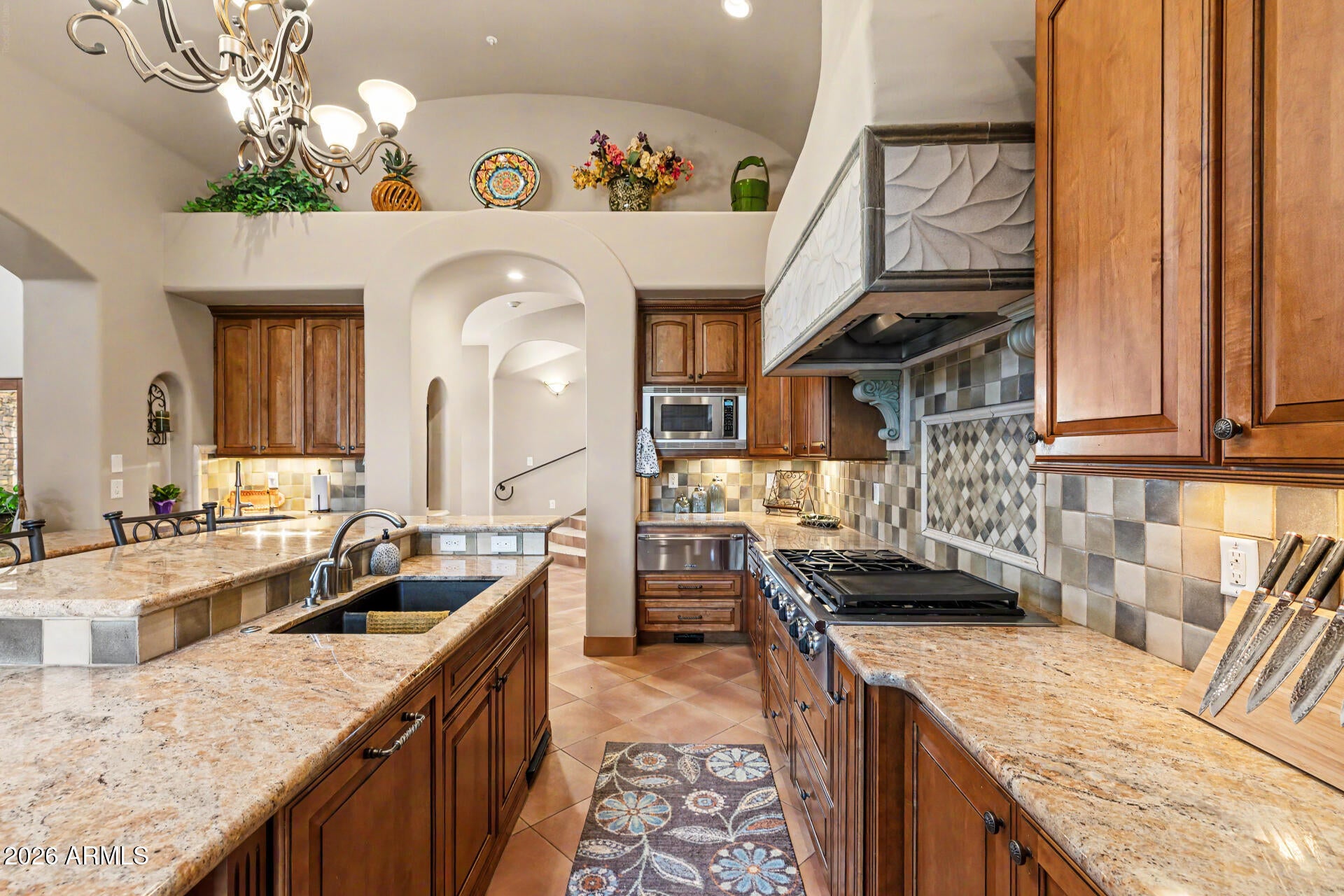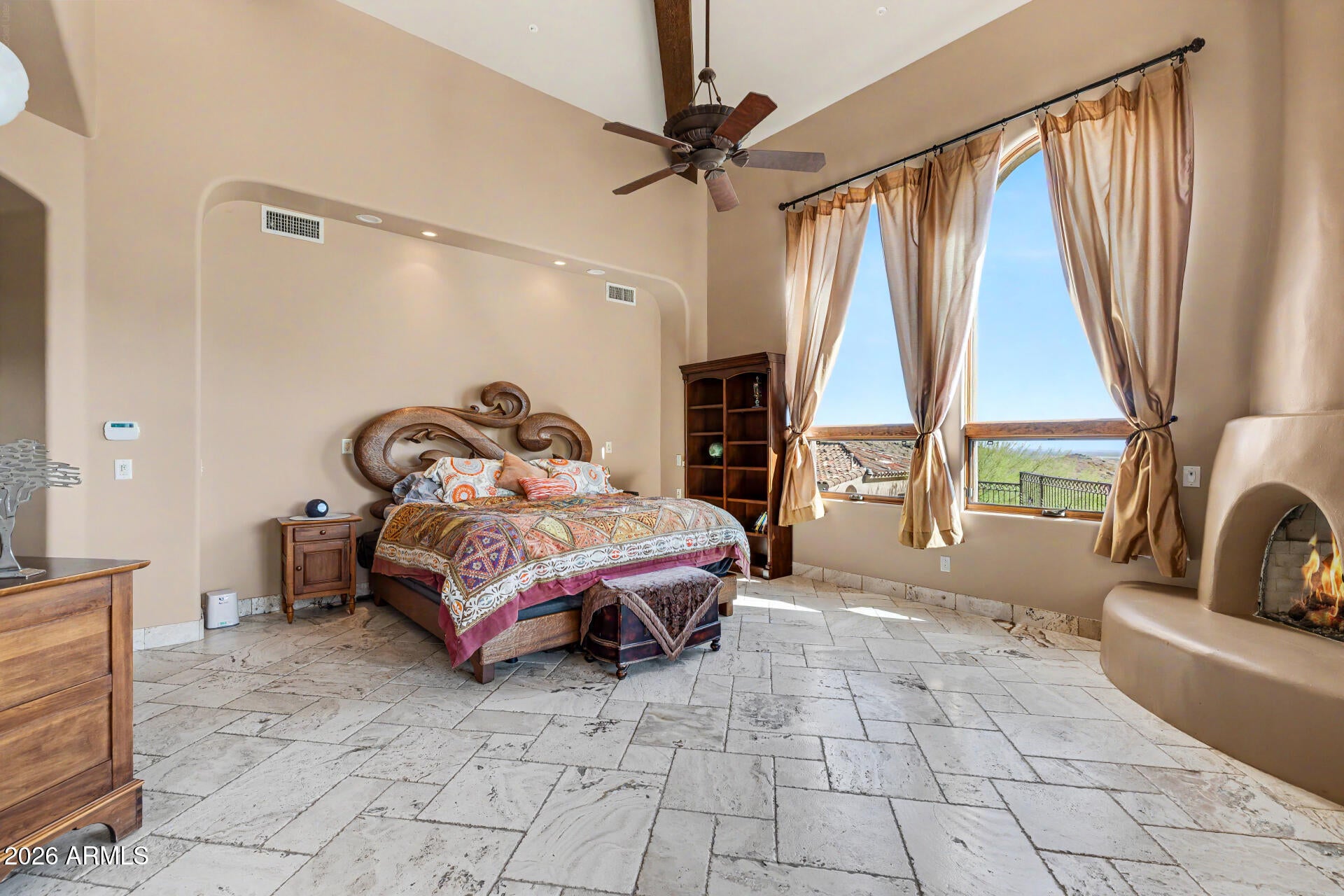 This is the one! Experience the luxury, peace, and breathtaking mountain views of this stunning residence. From the gorgeous facade, rare 6-car garage with a huge paver driveway, to the beautifully manicured landscape, everything about this home is sure to impress. The generous living spaces are filled with natural light, boasting elegant touches throughout-soaring ceilings, dramatic arches, a fireplace to add warmth, floor-to-ceiling windows, exposed beams that add character, and a soothing palette, making every space ideal for entertaining and comfortable everyday living. The kitchen is a chefs dream, complete with abundant cabinetry adorned with crown molding, tile backsplash, granite countertops, a large walk-in pantry, high-end appliances, and an island, perfect for meal prep and mid midnight snacks. The main bedroom is a true retreat, including a fireplace to ensure cozy winter nights, large windows that offer beautiful views, a spa-like bathroom with a separate shower & tub, and a walk-in closet for all your belongings. The den and loft add flexibility, providing space and privacy to work from home, study, or engage in your hobbies in peace. Another great feature of this home is the huge guest quarters, with spacious living areas complete with a fireplace, a separate exit, and a kitchenette. The backyard oasis is a dream, offering a serene landscape that pairs beautifully with the mountain views you can enjoy from the view deck and covered patio with a fireplace. Host gatherings and relax in the ample seating space with pavers, and lets not forget the sparkling pool and spa! This gem truly has it all! Just WOW!