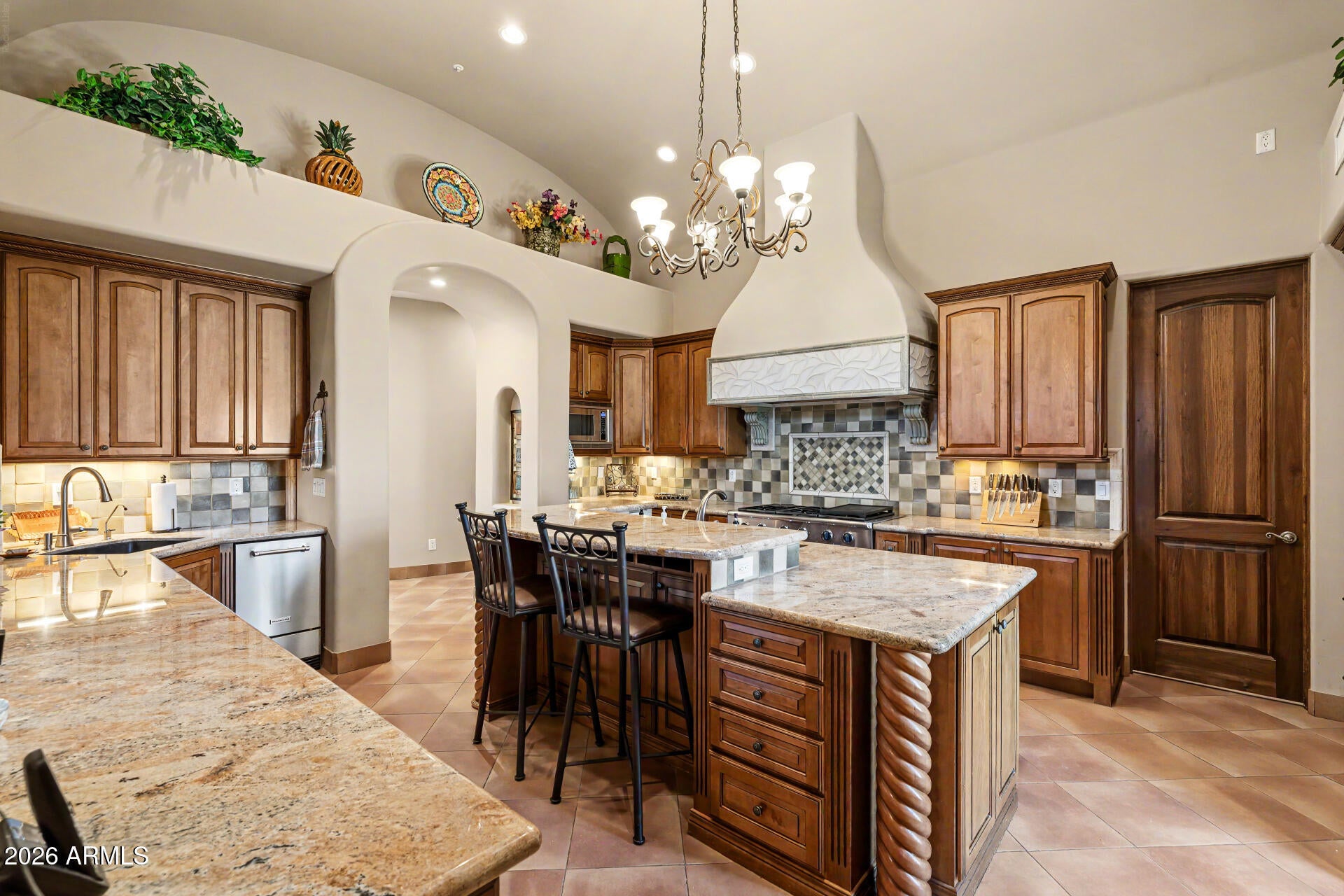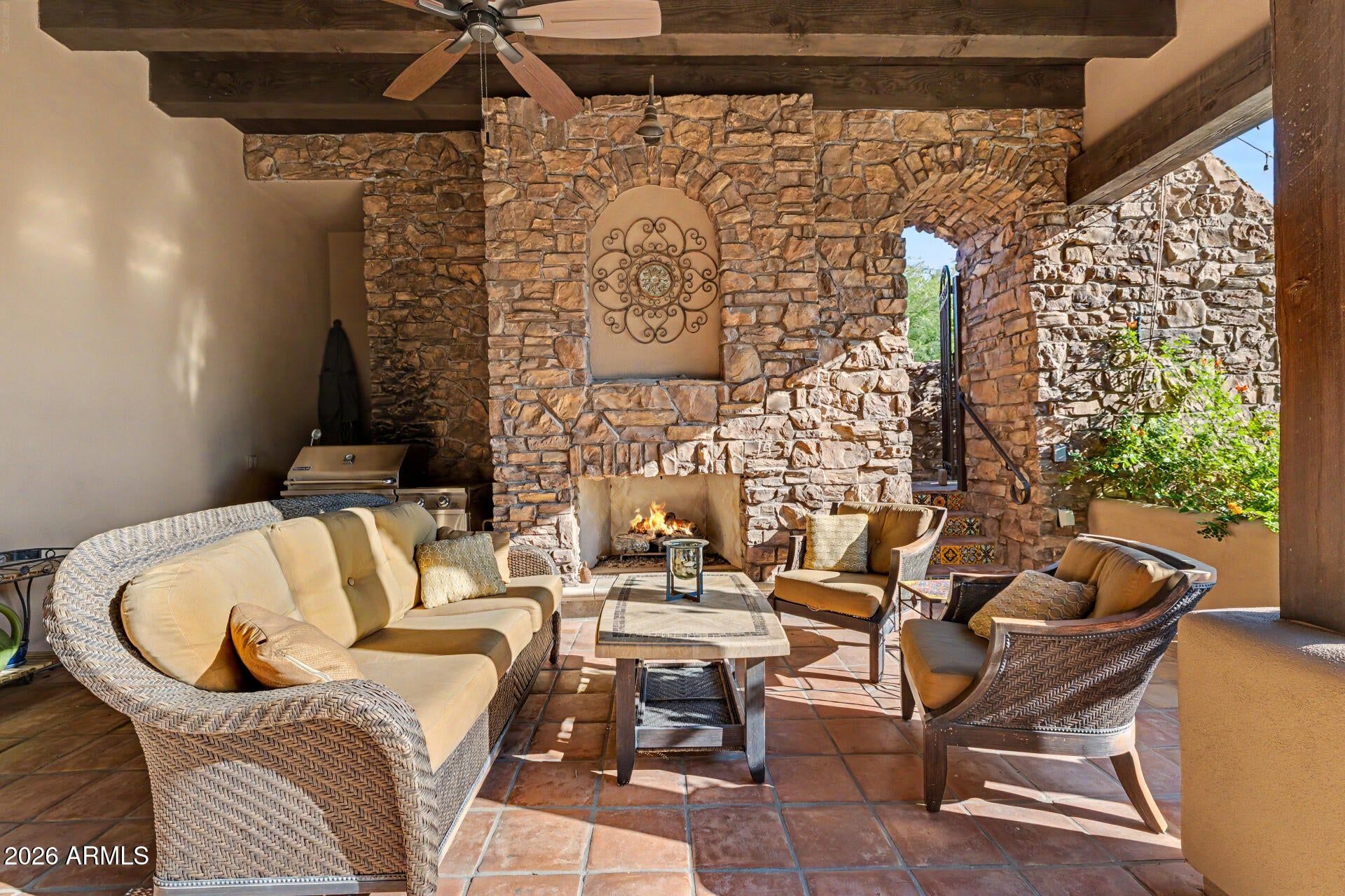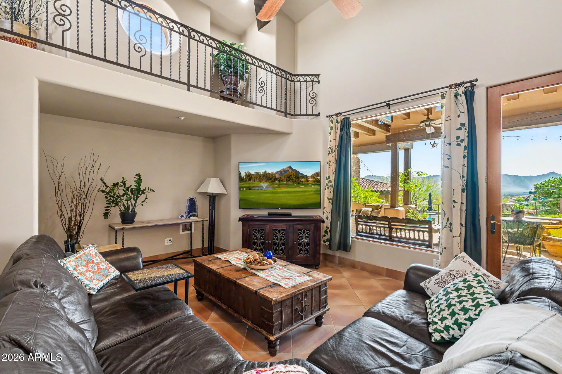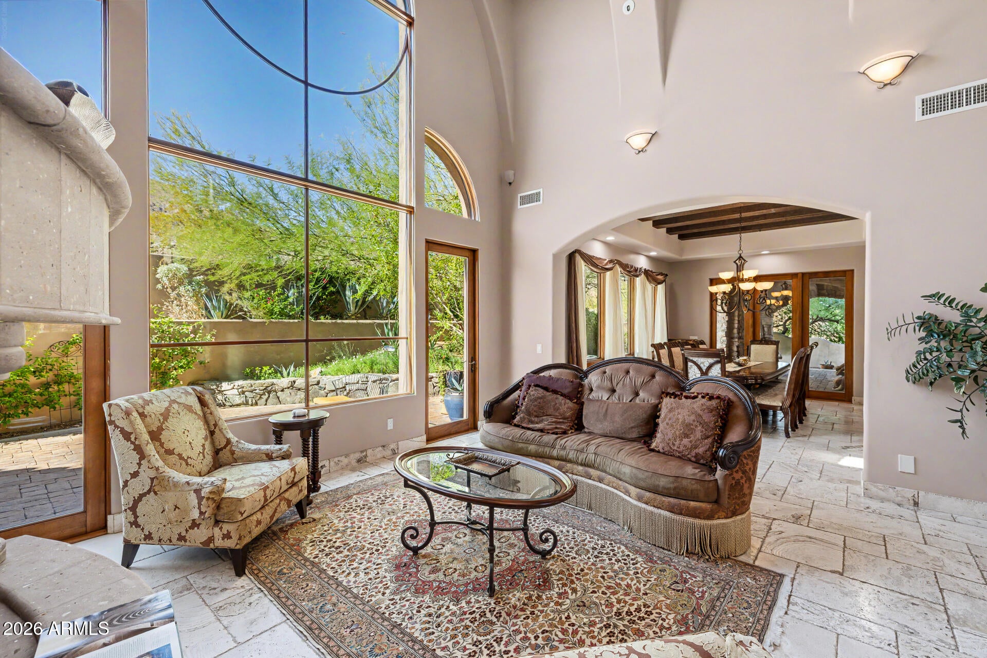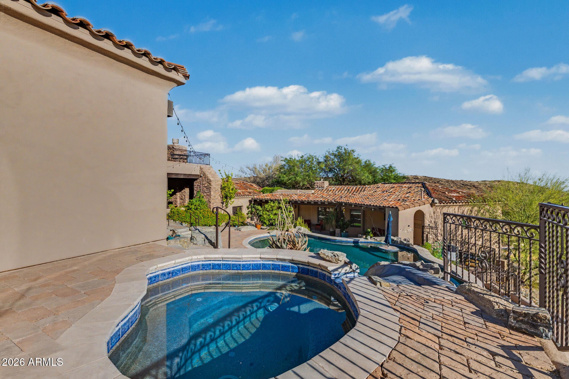 This is the one! Experience the luxury, peace, and breathtaking mountain views of this stunning residence. From the gorgeous facade, rare 6-car garage with a huge paver driveway, to the beautifully manicured landscape, everything about this home is sure to impress. The generous living spaces are filled with natural light, boasting elegant touches throughout-soaring ceilings, dramatic arches, a fireplace to add warmth, floor-to-ceiling windows, exposed beams that add character, and a soothing palette, making every space ideal for entertaining and comfortable everyday living. The kitchen is a chefs dream, complete with abundant cabinetry adorned with crown molding, tile backsplash, granite countertops, a large walk-in pantry, high-end appliances, and an island, perfect for meal prep and mid midnight snacks. The main bedroom is a true retreat, including a fireplace to ensure cozy winter nights, large windows that offer beautiful views, a spa-like bathroom with a separate shower & tub, and a walk-in closet for all your belongings. The den and loft add flexibility, providing space and privacy to work from home, study, or engage in your hobbies in peace. Another great feature of this home is the huge guest quarters, with spacious living areas complete with a fireplace, a separate exit, and a kitchenette. The backyard oasis is a dream, offering a serene landscape that pairs beautifully with the mountain views you can enjoy from the view deck and covered patio with a fireplace. Host gatherings and relax in the ample seating space with pavers, and lets not forget the sparkling pool and spa! This gem truly has it all! Just WOW!