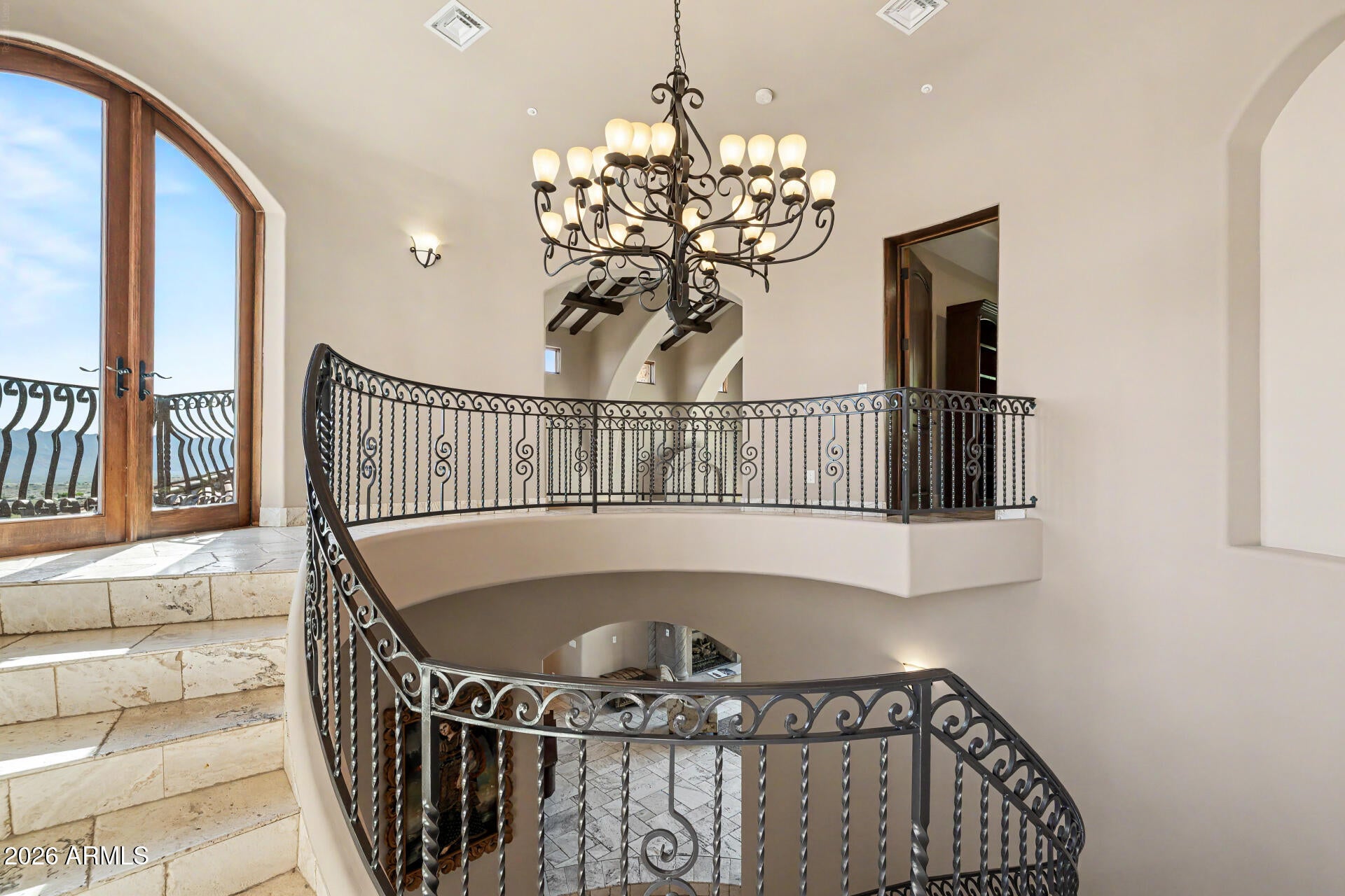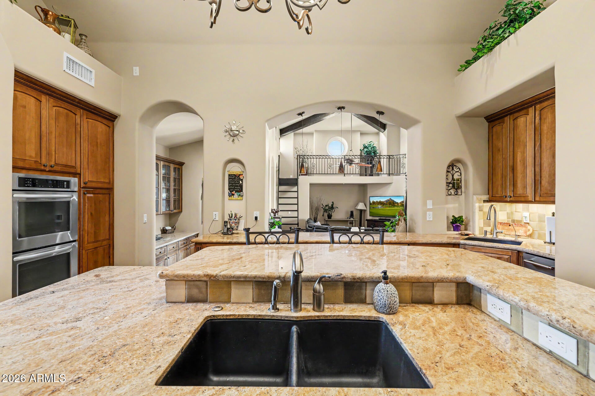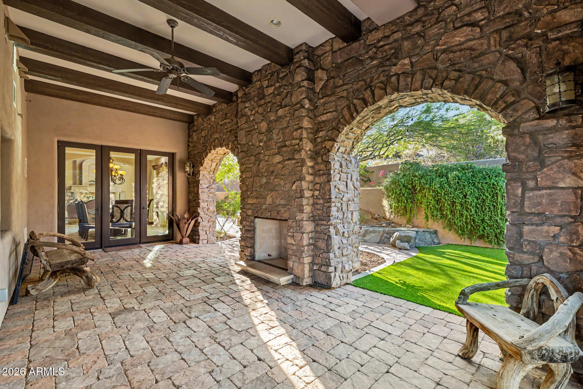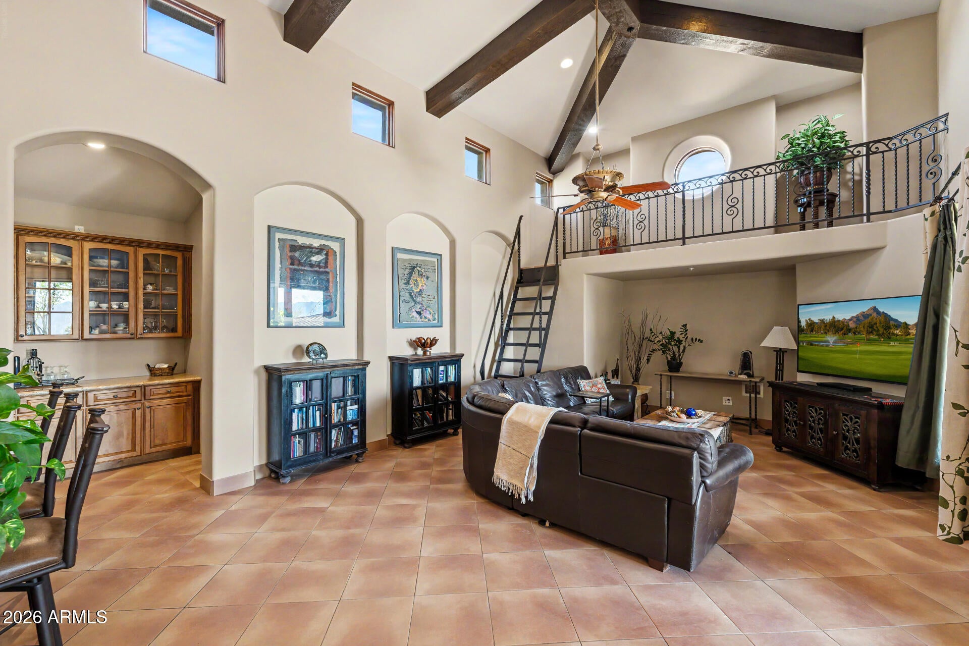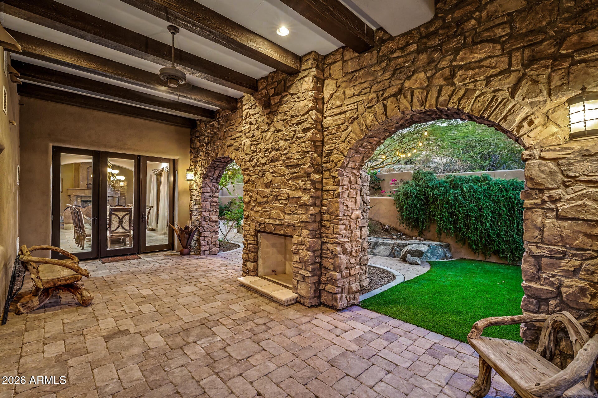 This is the one! Experience the luxury, peace, and breathtaking mountain views of this stunning residence. From the gorgeous facade, rare 6-car garage with a huge paver driveway, to the beautifully manicured landscape, everything about this home is sure to impress. The generous living spaces are filled with natural light, boasting elegant touches throughout-soaring ceilings, dramatic arches, a fireplace to add warmth, floor-to-ceiling windows, exposed beams that add character, and a soothing palette, making every space ideal for entertaining and comfortable everyday living. The kitchen is a chefs dream, complete with abundant cabinetry adorned with crown molding, tile backsplash, granite countertops, a large walk-in pantry, high-end appliances, and an island, perfect for meal prep and mid midnight snacks. The main bedroom is a true retreat, including a fireplace to ensure cozy winter nights, large windows that offer beautiful views, a spa-like bathroom with a separate shower & tub, and a walk-in closet for all your belongings. The den and loft add flexibility, providing space and privacy to work from home, study, or engage in your hobbies in peace. Another great feature of this home is the huge guest quarters, with spacious living areas complete with a fireplace, a separate exit, and a kitchenette. The backyard oasis is a dream, offering a serene landscape that pairs beautifully with the mountain views you can enjoy from the view deck and covered patio with a fireplace. Host gatherings and relax in the ample seating space with pavers, and lets not forget the sparkling pool and spa! This gem truly has it all! Just WOW!