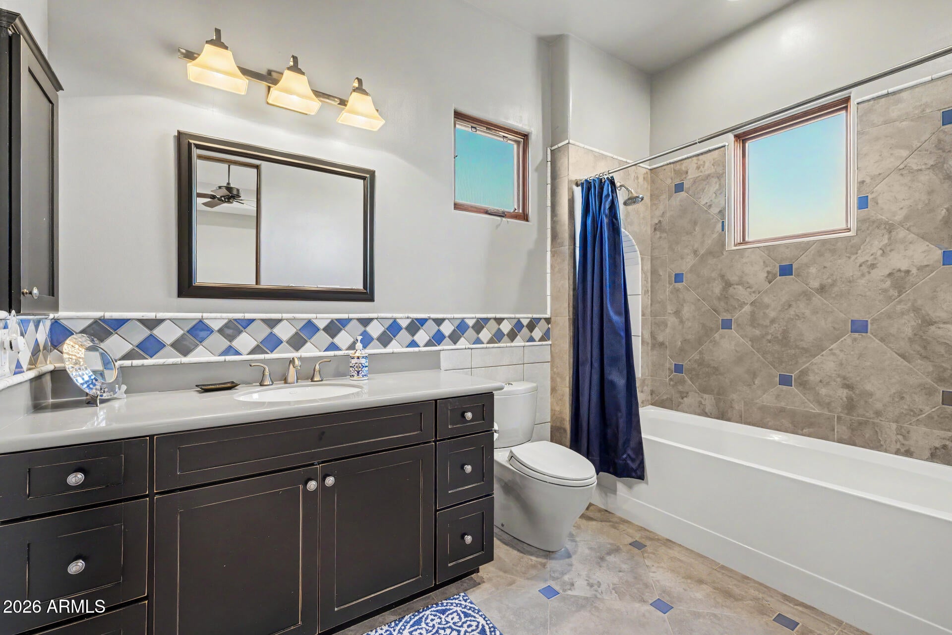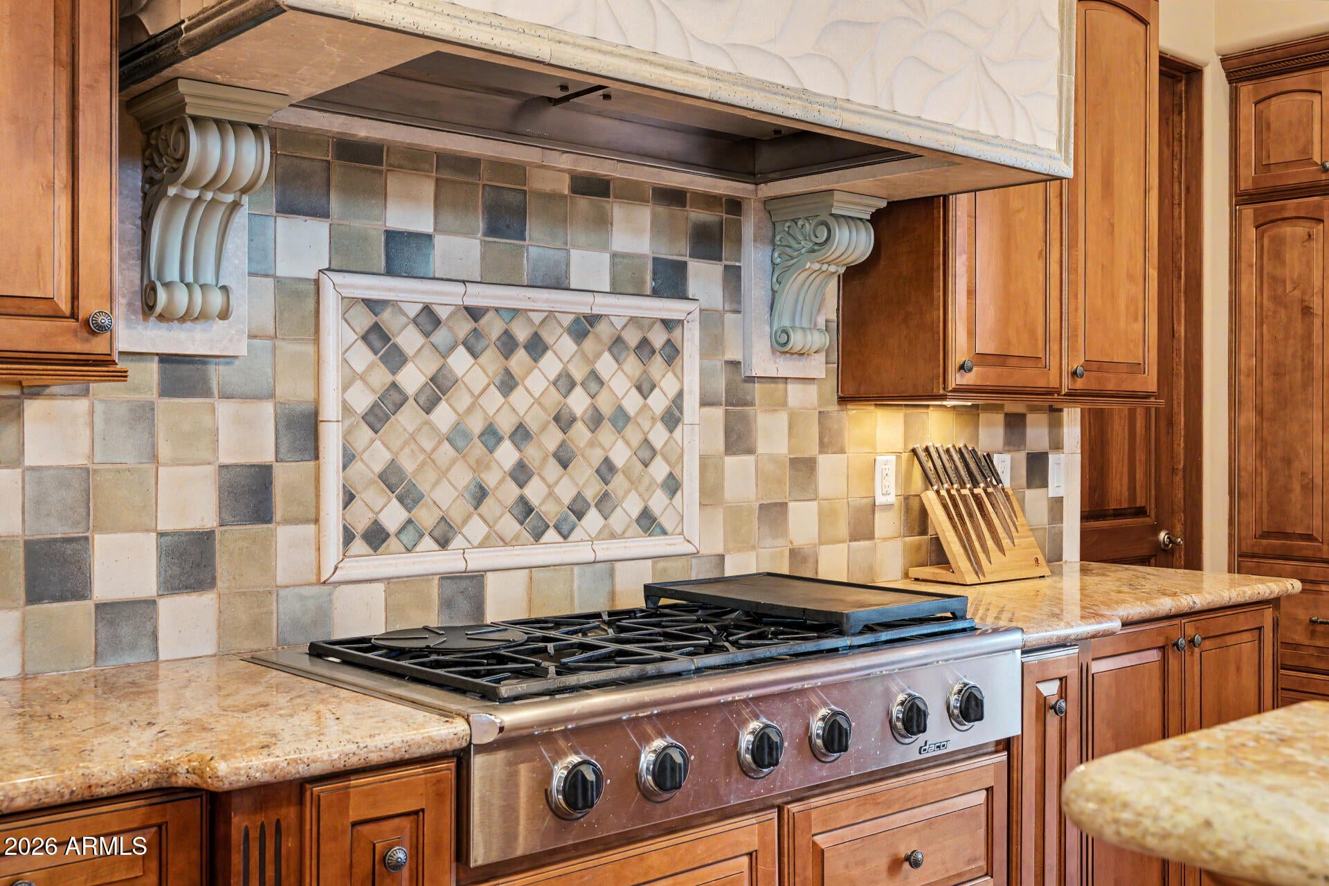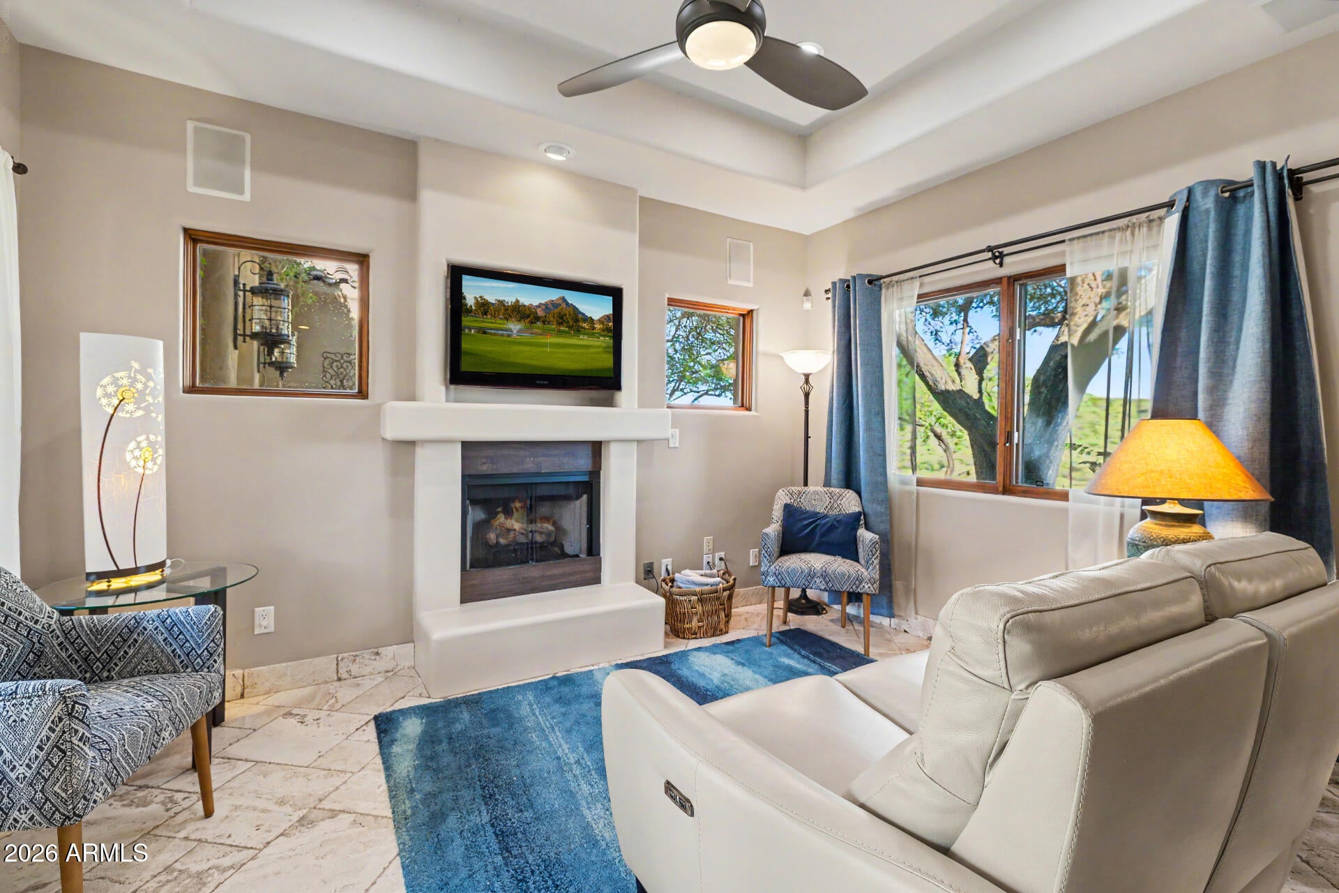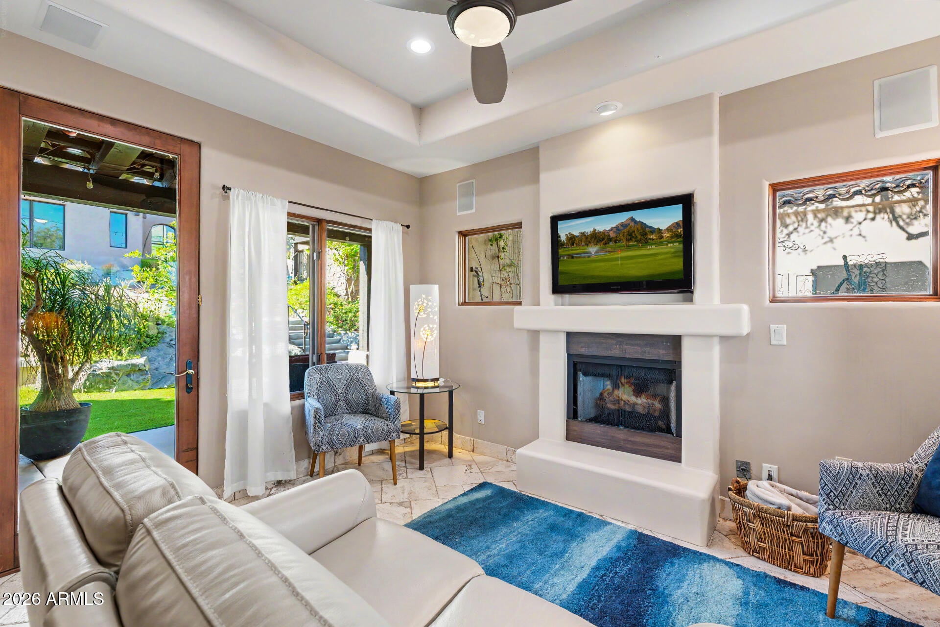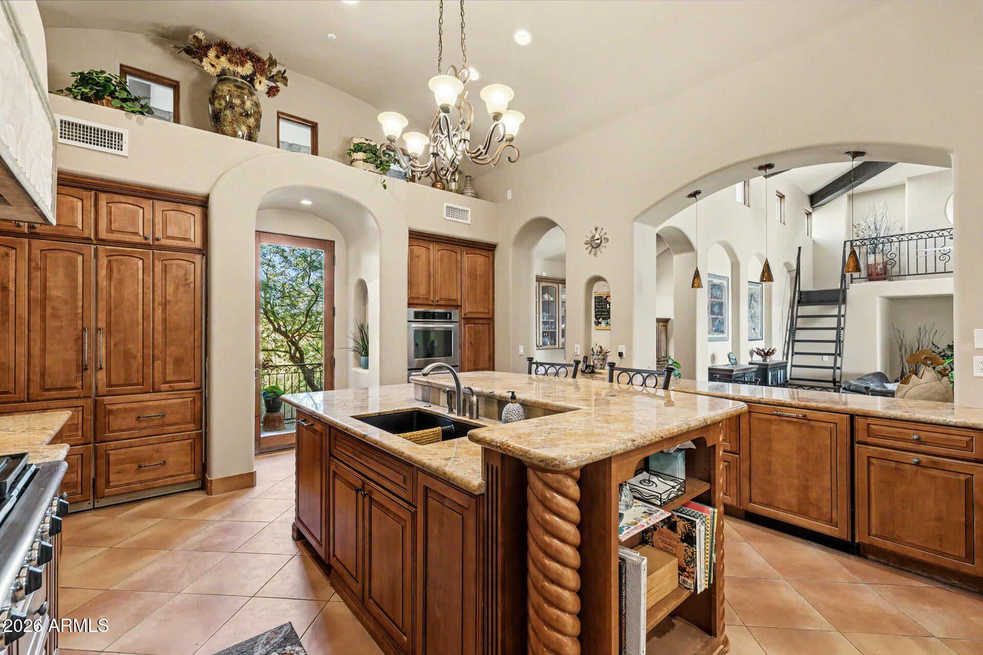 This is the one! Experience the luxury, peace, and breathtaking mountain views of this stunning residence. From the gorgeous facade, rare 6-car garage with a huge paver driveway, to the beautifully manicured landscape, everything about this home is sure to impress. The generous living spaces are filled with natural light, boasting elegant touches throughout-soaring ceilings, dramatic arches, a fireplace to add warmth, floor-to-ceiling windows, exposed beams that add character, and a soothing palette, making every space ideal for entertaining and comfortable everyday living. The kitchen is a chefs dream, complete with abundant cabinetry adorned with crown molding, tile backsplash, granite countertops, a large walk-in pantry, high-end appliances, and an island, perfect for meal prep and mid midnight snacks. The main bedroom is a true retreat, including a fireplace to ensure cozy winter nights, large windows that offer beautiful views, a spa-like bathroom with a separate shower & tub, and a walk-in closet for all your belongings. The den and loft add flexibility, providing space and privacy to work from home, study, or engage in your hobbies in peace. Another great feature of this home is the huge guest quarters, with spacious living areas complete with a fireplace, a separate exit, and a kitchenette. The backyard oasis is a dream, offering a serene landscape that pairs beautifully with the mountain views you can enjoy from the view deck and covered patio with a fireplace. Host gatherings and relax in the ample seating space with pavers, and lets not forget the sparkling pool and spa! This gem truly has it all! Just WOW!