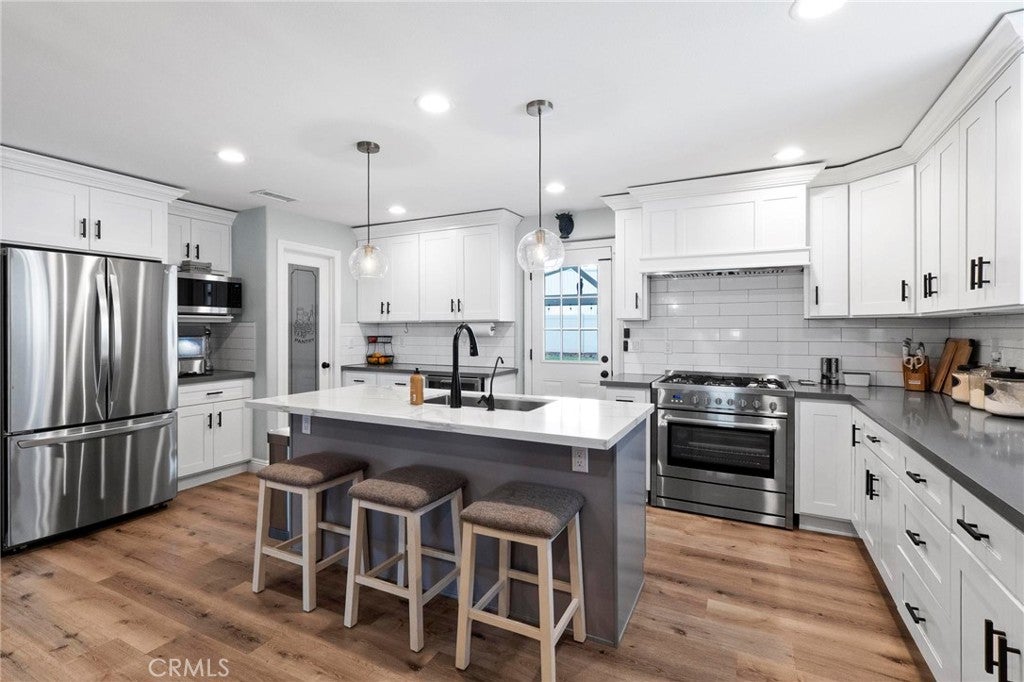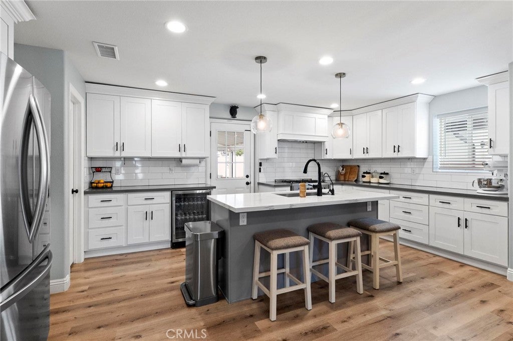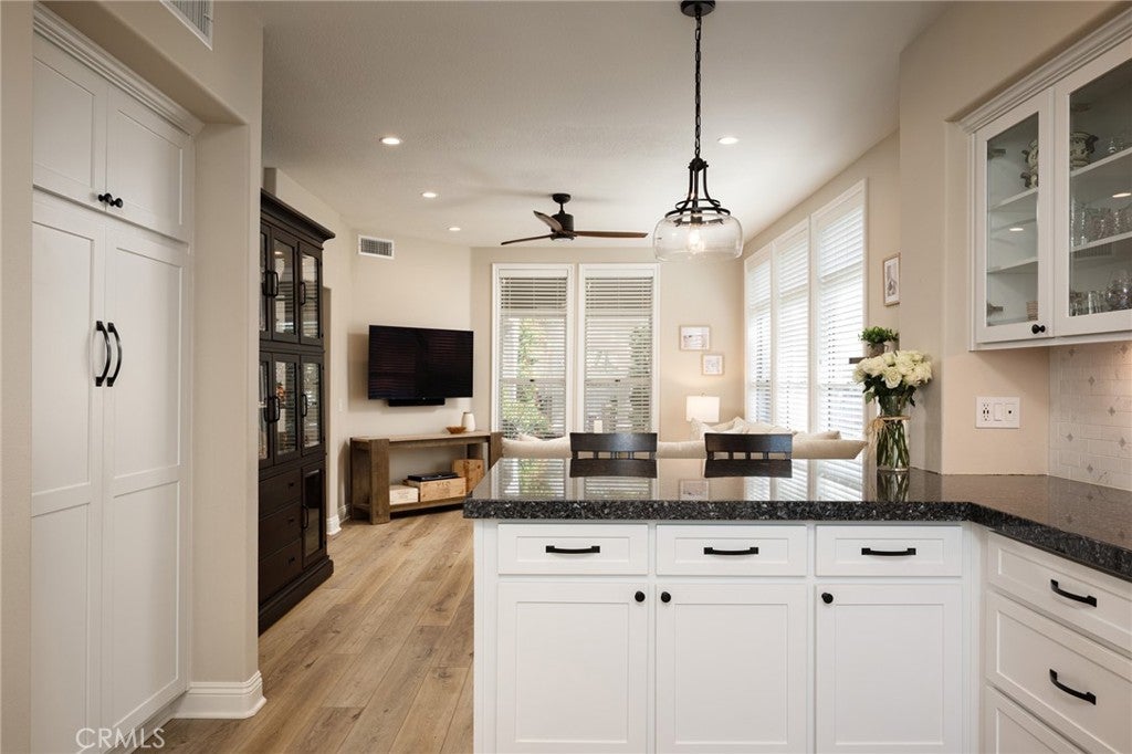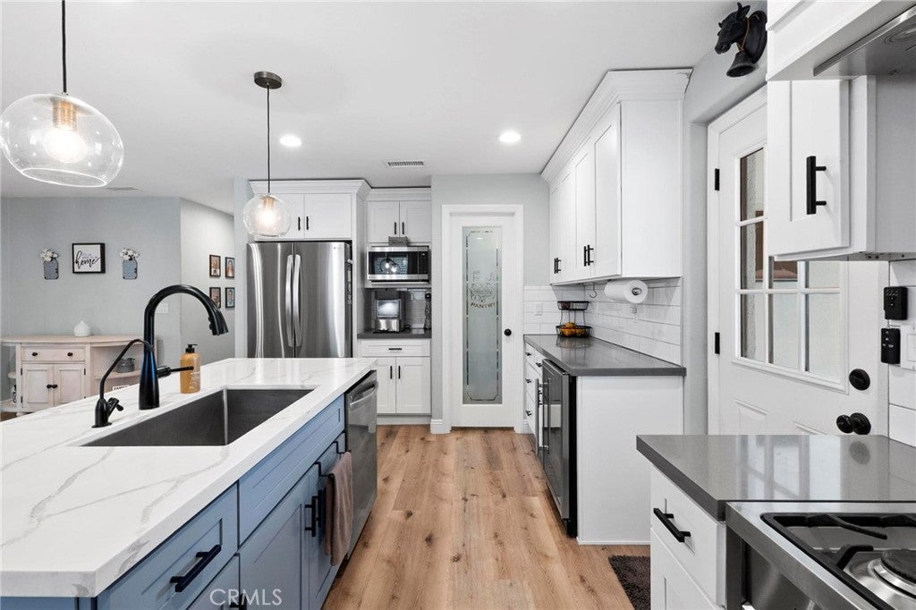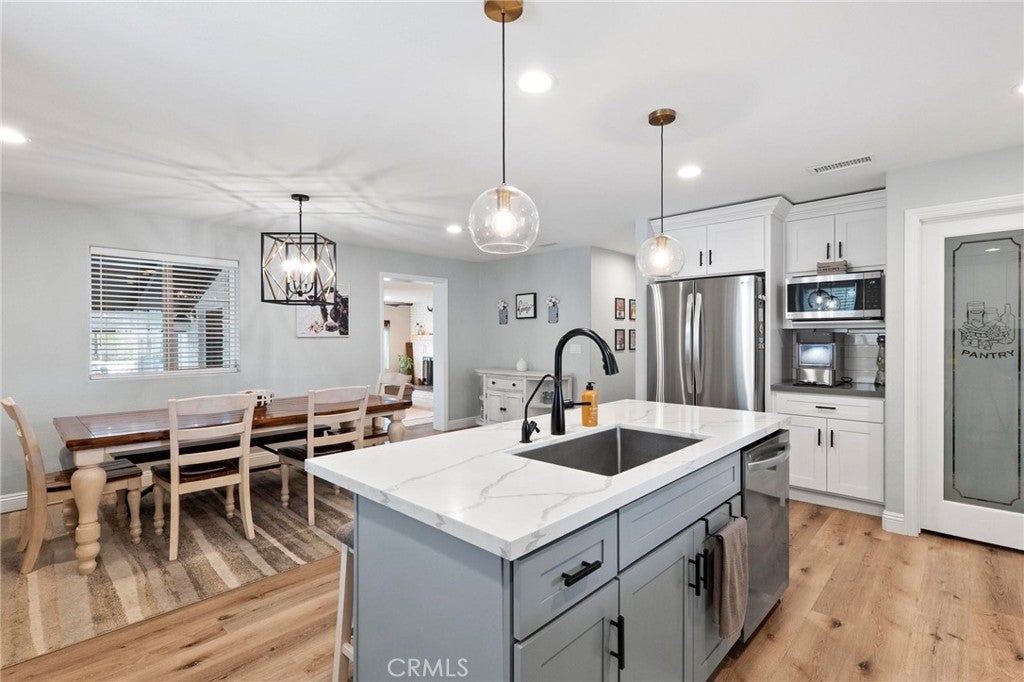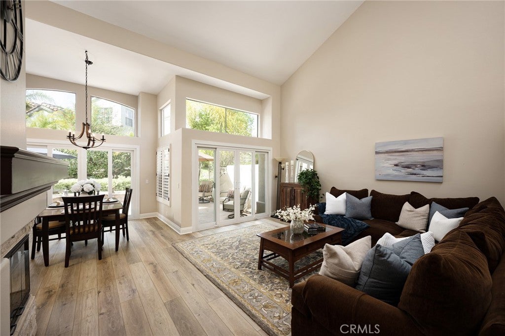 Located in the desirable Alicante Tract!! A Tijeras Creek Golf Course neighborhood! This stunning, beautifully upgraded home offers a warm and inviting layout with a dramatic front entry and open living spaces enhanced by vaulted ceilings and beautiful vinyl flooring.