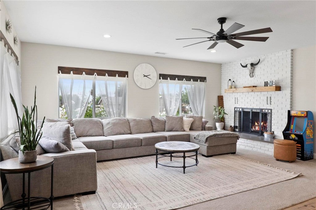 **RARE MODERN FARMHOUSE ON ALMOST AN ACRE WITH 3,200 SQ. FT. SHOP, RV ACCESS & HIGH-END UPGRADES**Welcome to 13461 Fremont St., an exceptional modern farmhouse estate set on nearly an acre of flat, usable land in one of Yucaipas most desirable settings. Offering approximately 2,500 sq. ft. of thoughtfully designed living space, this single-story residence seamlessly blends timeless design with elevated modern finishes.The interior is both sophisticated and inviting, featuring four spacious bedrooms and three beautifully appointed bathrooms. A grand living room with a fireplace creates a warm yet elegant atmosphere, while a separate dining space with its own fireplace flows effortlessly into the heart of the home. A well-appointed indoor laundry room adds everyday convenience.The designer kitchen is curated for both style and function, showcasing white shaker cabinetry, striking black hardware, stainless steel appliances, an oversized industrial-style gas range, farmhouse sink, and a large center island with contrasting tones. Pendant lighting, recessed lighting, and a walk-in pantry complete this impressive space.The primary suite offers a private retreat with a generous walk-in closet and a spa-inspired bathroom featuring dual vanities and a walk-in shower with custom tile accents. Throughout the home, youll find designer lighting, a blend of laminate wood flooring and plush carpeting, and a light, airy color palette.Step outside to enjoy a sprawling covered patio with ceiling fans overlooking a manicured lawn enclosed by vinyl fencing. A detached two-car garage adds convenience, while the expansive grounds provide both privacy and versatility.A standout feature is the approximately 3,200 sq. ft. workshop/RV garage with two RV bays and an insulated office suite, mini-split system, bathroom, wet bar, vinyl flooring, and recessed lightingideal for a workspace, studio, guest space, or ultimate retreat. The property also includes a cement RV pad alongside the shop, extended concrete areas, and an additional 40-ft shipping container for extra storage.Additional highlights include two powered gates for secure access, dual driveways with extra-wide entry, rain gutters, and a Radiant Life Series 6 whole-house water filtration system.A rare offering where luxury meets versatilitythis is more than a home, its a lifestyle.**Be sure to scroll down & click on link to video & virtual tour!**