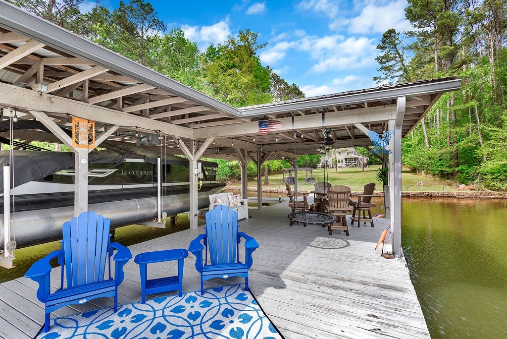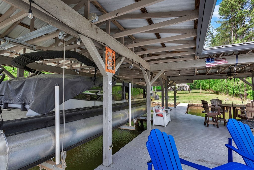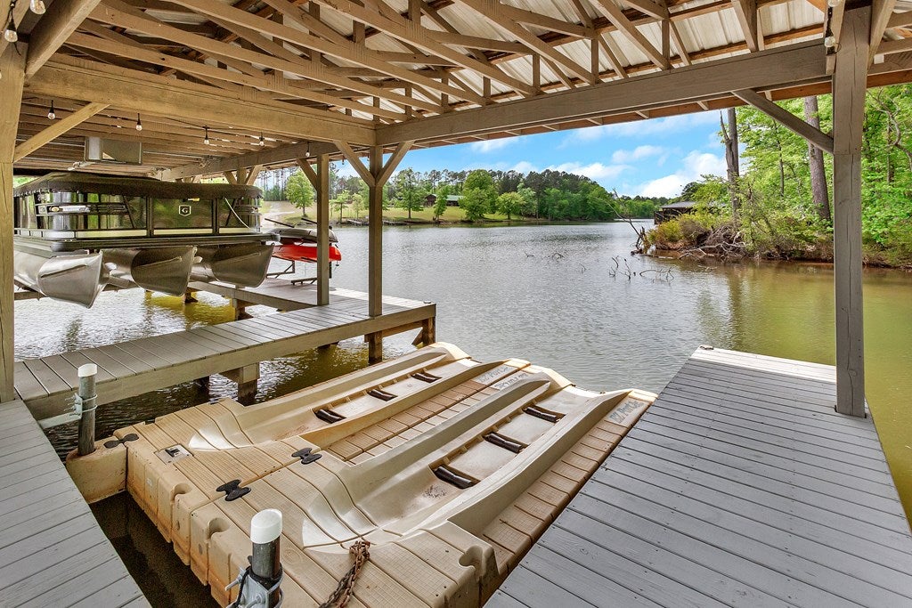 Do not miss your chance at this incredible new Lake Greenwood property! Completed in 2017 in the laid back lakefront community of Harborside, this jaw-dropping home will not stop surprising you. This place is super private on 2.36 acres with two empty wooded lots on either side; you will feel completely isolated as you enjoy all this home has to offer. The long concrete driveway with electric lamp posts conceals the house itself from the road, bringing you into that private feel as soon as you turn onto the property. The house itself is of all high quality materials inside and out, and a great size at over 3100 sq ft with 4 beds and 3.5 baths. The main living space is open with fantastic lake views, but overall the floor plan is balanced with some cozier spots as well. Interior features include: new flooring upstairs and master suite, a formal dining room, laundry room, natural gas (HVAC, water heater, cook top, logs, grill hookup, pool heat), a wet bar, a generator hookup, and TONS of storage underneath the house in a standing height crawlspace that has been extremely well managed with dehumidifiers. Outside, the house only gets better: a fully covered back porch, a year round heated salt-water pool, a wi-fi controlled sound system inside and out, crowned by the unbelievable dock. It has two jet-ski drive-on docks, kayak storage, multiple seating areas, a 6-ton boat lift, metal roof, and awesome uninterrupted views. The right time is right now to secure this home for your family to enjoy the summer fun on Lake Greenwood!