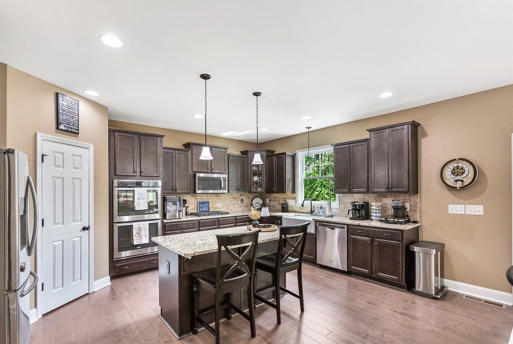 Built by Toll Brothers, this exceptional residence offers refined living with a focus on quality improvements & elevated design. The kitchen is beautifully appointed with granite countertops, large island, walk-in pantry, butlers pantry w/wine refrigerator, under-cabinet lighting, & is seamlessly open to the expansive family room.