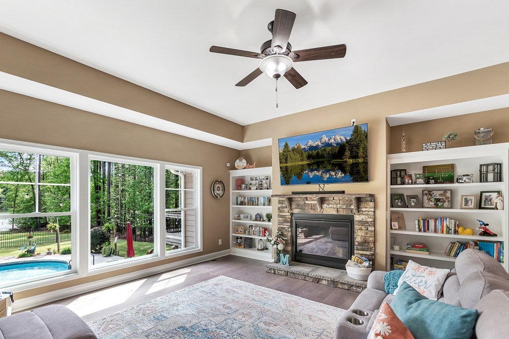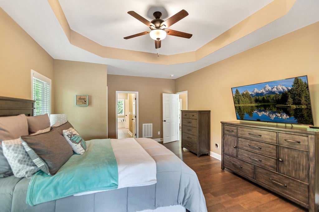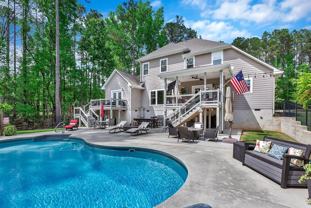 From the moment you walk in, its clear this home was designed with both everyday living and entertaining in mind. The open floor plan flows effortlessly into a spacious great room featuring a pool table and an oversized island, creating the perfect setup for hosting. The kitchen is the heart of the home with freshly painted cabinetry, granite countertops, stainless steel appliances, and plenty of storage, all opening right into the main living area so youre never separated from guests. Its no surprise this home is in high demand for Masters rentals, consistently bringing in 21,000 per year.Beyond the layout, the efficiency and construction of this home are what really set it apart. With 54 solar panels, two Rinnai tankless water heaters, and upgraded insulation, youll appreciate the energy savings year-round. The home was also built with 6-inch studs on both levels--not just the main floor--along with engineered beams and reinforced flooring under the pool table, offering a level of strength and durability you dont often find.Space is not an issue here, with 6 bedrooms and 4.5 bathrooms, plus multiple living and flex areas throughout. One of the upstairs bedrooms has two oversized closets for added storage. In addition to the main living space, youll find an upstairs classroom with a large toy closet and a separate lower-level game room, giving everyone room to spread out. Theres also a private office with double glass doors and a versatile basement room that would be perfect for a workshop, craft space, or additional storage.The exterior offers just as much to love, with a large lot and a fully fenced backyard and side yard--ideal for pets or outdoor living. Parking is easy with a spacious driveway and additional room in the cul-de-sac for guests.Thoughtful features throughout the home make daily life easier and more enjoyable, including a laundry chute from the third level to the Main-floor laundry room that includes an oversized rolling laundry basket, high-intensity driveway lighting for evening basketball or outdoor fun, an outdoor shower perfect for pets or a future pool, and a surround sound system that remains with the home. The oversized owners suite includes dual walk-in closets, and all window blinds are already in place for added convenience. Hardwood floors run throughout the entire home in the bedrooms and living areas.This is a home you truly have to experience to appreciate--offering space, functionality, and features that are hard to find all in one place.