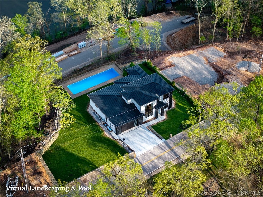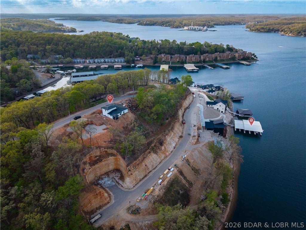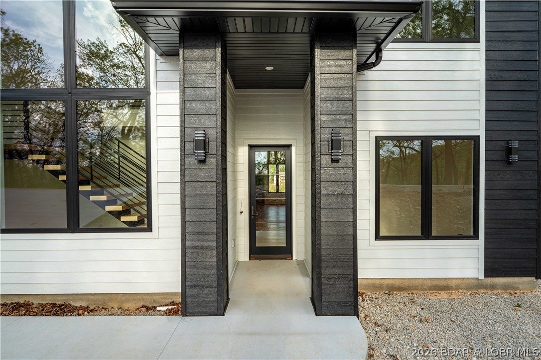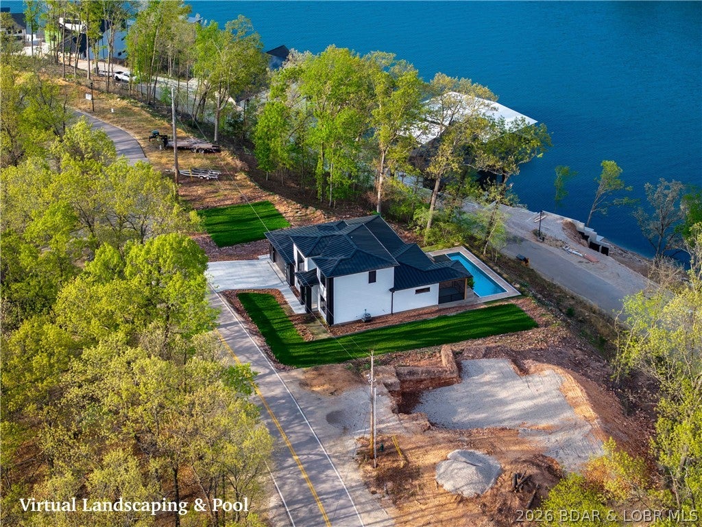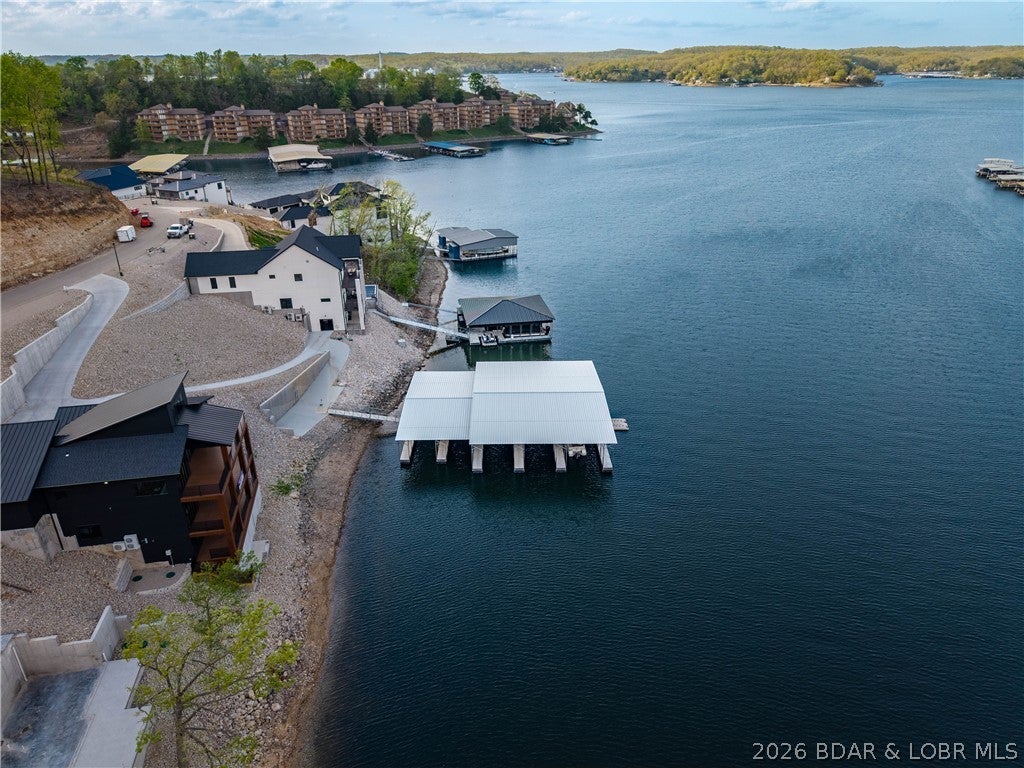 Careful this is the kind of home you accidentally fall in love with.New construction with lake views at the 3MM of the Osage, perfectly located down HH and just minutes from the Strip, dining, and shopping. This nearly 3,000 sq ft home offers 5 bedrooms, 3.5 baths, and 2 ensuites with a modern, open-concept design built for both everyday living and entertaining. Step inside to a striking floating staircase and a wall of Anderson windows and doors that flood the home with natural light and showcase the views. The kitchen is a showstopper featuring a waterfall island, a hand-selected mix of quartz and quartzite countertops, black and gold finishes, and Frigidaire Gallery appliances including a 36-inch gas cooktop. The living area is anchored by a beautiful fireplace, creating a warm yet elevated space. The primary suite offers a true retreat with a spa-like bath complete with Italian tile, heated floors, a walk-in shower, and soaking tub. Additional features include zoned HVAC, foam insulation, metal roof, 2-car garage with golf cart space, & boat slips available. The backyard can accommodate a pool at an additional charge. 20K landscapping allowance.