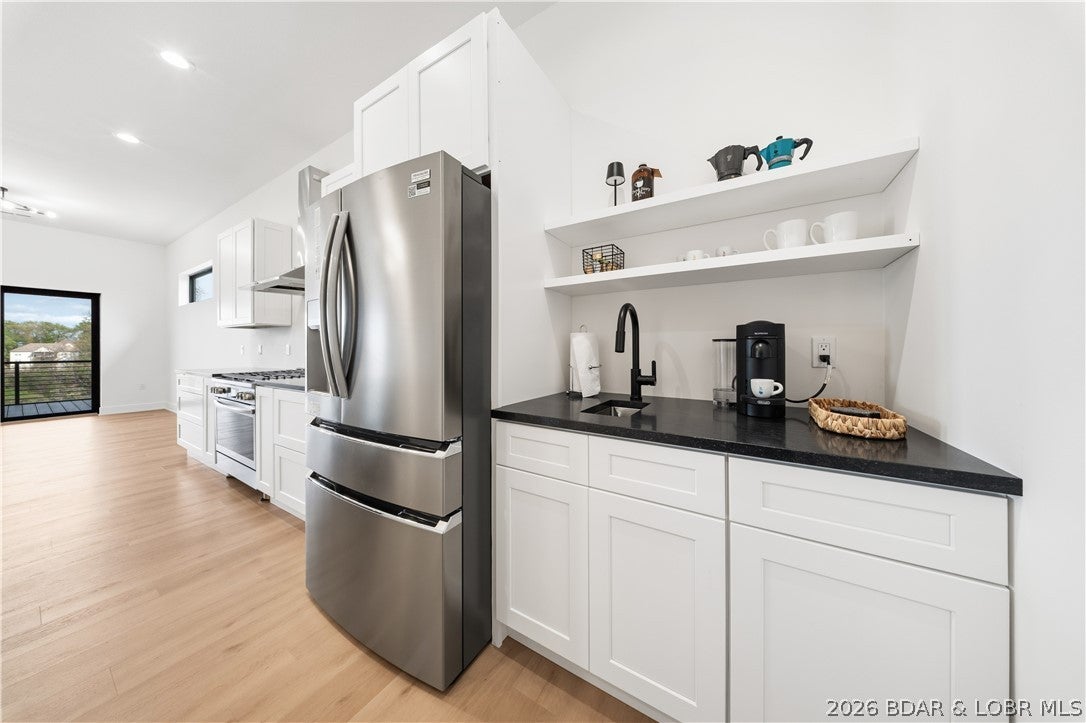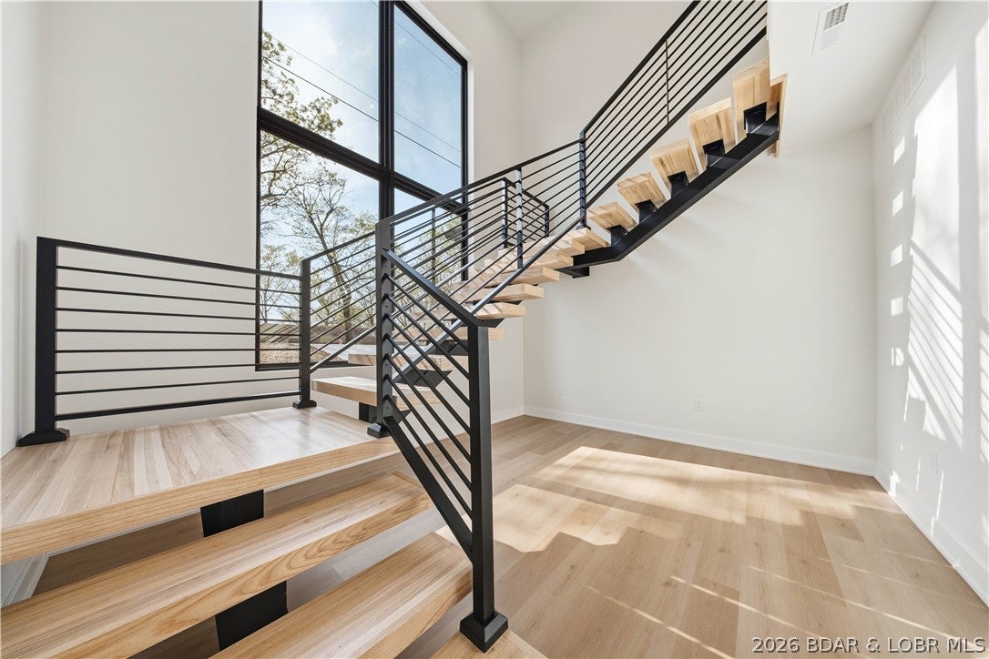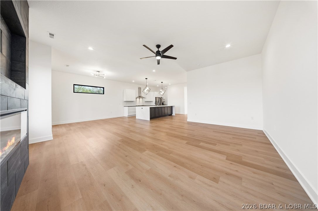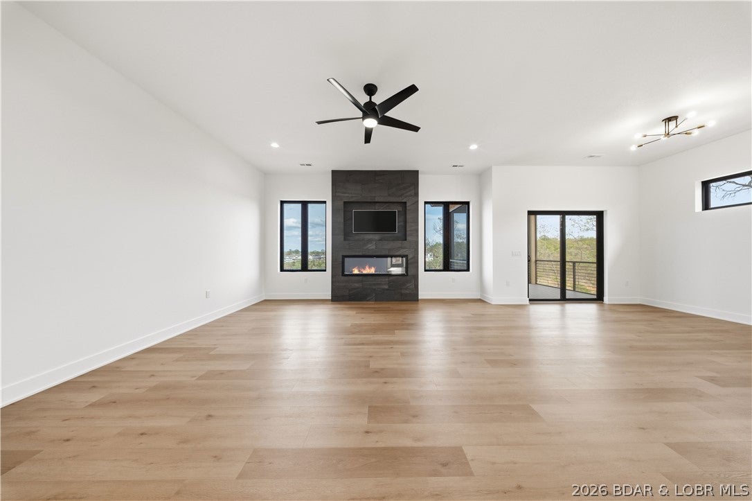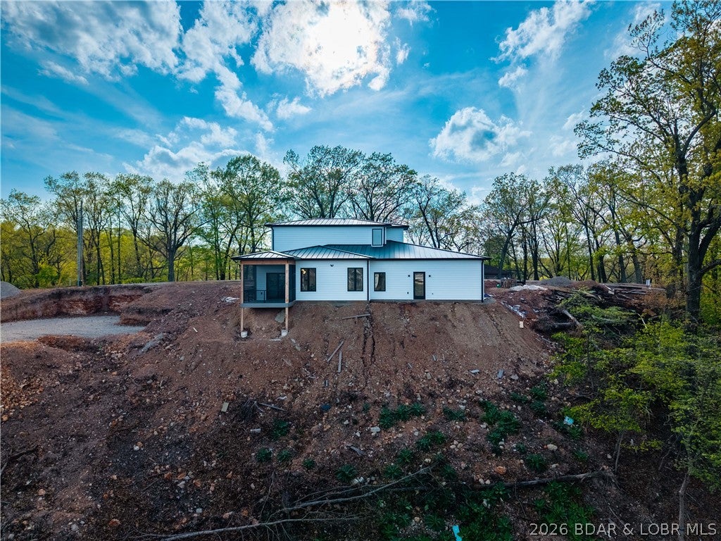 Careful this is the kind of home you accidentally fall in love with.New construction with lake views at the 3MM of the Osage, perfectly located down HH and just minutes from the Strip, dining, and shopping. This nearly 3,000 sq ft home offers 5 bedrooms, 3.5 baths, and 2 ensuites with a modern, open-concept design built for both everyday living and entertaining. Step inside to a striking floating staircase and a wall of Anderson windows and doors that flood the home with natural light and showcase the views. The kitchen is a showstopper featuring a waterfall island, a hand-selected mix of quartz and quartzite countertops, black and gold finishes, and Frigidaire Gallery appliances including a 36-inch gas cooktop. The living area is anchored by a beautiful fireplace, creating a warm yet elevated space. The primary suite offers a true retreat with a spa-like bath complete with Italian tile, heated floors, a walk-in shower, and soaking tub. Additional features include zoned HVAC, foam insulation, metal roof, 2-car garage with golf cart space, & boat slips available. The backyard can accommodate a pool at an additional charge. 20K landscapping allowance.