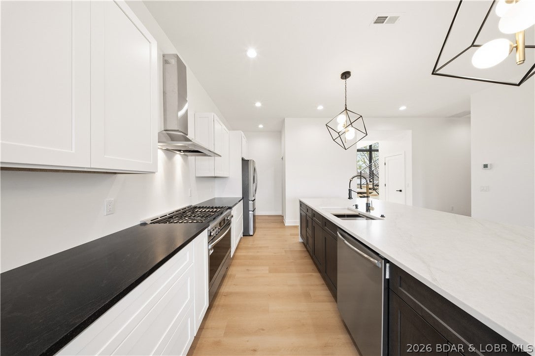 Careful this is the kind of home you accidentally fall in love with.New construction with lake views at the 3MM of the Osage, perfectly located down HH and just minutes from the Strip, dining, and shopping. This nearly 3,000 sq ft home offers 5 bedrooms, 3.5 baths, and 2 ensuites with a modern, open-concept design built for both everyday living and entertaining.