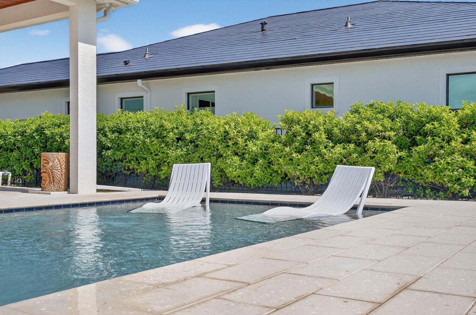 Indulge in a level of refinement rarely seen, where modern elegance meets effortless waterfront living. This extraordinary 5-bedroom, 5-bathroom residence spans over 3,000 square feet of impeccably curated designcrafted for those who expect nothing less than exceptional.Every detail has been intentionally elevated. Each bedroom is a private sanctuary, complete with its own designer bathroom and custom closet built-in cabinetry illuminated by soft LED lighting, creating an ambiance of understated sophistication throughout.The primary suite is a true statement of indulgence, offering dual walk-in closets, separate spa-inspired vanities, an expansive walk-in shower with dual rainfall heads, and a deep soaking tub designed for complete escape.Expansive living spaces are grounded by striking oversized tile flooring, seamlessly guiding you through an open-concept layout designed to impress. The large 90 degree sliders invite natural light to pour in while blurring the line between indoor luxury and outdoor serenity.Step beyond to your private resort-style retreat. A shimmering pool with a dramatic sunken spa sets the stage for relaxation, while the fully equipped outdoor kitchenfeaturing a built-in grill and beverage fridgecreates the ultimate setting for unforgettable evenings under the Florida sky.For the boating enthusiast, the property delivers an unparalleled waterfront experience with a premium Trex dock & Wrapped Pilings, dual boat lifts (10K & 6K), and an inviting thatched tiki hutperfectly positioned for sunset views and effortless days on the water.A sleek metal roof crowns the home, complementing its modern architectural presence, while a dedicated pool bath adds both convenience and functionality.This is more than a homeit is a lifestyle defined by luxury, privacy, and the art of living beautifully.