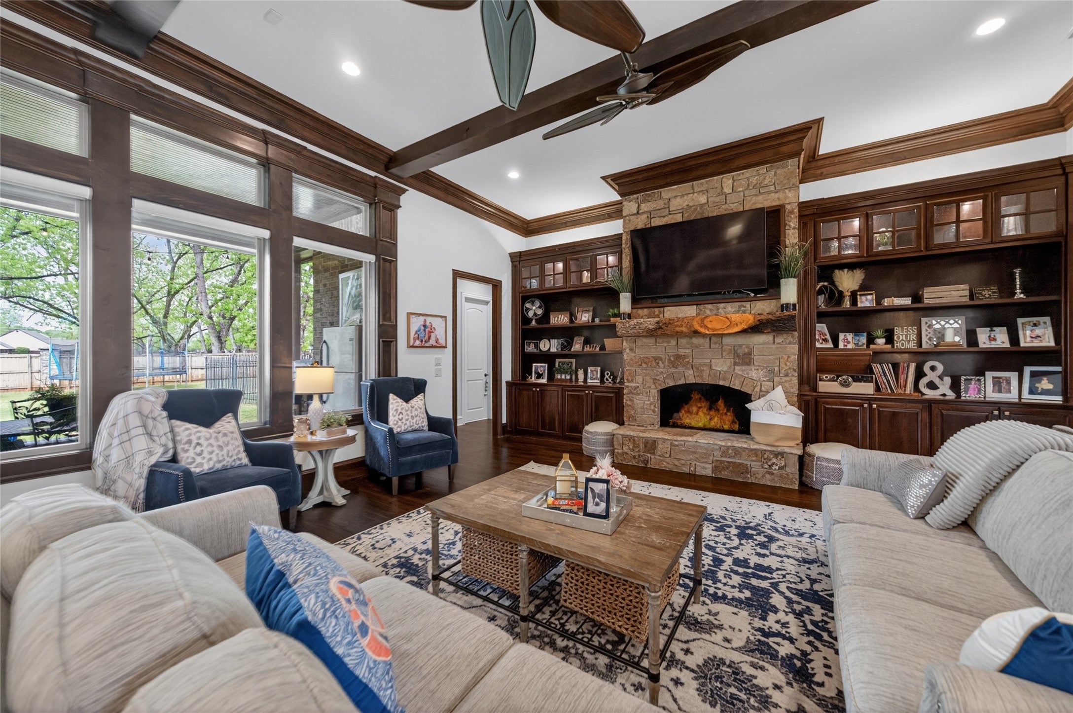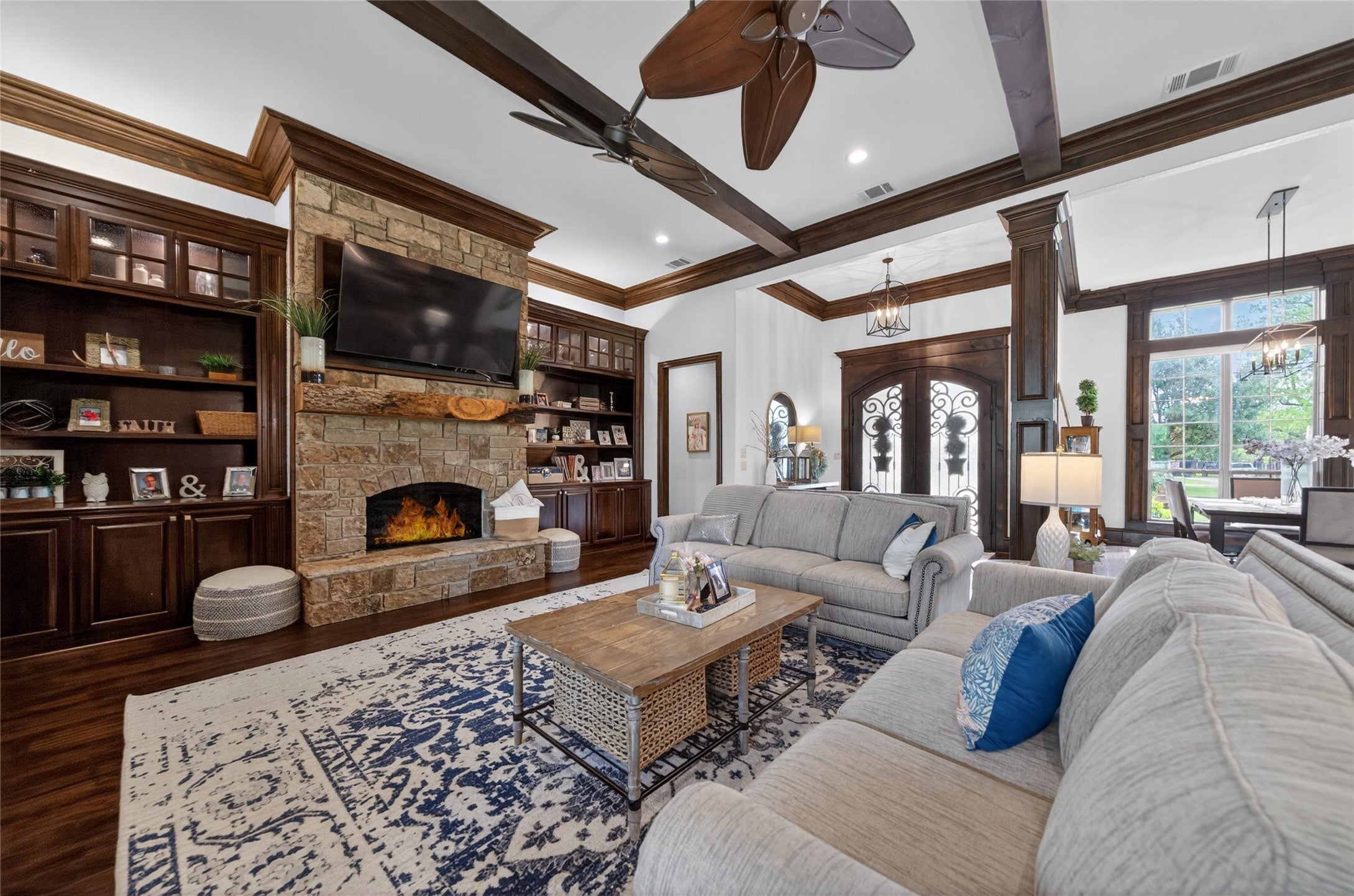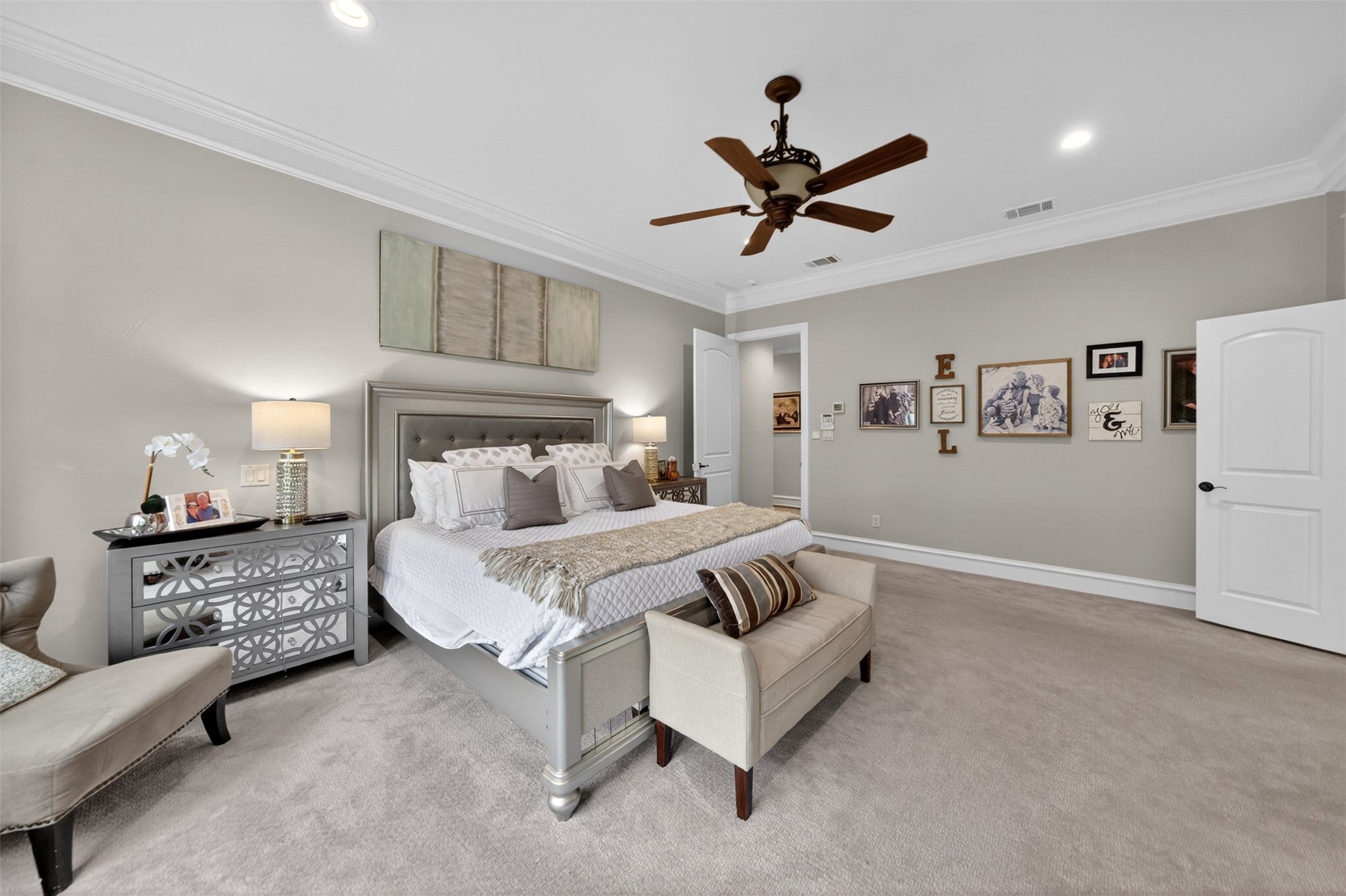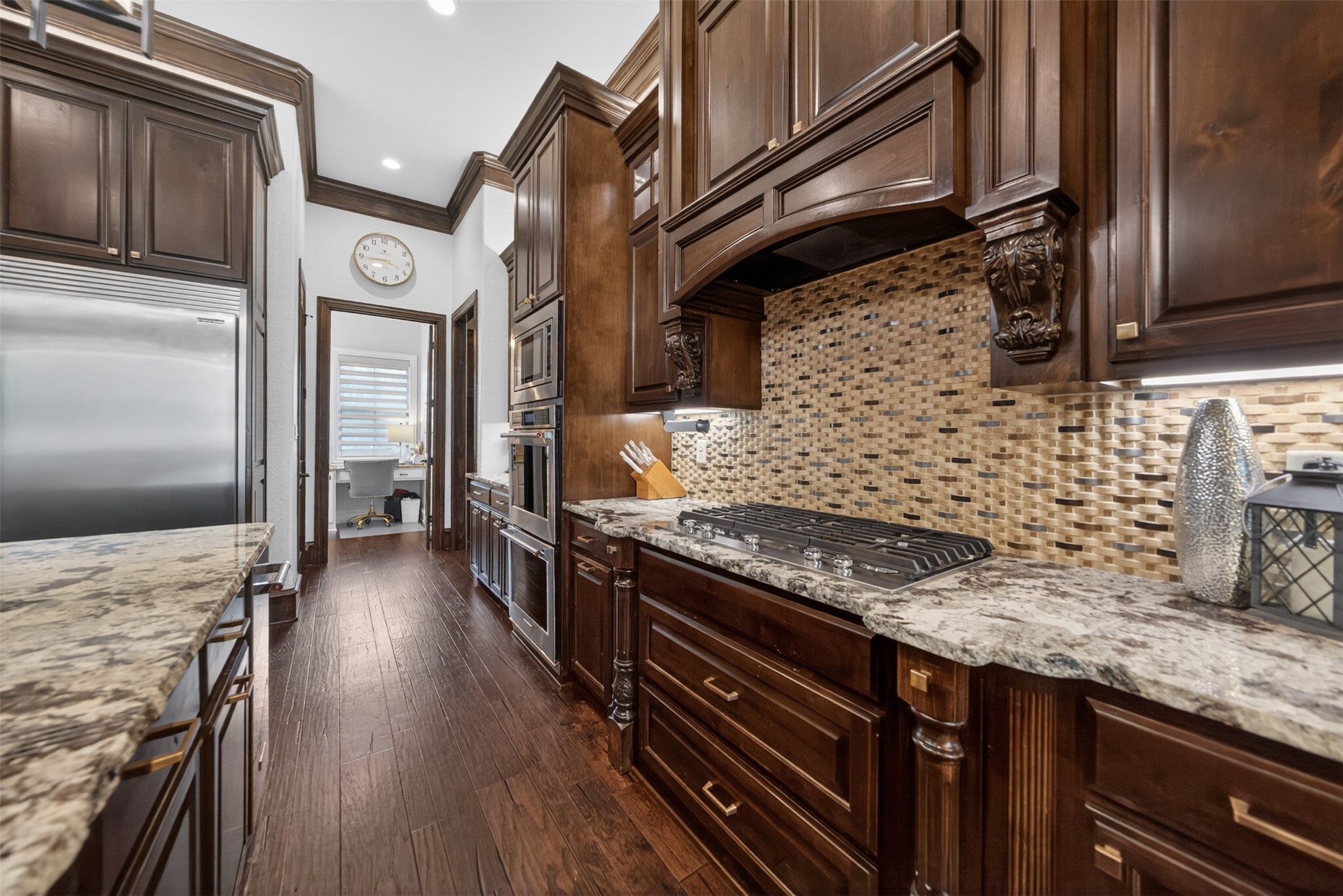 Welcome to your private East Texas Retreat in the sought after Pecan Valley Ranch community in Bullard. Nestled on a sprawling 1.17 ac lot surrounded by mature pecan trees, this stunning 5075 sf home offers the perfect blend of luxury, comfort and functionality for modern family living. This thoughtfully designed home features room for everyone- boasting 6spacious bedrooms and 5.5 bathrooms (all but 1 offer ensuite bathrooms), a dedicated office, an expansive game room with built-in bunk beds, and multiple living areas ideal for entertaining or just relaxing. The warm and inviting living room center around a beautiful gas fireplace, while high end finishes such as solid wood interior doors, granite surfaces, and designer lighting elevate the home throughout. The recently updated paint and carpet give the entire home a fresh, move-in-ready feel. The chefs kitchen featuring ice machine, double built-in frig and freezer and gas cooktop, large island and a serving bar flows seamlessly into the main living spaces creating the perfect environment for gatherings both large and small. Step outside and enjoy the peace and privacy of you acreage, complete with extra parking and a fully fenced backyard. Pet lovers will appreciate the unique dedicated dog room with its own separate dog run! Additional highlights include a oversized3 car garage and a whole house generator providing comfort and peace of mind year round. Dont miss out on this home located within the highly regarded Bullard Independent School District, offering over 1 ac lot, large fenced yard and plenty of room for your family and friends!