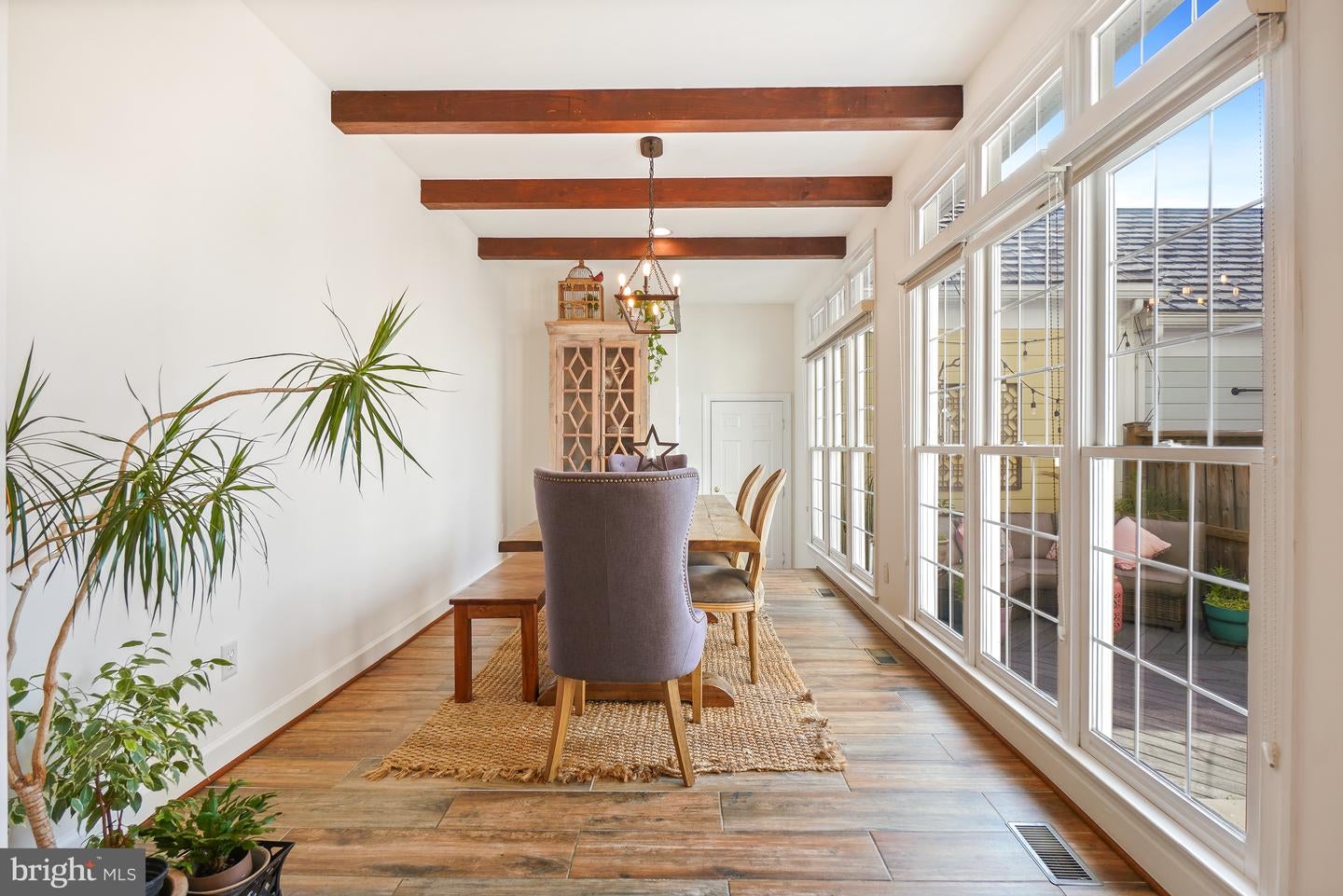Welcome to 305 Hart Road! This beautifully appointed townhome is located in the vibrant Kentlands community. The home offers over 3,900 square feet of well-designed living space across four finished levels. This spacious residence features 4 bedrooms, 3.5 bathrooms, and an attached two-car garage, blending comfort, style, and functionality.Step inside to a welcoming entry with soaring ceilings, abundant natural light from oversized windows, and gleaming wood floors that flow throughout the main level. The formal living and dining rooms provide elegant spaces for entertaining, highlighted by a stunning chandelier and ample room for gatherings. The open-concept layout seamlessly connects to the family room, complete with a cozy gas fireplace and direct access to a private outdoor patio.The upgraded kitchen features stainless steel appliances including a gas range, crisp white cabinetry, and a stylish backsplash. Adjacent to the kitchen is a versatile space with durable wood-look tile flooring, beam ceiling detail, and wall-to-wall windows overlooking the patio. The space is perfect for a casual dining area, sunroom, or home office. A convenient powder room and garage access complete the main level.Upstairs, the primary suite offers a true retreat with a spacious sitting area, two walk-in closets, and a luxurious ensuite bath featuring a double vanity, soaking tub, walk-in glass and tile shower, and elegant herringbone flooring. This level also includes a second bedroom that works for a home office or guest space and there is convenient bedroom-level laundry space.The top floor provides a private oasis with a large recreation or family room boasting vaulted ceilings, along with two additional bedrooms and a beautifully updated full bath. The bathroom showcases a modern dual sink vanity, a walk-in glass and tile shower with a rolling door, and eye-catching mosaic tile flooring.The fully finished lower level expands your living space even further, offering a large rec room with LVP flooring, a bonus room, and a full bath with shiplap accents and a walk-in glass and tile shower.Ideally located just one street from Kentlands Main Street, this home offers exceptional walkability to Kentlands shops, restaurants, and entertainment venues. With easy access to major commuter routes and transit, this is a rare opportunity to enjoy space, style, and convenience in one of the areas most desirable communities. Schedule your showing today!