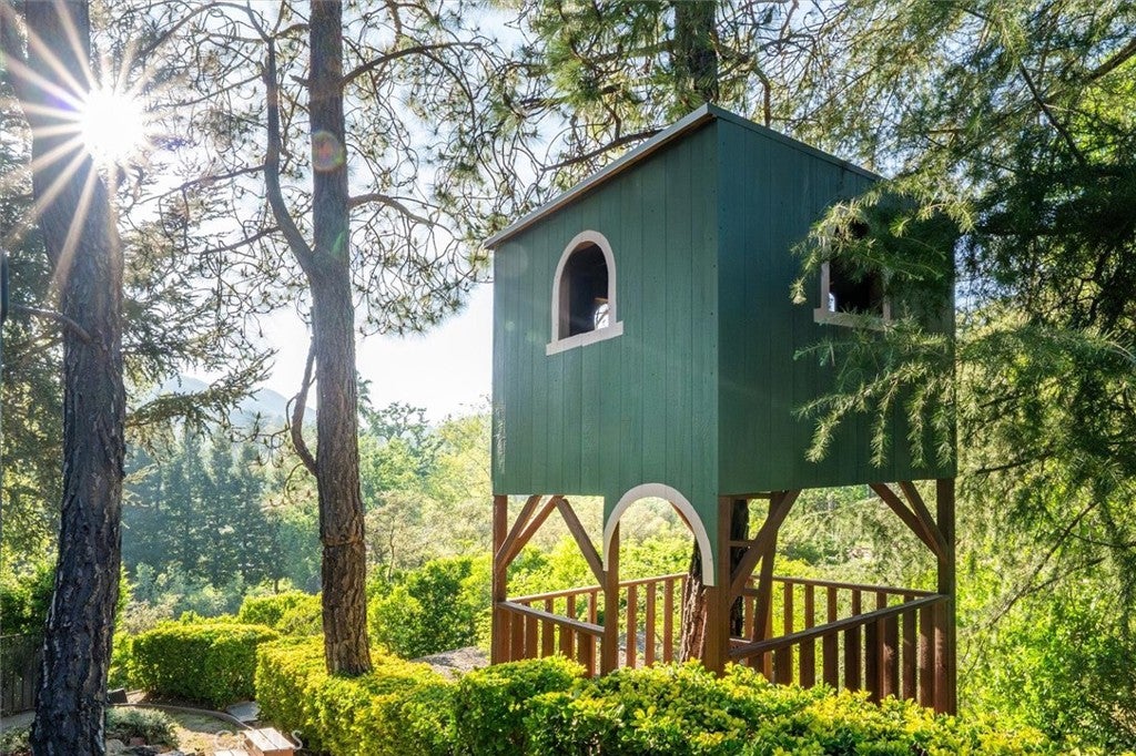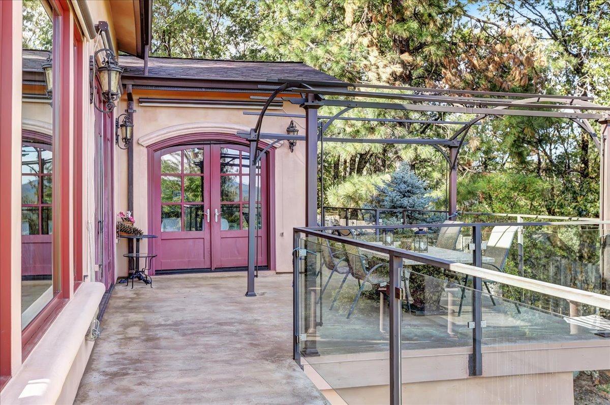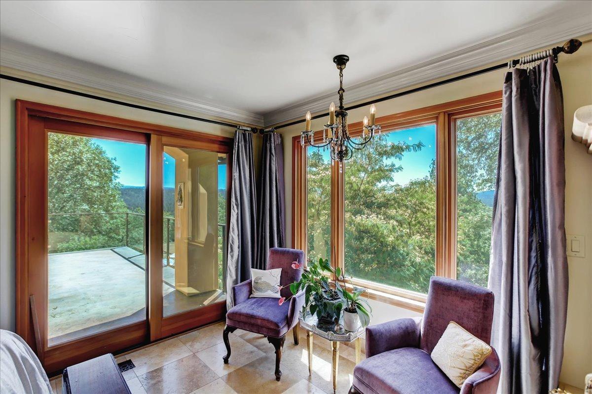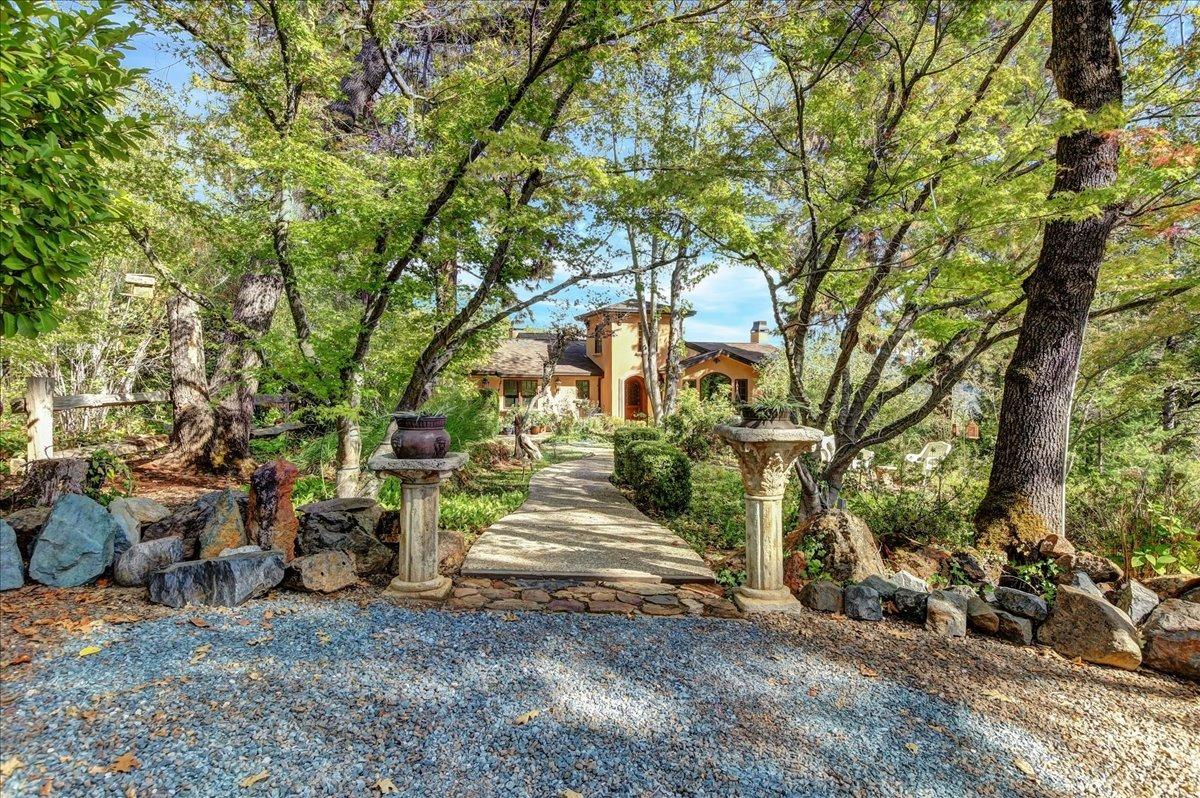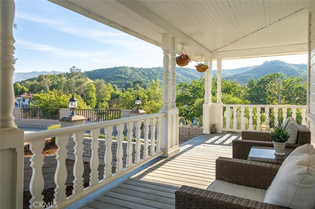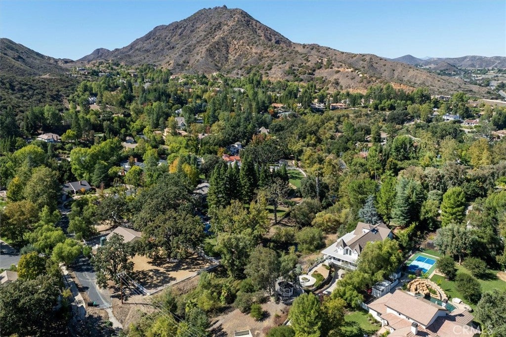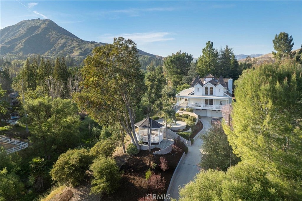 A rare private canyon estate set on its own elevated hilltop within a gated enclave south of the boulevard, offering sweeping views of Ladyface Mountain and a serene creek below. A cherry blossom-lined approach welcomes you into over 1.3 acres of serene natural beauty. The property overlooks surrounding horse properties and a year-round creek that flows toward Malibou Lakewhere the sounds of water, birds, and evening frogs create a peaceful, immersive retreat. The approximately 6,167-square-foot residence features expansive living spaces filled with natural light, thoughtfully designed to capture the surrounding canyon views. A curated collection of custom glassworkincluding stained, beveled, and etched detailsadds warmth, character, and architectural distinction throughout. The home offers seamless indoor-outdoor living, with multiple balconies and outdoor spaces designed to take in the settingfrom morning coffee off the kitchen to quiet evenings overlooking the canyon. A private top-floor primary suite serves as a true retreat, elevated above the landscape with a birds-eye view of the horses across the creek. The suite features a spa-inspired bathroom with steam room and an expansive walk-in closet. The lower level provides exceptional versatility with a professional recording studio complete with isolation booth, along with a separate guest apartmentideal for a private creative compound, multigenerational living, or extended stays. Additional features include a dedicated mudroom, two large storage areas, a private outdoor patio, built-in garage storage, and an electric vehicle charger. Outdoor spaces are designed for both relaxation and entertaining, featuring a wraparound porch, multiple seating areas, pizza oven, gazebo, and mature fruit trees. Recent improvements include nearly 400,000 invested into the property, including interior updates, refreshed front landscaping, hardscape improvements, termite inspection, and a newly enhanced presentation for this relaunch. The home is also connected to sewer (no septic). Located within the award-winning Las Virgenes School District and just minutes from Malibu, this is a rare opportunity to own a truly special canyon estate. Agoura Hills living at its FINEst!