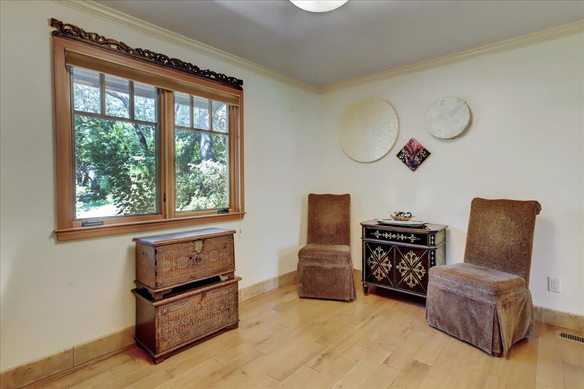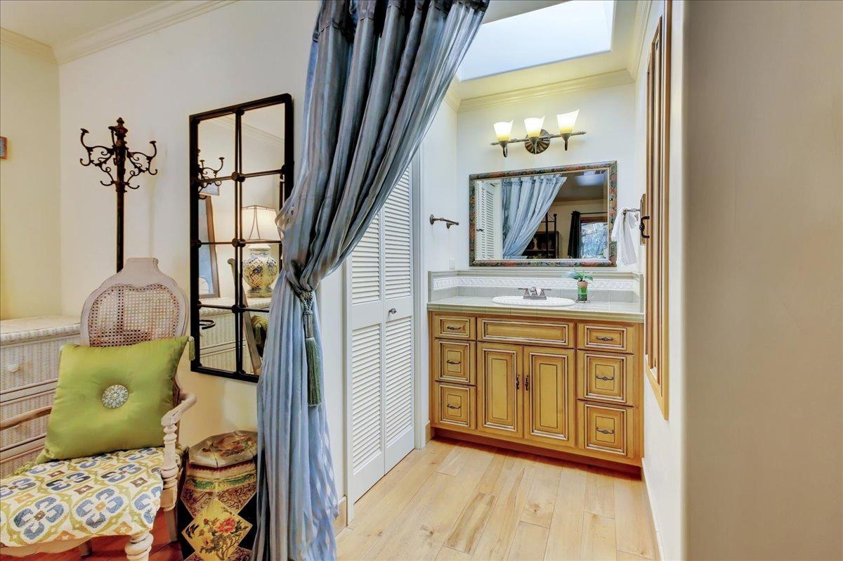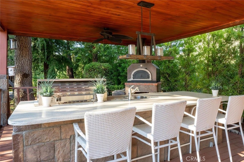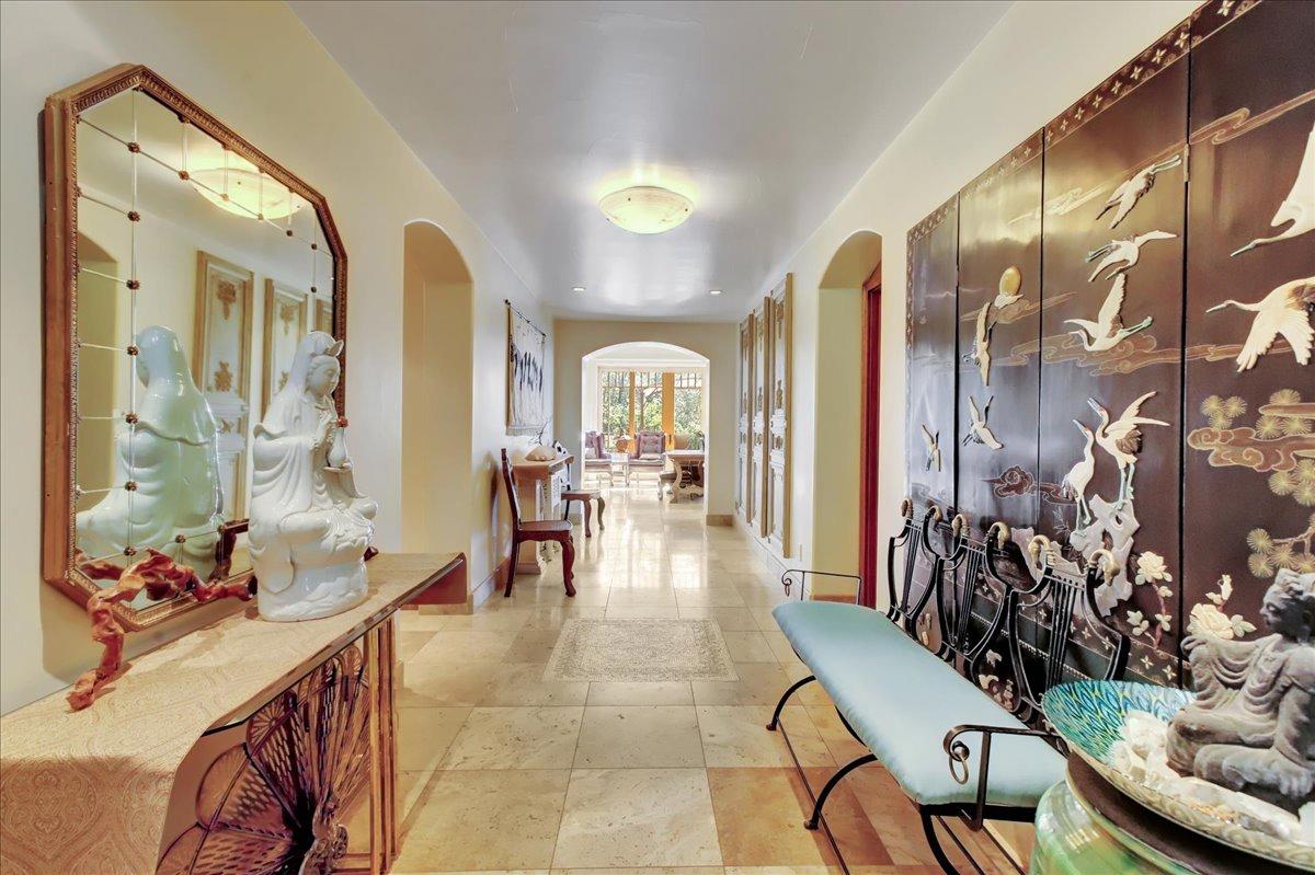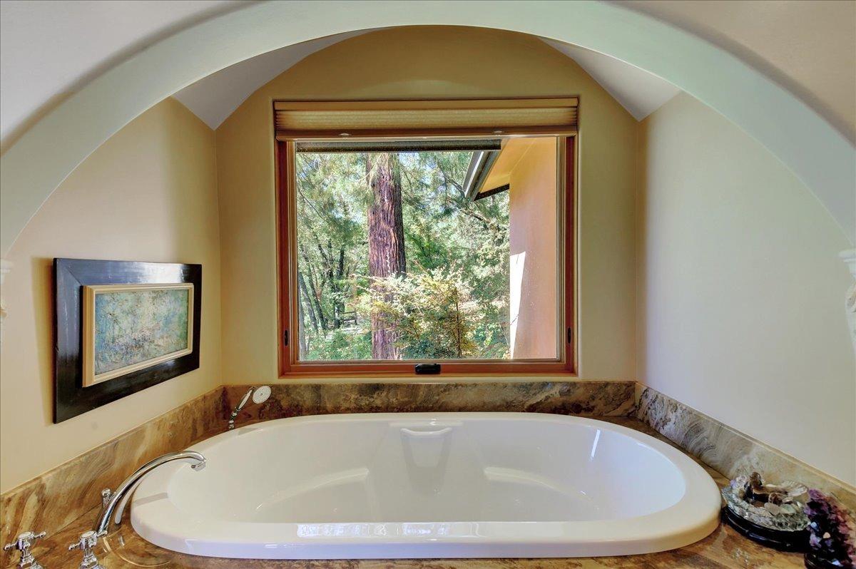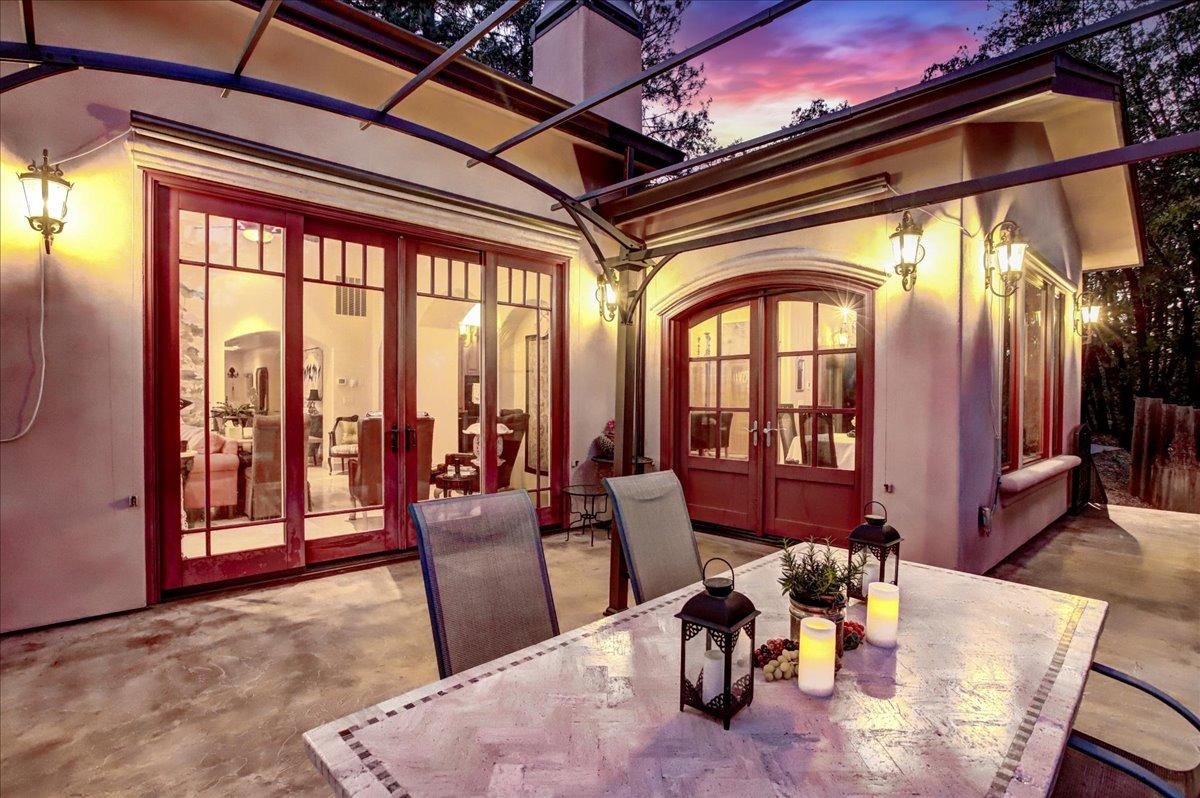 A rare private canyon estate set on its own elevated hilltop within a gated enclave south of the boulevard, offering sweeping views of Ladyface Mountain and a serene creek below. A cherry blossom-lined approach welcomes you into over 1.3 acres of serene natural beauty. The property overlooks surrounding horse properties and a year-round creek that flows toward Malibou Lakewhere the sounds of water, birds, and evening frogs create a peaceful, immersive retreat. The approximately 6,167-square-foot residence features expansive living spaces filled with natural light, thoughtfully designed to capture the surrounding canyon views. A curated collection of custom glassworkincluding stained, beveled, and etched detailsadds warmth, character, and architectural distinction throughout. The home offers seamless indoor-outdoor living, with multiple balconies and outdoor spaces designed to take in the settingfrom morning coffee off the kitchen to quiet evenings overlooking the canyon. A private top-floor primary suite serves as a true retreat, elevated above the landscape with a birds-eye view of the horses across the creek. The suite features a spa-inspired bathroom with steam room and an expansive walk-in closet. The lower level provides exceptional versatility with a professional recording studio complete with isolation booth, along with a separate guest apartmentideal for a private creative compound, multigenerational living, or extended stays. Additional features include a dedicated mudroom, two large storage areas, a private outdoor patio, built-in garage storage, and an electric vehicle charger. Outdoor spaces are designed for both relaxation and entertaining, featuring a wraparound porch, multiple seating areas, pizza oven, gazebo, and mature fruit trees. Recent improvements include nearly 400,000 invested into the property, including interior updates, refreshed front landscaping, hardscape improvements, termite inspection, and a newly enhanced presentation for this relaunch. The home is also connected to sewer (no septic). Located within the award-winning Las Virgenes School District and just minutes from Malibu, this is a rare opportunity to own a truly special canyon estate. Agoura Hills living at its FINEst!
