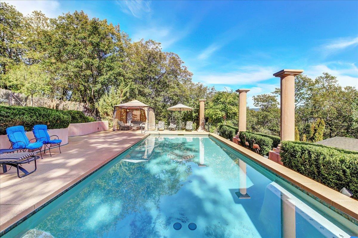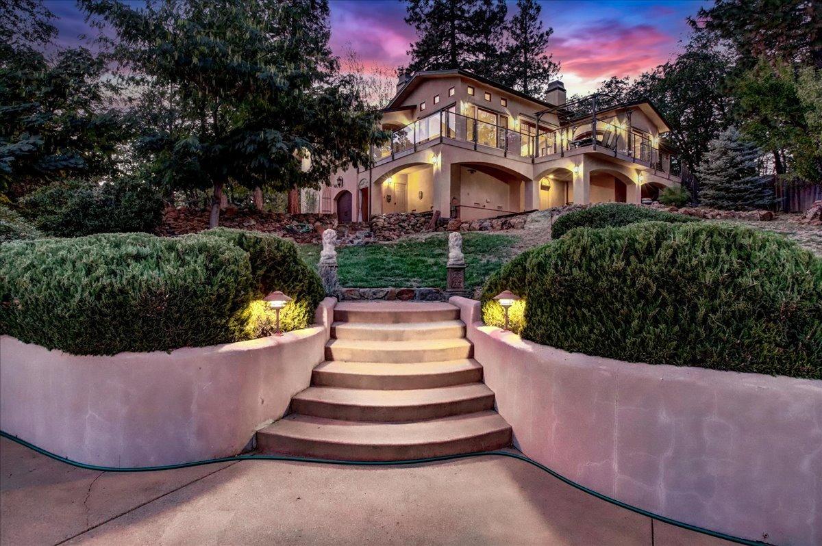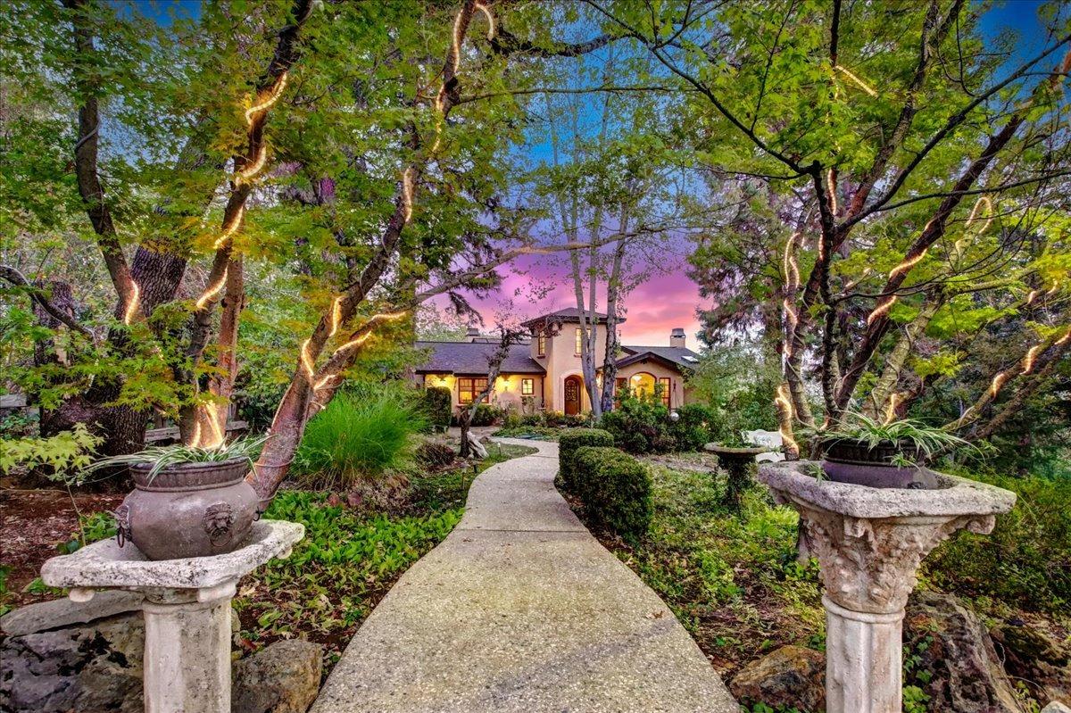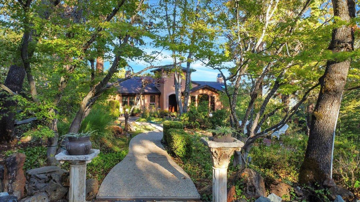 A rare private canyon estate set on its own elevated hilltop within a gated enclave south of the boulevard, offering sweeping views of Ladyface Mountain and a serene creek below. A cherry blossom-lined approach welcomes you into over 1.3 acres of serene natural beauty.