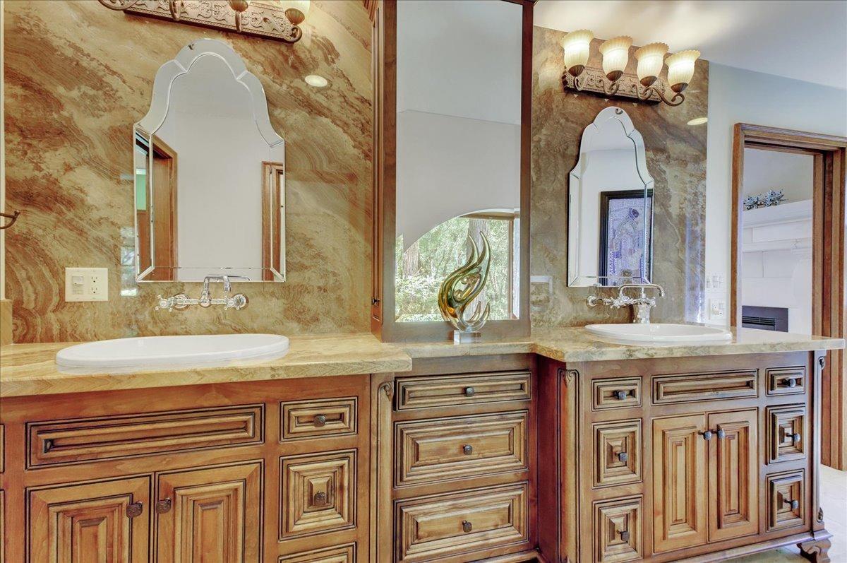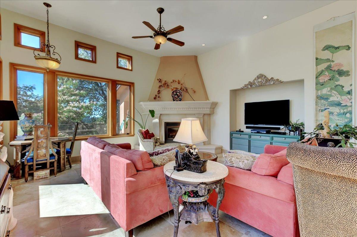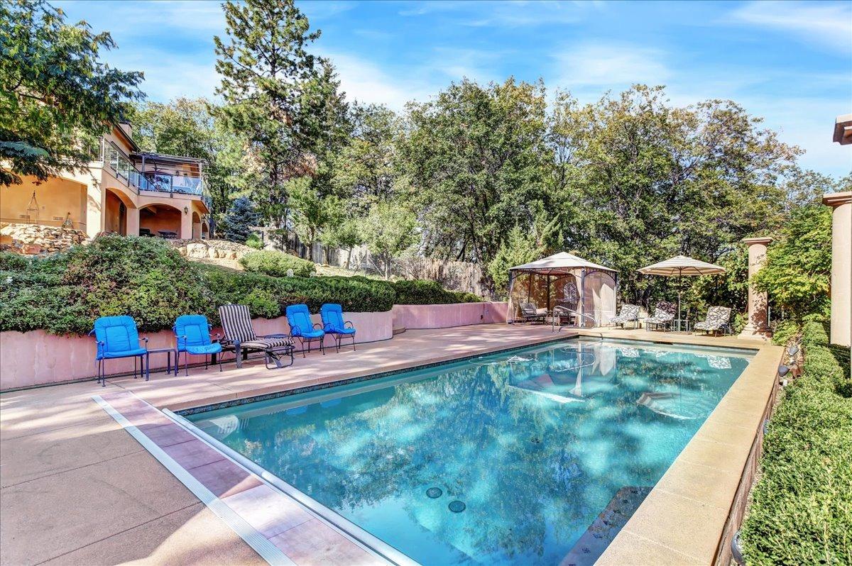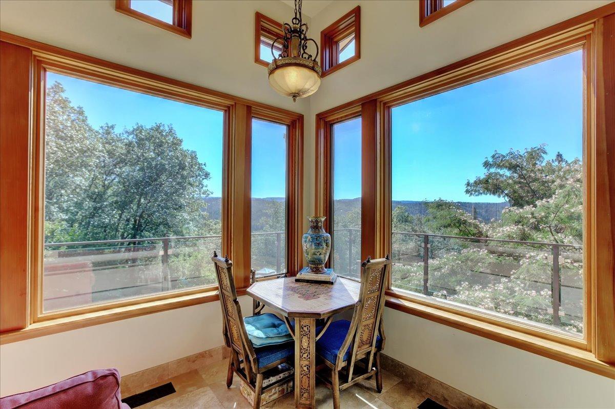 A rare private canyon estate set on its own elevated hilltop within a gated enclave south of the boulevard, offering sweeping views of Ladyface Mountain and a serene creek below. A cherry blossom-lined approach welcomes you into over 1.3 acres of serene natural beauty.