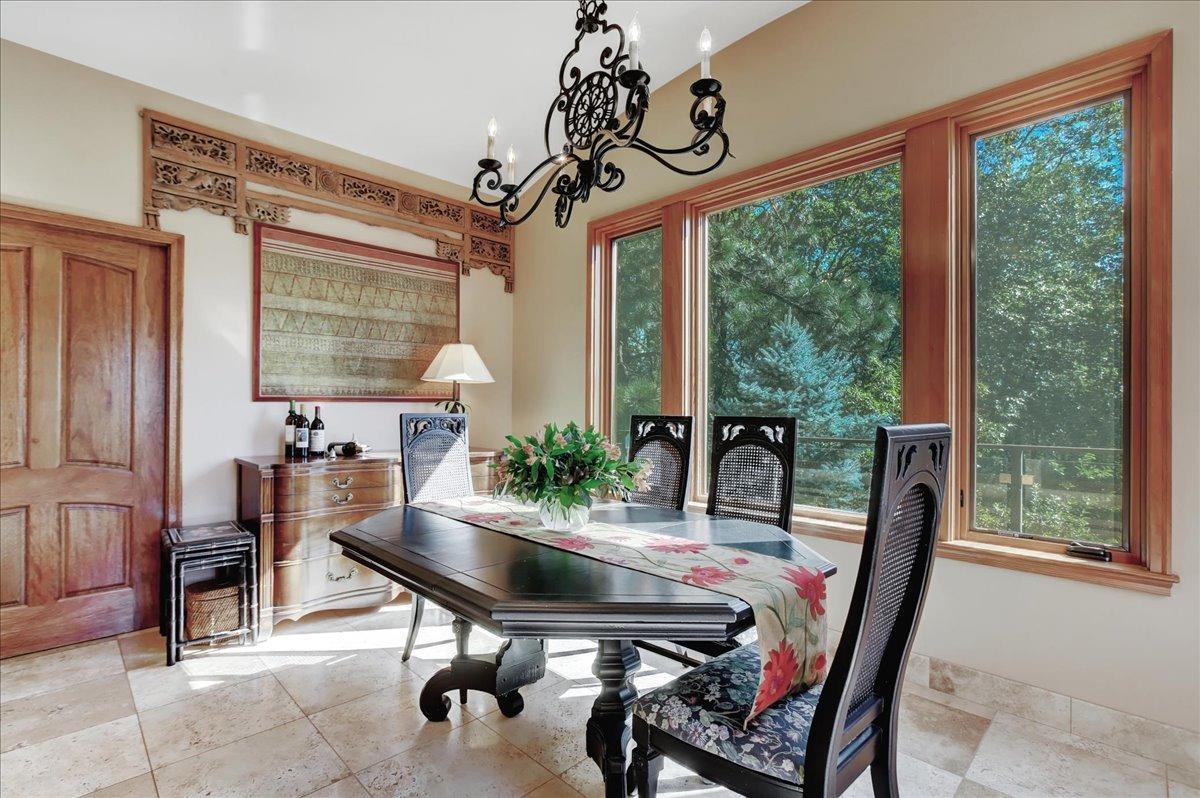 This exquisite European style custom estate delivers a rare blend of craftsmanship, comfort, and resort level living set against a backdrop of breathtaking views. Designed to impress and built to last, the home showcases Italian travertine heated floors, soaring cathedral ceilings, and expansive Marvin windows that frame the surrounding landscape and fill the interior with natural light.