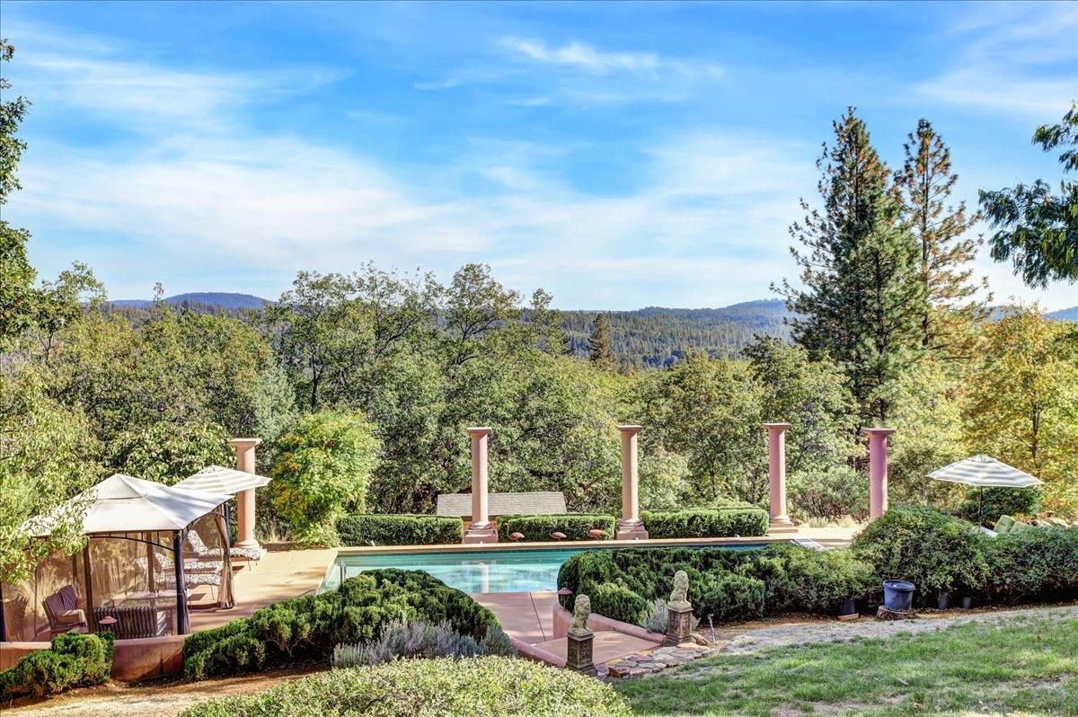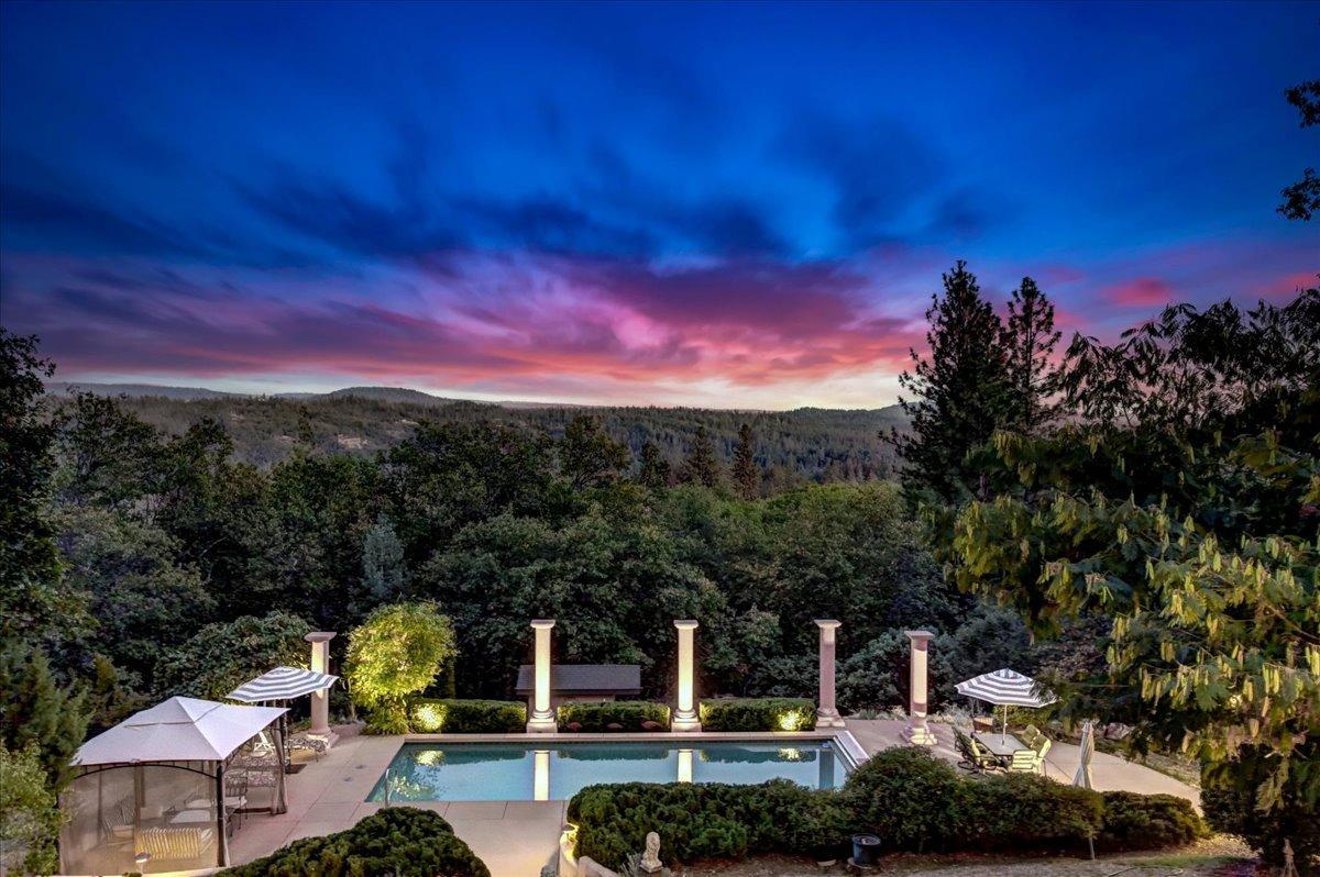 This exquisite European style custom estate delivers a rare blend of craftsmanship, comfort, and resort level living set against a backdrop of breathtaking views. Designed to impress and built to last, the home showcases Italian travertine heated floors, soaring cathedral ceilings, and expansive Marvin windows that frame the surrounding landscape and fill the interior with natural light. The gourmet kitchen is both elegant and functional, ideal for entertaining or everyday living, while the luxurious primary suite offers a private retreat designed for relaxation and refinement. Outdoors, the inviting in ground pool creates a true resort style setting, perfect for gatherings, quiet evenings, and year round enjoyment. Adding to the propertys versatility is a charming detached storybook cottage, ideal for guests, extended living, or income potential. The grounds are nothing short of exceptional, featuring a serene year round pond filled with koi fish, peaceful gardens, and abundant mature fruit trees that create a setting of privacy, beauty, and tranquility. A remarkable opportunity for those seeking luxury, flexibility, and a lifestyle property with lasting value.