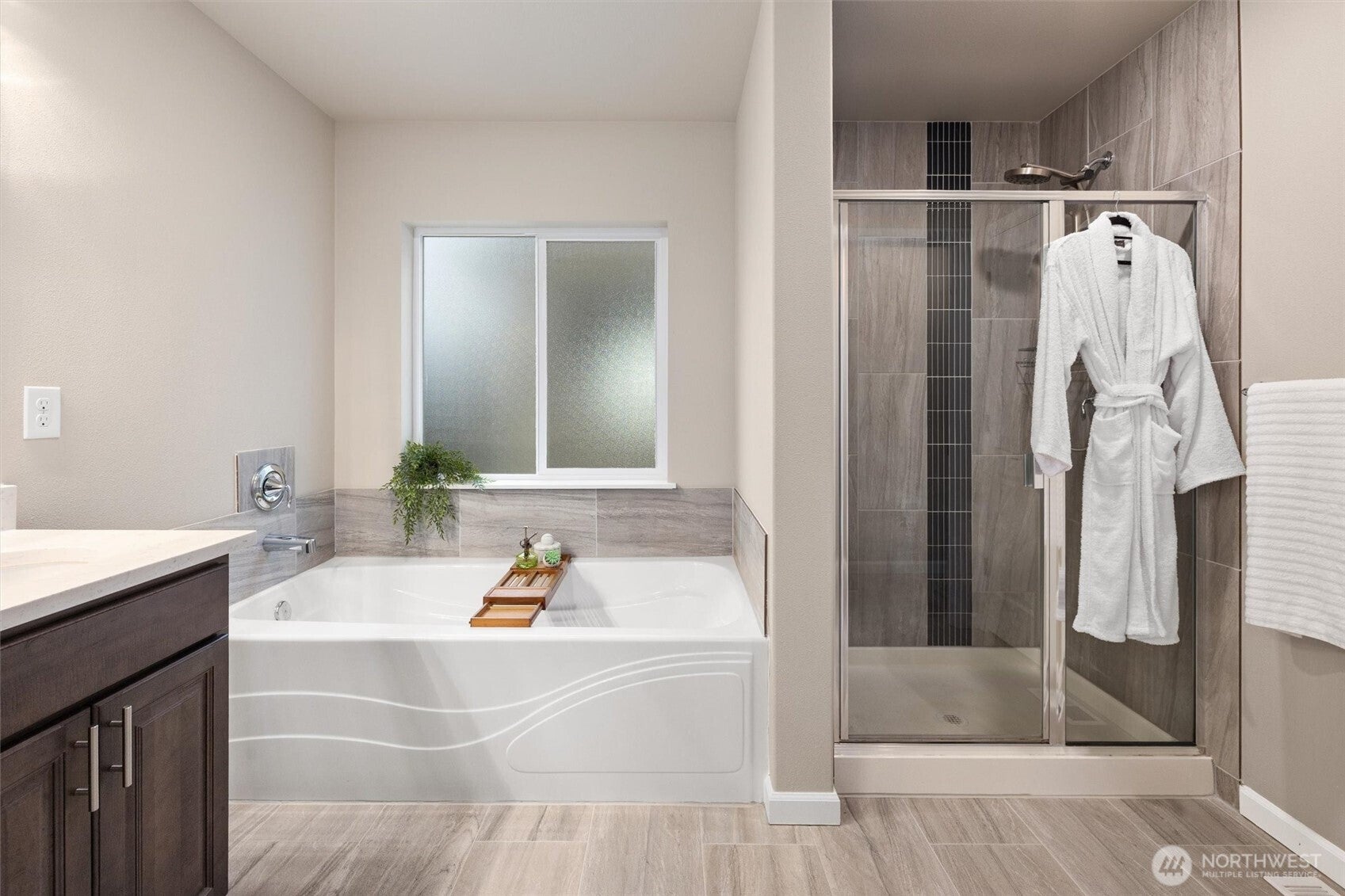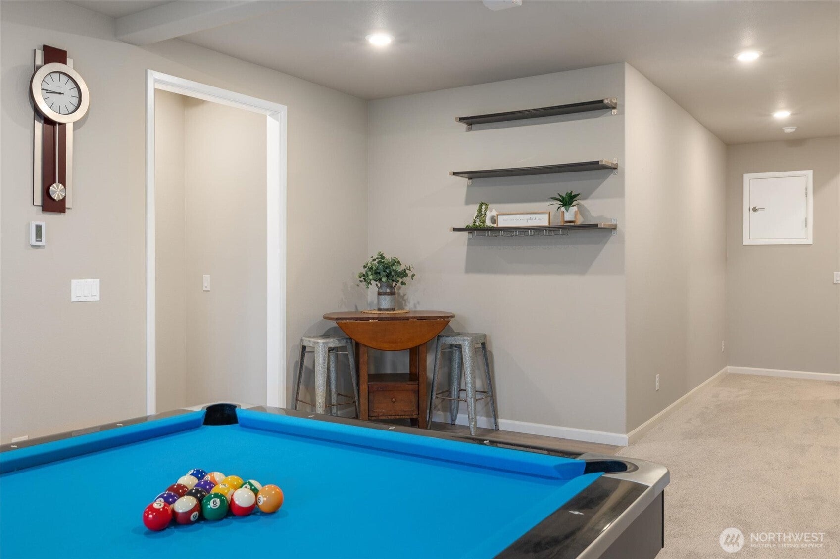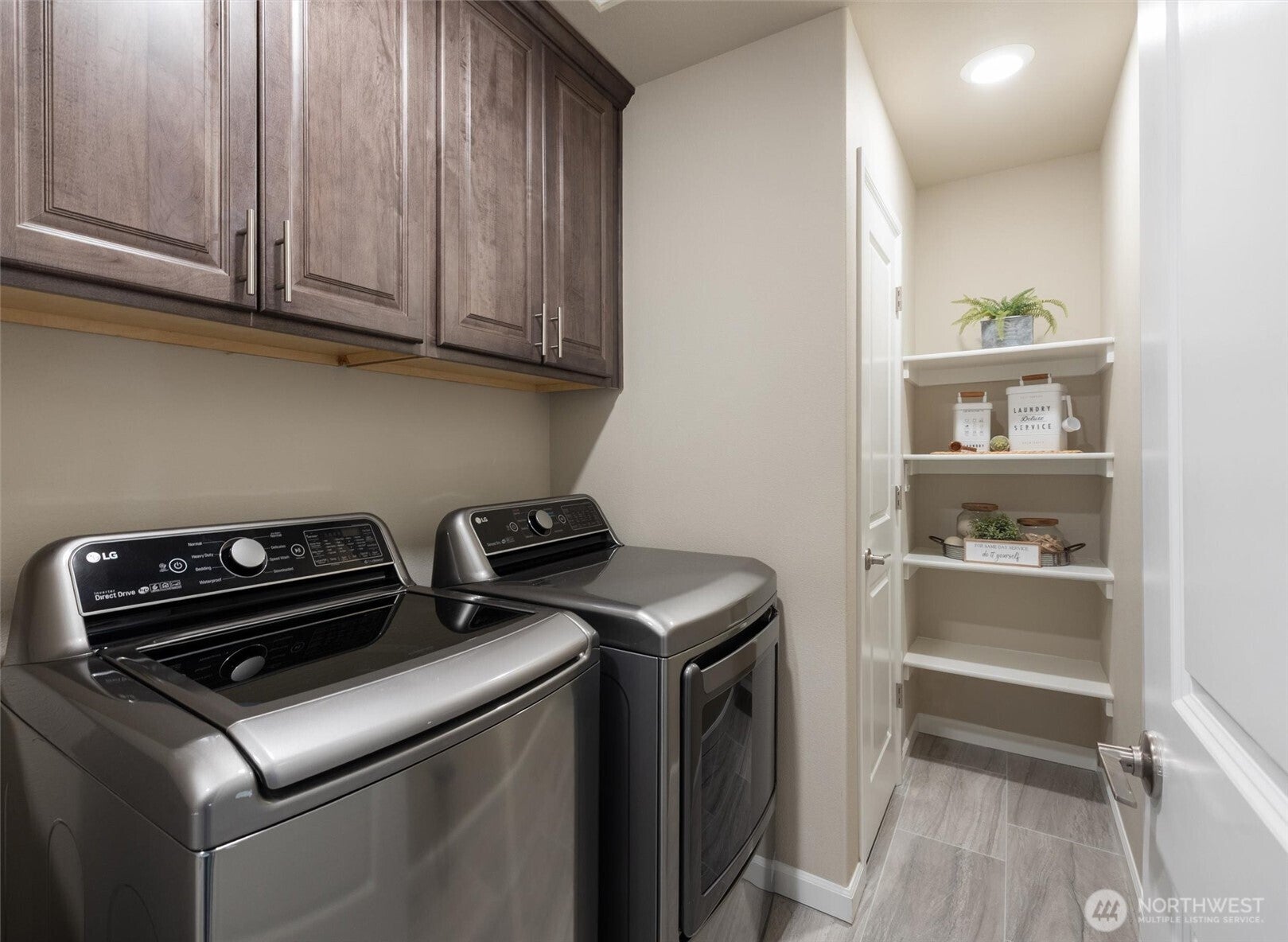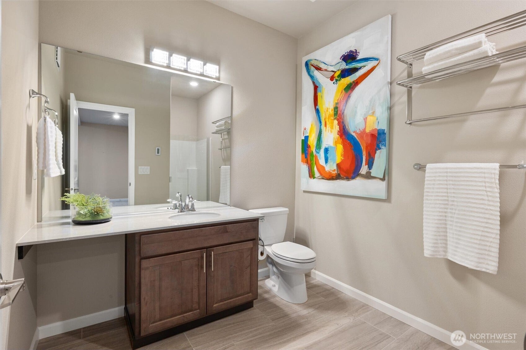 Covered front patio welcomes you to this spectacular 9-foot-ceiling SMART home. From the moment you step inside, the grand entryway & soaring ceilings set the tone, complemented by abundant natural light & stunning territorial & Olympic Mountain views. Just off the entry, the heart of the home awaits, impressive chefs kitchen designed for both everyday living & entertaining. Featuring a large eating island w/seating for 6, 5-burner gas cooktop, double ovens, soft-close cabinetry w/upgraded hardware & a pantry w/slide-out drawers. Laminate flooring flows seamlessly through the open-concept living & dining areas, anchored by a cozy gas fireplace. Tall slider & oversized windows capture the views & flood the space w/light, while canned LED lighting & smart-home features enhance comfort & efficiency. Main-floor 1/2 bth completes the main level. Upstairs, youll find 3 generously sized bedrms, including 2 that share a Jack & Jill bathroom. Spacious owners suite offers a peaceful retreat w/luxurious 5-piece ensuite. Upstairs laundry room & furnace closet add everyday convenience. Fully finished basement continues the 9-foot ceilings & provides exceptional flexibility w/a large bonus room. Optional 5th bedroom & a bath. 5th bedroom currently has one wall unfinished, offering an opportunity for customization. Expansive patio is ideal for entertaining & covered area beneath deck has been roofed creating a private, year-round seating space. Central A/C & Northshore Schools!