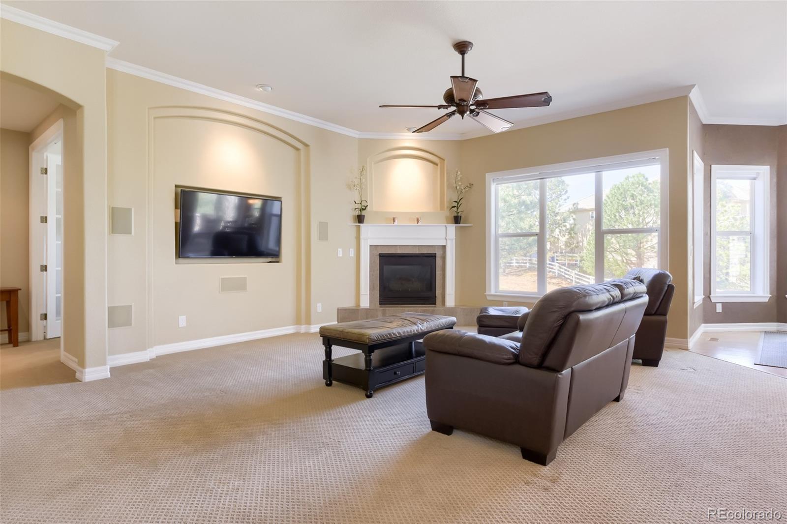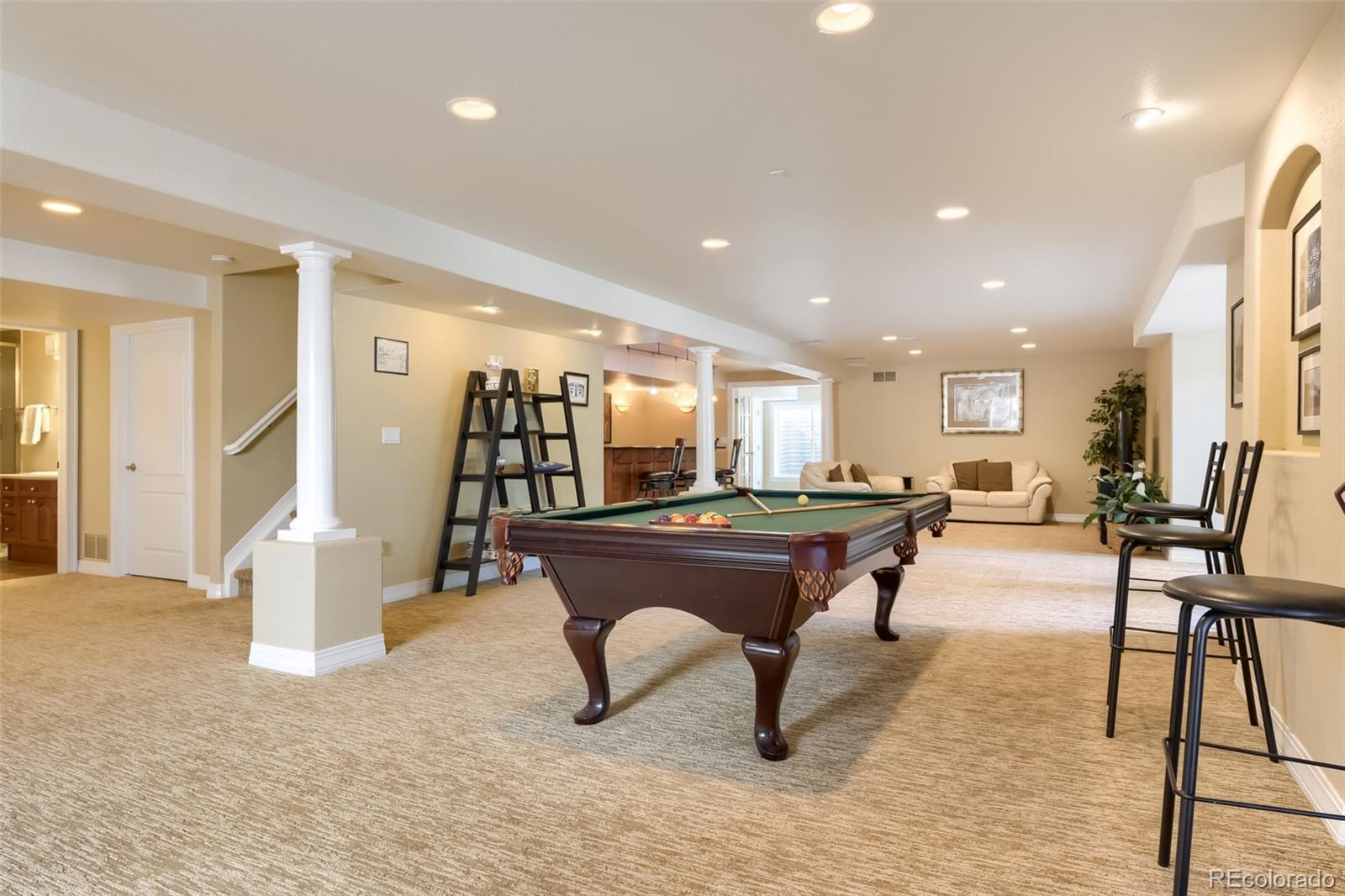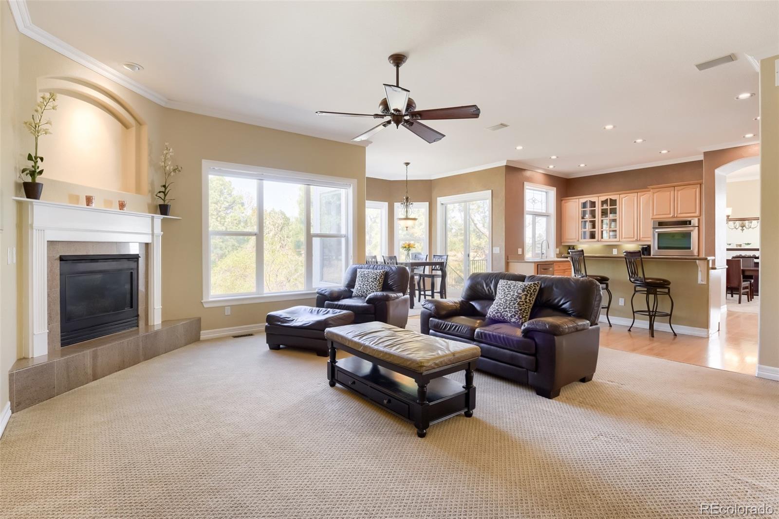 JUST LISTED in Lone Trees beautiful Carriage Club neighborhood! Perfectly positioned on a short cul-de-sac and backing to open space, this exceptional home offers privacy, views, and over 5,600 sq. ft. of thoughtfully designed living space. A charming front porch welcomes you inside to a grand entry with soaring 20 ceilings, a dramatic curved staircase, and elegant wrought iron balusters. The open-concept main level is ideal for both everyday living and entertaining, featuring a spacious family room with a fireplace and a well-appointed kitchen with a gas cooktop, double ovens, a built-in microwave, granite countertops, a center island, and a walk-in pantry. A main-floor bedroom with a walk-in closet and adjacent full bath offers flexibility for a private home office or multi-generational living. Upstairs, the luxurious primary suite provides a true retreat with a generous sitting area (19 x 12), a cozy fireplace, and a 5-piece bath with a jetted tub. Two additional bedrooms are connected by a Jack-and-Jill bath. The light-filled walk-out basement expands your living space with a large rec room (pool table included), a media area, a wet bar with both wine and beverage coolers, and two additional bedrooms with large windowsideal for guests, a gym, or flexible living. Enjoy Colorado outdoor living from the composite deck overlooking open space, complete with a motorized retractable awning. Additional highlights include two newer HVAC systems, a concrete tile roof, a new water softener and sump pump, a newer water heater, and an oversized 3-car garage with built-in cabinetry and overhead storage. Just a short walk to Bluffs Regional Park with miles of scenic trails and sweeping mountain views, and conveniently located near the Charles Schwab campus, Sky Ridge Medical Center, Park Meadows Mall shopping and dining, and easy access to I-25 and C-470. Visit the virtual tour at www.9969Longview.com!