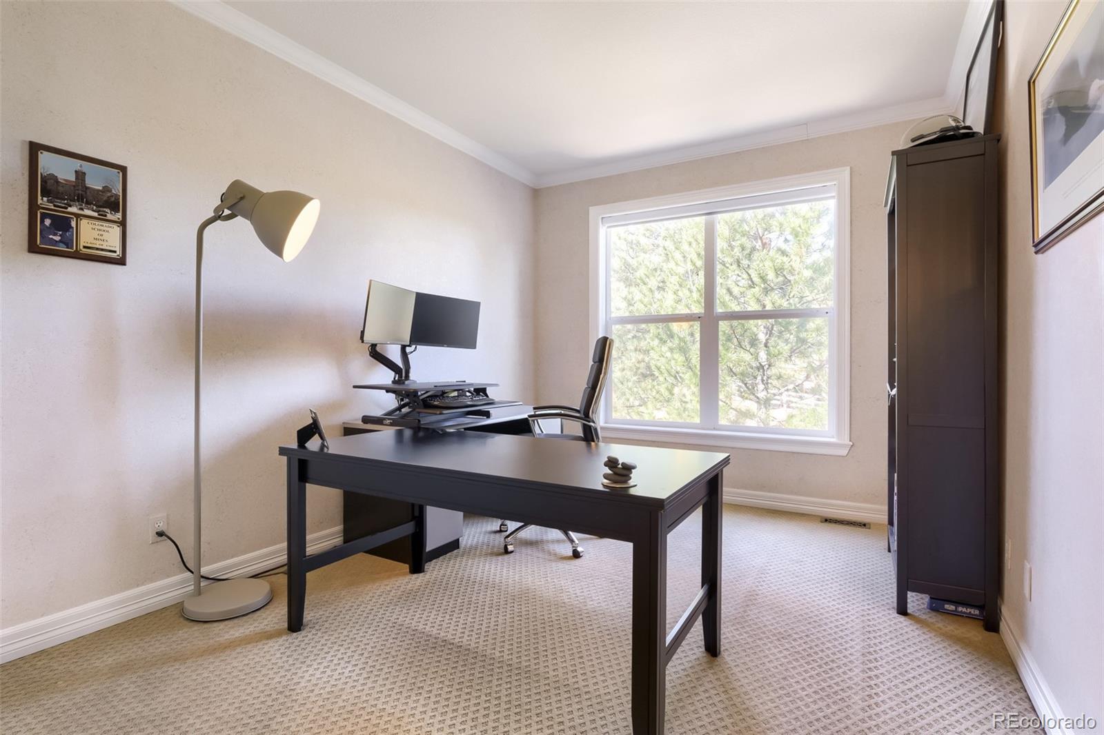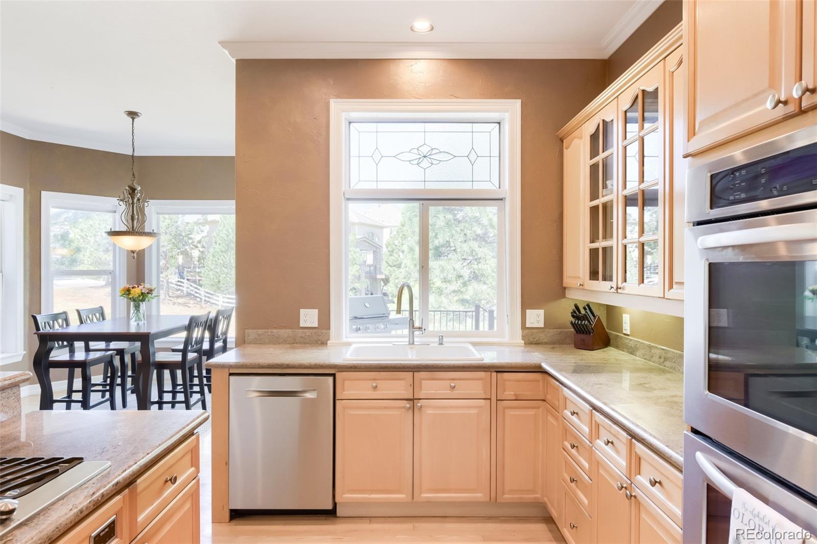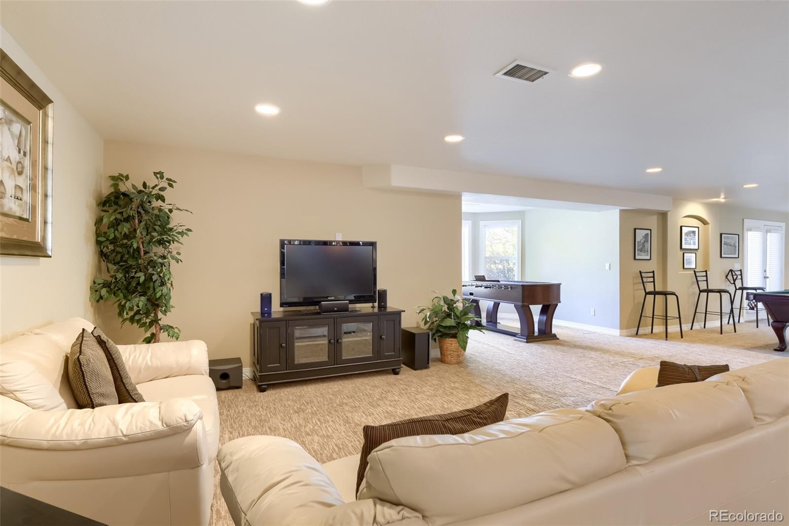 JUST LISTED in Lone Trees beautiful Carriage Club neighborhood! Perfectly positioned on a short cul-de-sac and backing to open space, this exceptional home offers privacy, views, and over 5,600 sq. ft. of thoughtfully designed living space. A charming front porch welcomes you inside to a grand entry with soaring 20 ceilings, a dramatic curved staircase, and elegant wrought iron balusters. The open-concept main level is ideal for both everyday living and entertaining, featuring a spacious family room with a fireplace and a well-appointed kitchen with a gas cooktop, double ovens, a built-in microwave, granite countertops, a center island, and a walk-in pantry. A main-floor bedroom with a walk-in closet and adjacent full bath offers flexibility for a private home office or multi-generational living. Upstairs, the luxurious primary suite provides a true retreat with a generous sitting area (19 x 12), a cozy fireplace, and a 5-piece bath with a jetted tub. Two additional bedrooms are connected by a Jack-and-Jill bath. The light-filled walk-out basement expands your living space with a large rec room (pool table included), a media area, a wet bar with both wine and beverage coolers, and two additional bedrooms with large windowsideal for guests, a gym, or flexible living. Enjoy Colorado outdoor living from the composite deck overlooking open space, complete with a motorized retractable awning. Additional highlights include two newer HVAC systems, a concrete tile roof, a new water softener and sump pump, a newer water heater, and an oversized 3-car garage with built-in cabinetry and overhead storage. Just a short walk to Bluffs Regional Park with miles of scenic trails and sweeping mountain views, and conveniently located near the Charles Schwab campus, Sky Ridge Medical Center, Park Meadows Mall shopping and dining, and easy access to I-25 and C-470. Visit the virtual tour at www.9969Longview.com!