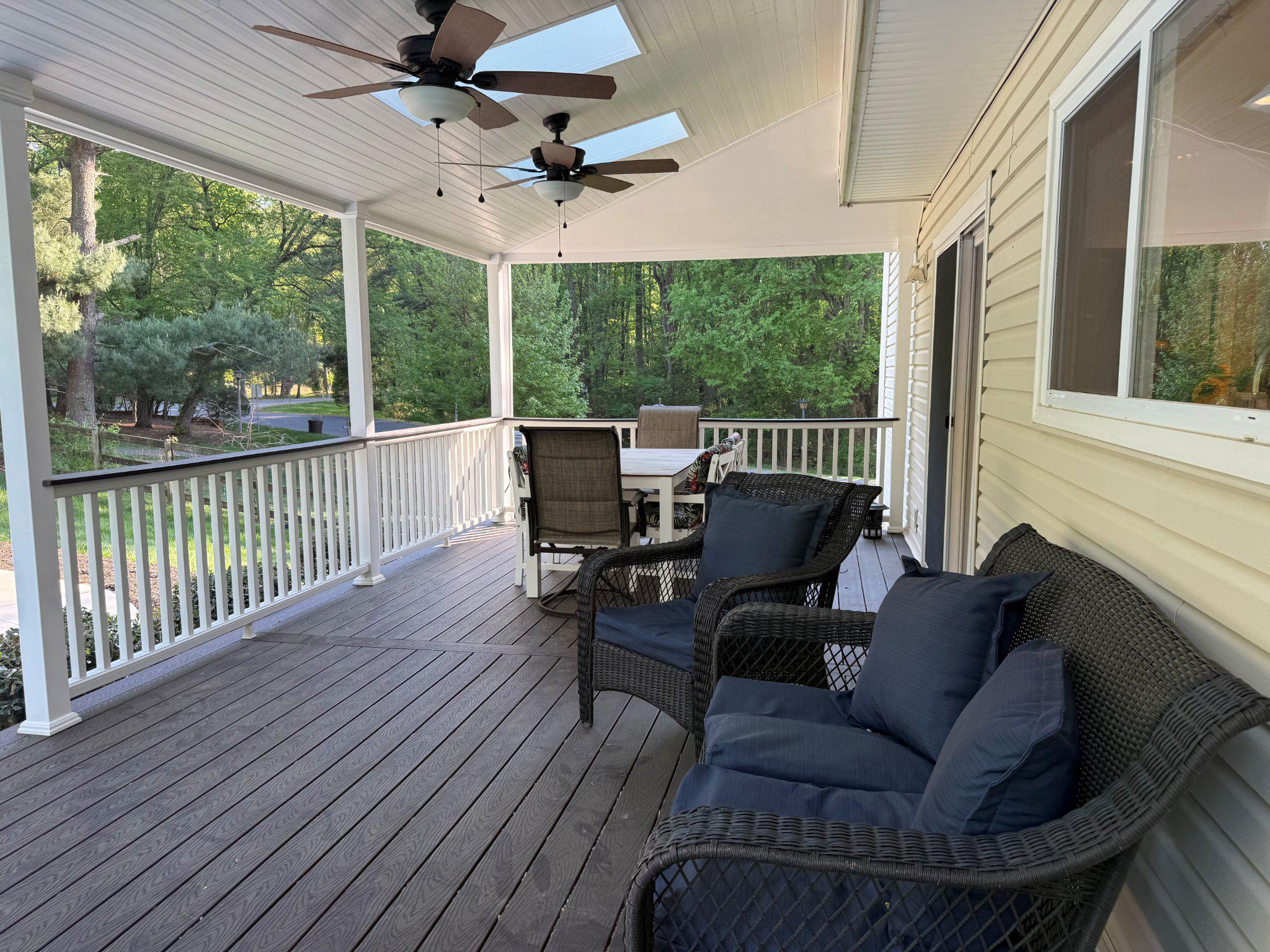 Backing directly to the serene parkland of Mason District Park, this beautifully maintained 3,386 square foot, 3-bedroom, 3.5-bath home offers privacy, views, and versatile living spaces. Two bedrooms and 1.5 baths on the main level, a private primary suite upstairs, and a walk-out lower level with a dedicated prep space make this home ideal for multigenerational living, extended stays, or effortless everyday life.Inside, sunlight fills every room, showcasing hardwood floors and an open, inviting layout. The living room centers on a striking two-sided fireplace, while the kitchen features white cabinetry, stainless steel appliances, Corian countertops, a gas cooktop, double wall ovens, and a sink window that overlooks the backyard. It flows effortlessly into a bright sunroom and family room with skylights and walls of windows framing the surrounding parkland. Step out onto the spacious deck to enjoy the peaceful beauty of nature right beyond your door.Upstairs, the primary suite is a private retreat with vaulted ceilings, a walk-in closet, and an ensuite bath. The fully finished walk-out lower level offers exceptional flexibility, anchored by a spacious recreation room with a fireplace and private entrance. Additional guest rooms, a custom home office with built-ins, a full bath, and a dedicated prep space with granite countertops and GE appliances make it ideal for entertaining or extended living. A utility room with its own entrance and window adds even more versatility, privacy, and storage. Additional highlights include a carport, multi-tiered slate and stone patios and walkways, a tranquil pond, and brick paver accents; all set within thoughtfully designed landscaping featuring mature azaleas, dogwoods, hostas, roses, hydrangeas, and crepe myrtles. The home also offers park-adjacent fencing for added privacy, along with charming architectural details such as skylights and arched hallways. R-2 zoning allows you building potential. Set among mature trees and just minutes from shopping, dining, and commuter routes, this home offers an exceptional opportunity to enjoy space, versatility, and a true connection to nature. Your backyard is Mason District Park, complete with playing fields, natural areas, hiking trails, a playground and tot lot, tennis courts, and an amphitheater.