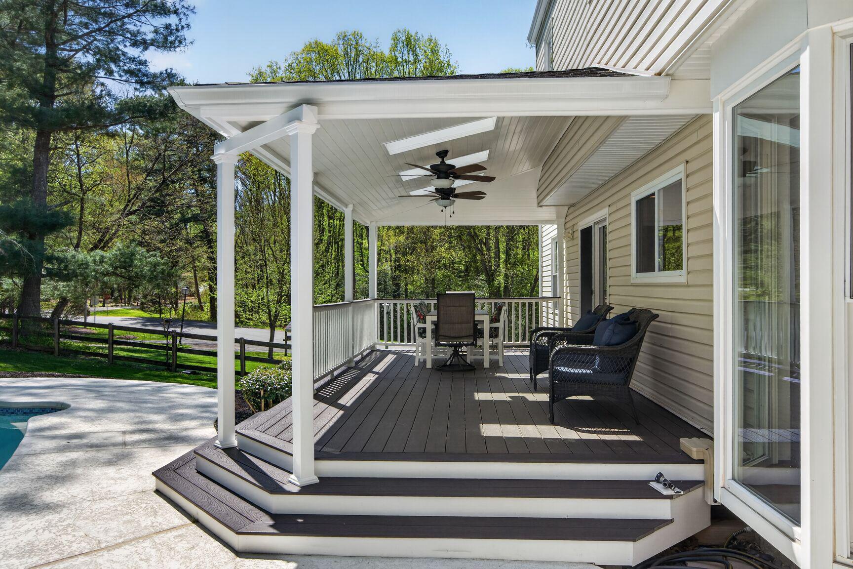 Welcome to this stately Colonial home set on a beautifully maintained lot just minutes from downtown Skippack. Meticulously maintained and thoughtfully upgraded, this home offers a seamless blend of comfort and functionality, with no detail overlooked by the current owners.A grand two-story foyer featuring an elegant curved staircase welcomes you into a well-designed main level with a formal dining room, private home office, wet bar area, and multiple living spaces ideal for gatherings.The gourmet kitchen serves as the heart of the home, showcasing an oversized island with seating, upgraded appliances, abundant cabinetry, and a bright breakfast area.Additional main level highlights include a spacious family room with fireplace and skylights, along with a cozy sitting room. Upstairs, the primary suite offers a private retreat with a double-sided fireplace, sitting area, ensuite bath with double vanity, and generous closet space.Three additional bedrooms include their own ensuite bathrooms, while a fifth bedroom provides flexibility for guests or additional living space. The finished daylight lower level expands the entertaining space with a bar area, bonus room, full bath, and dedicated home gym.Step outside to enjoy the stunning inground pool, complemented by a well-appointed pool house that offers additional space for entertaining or unwinding. Additional features include a 3-car garage and a convenient location within the award winning Souderton School District, just minutes from major roadways, shopping, dining, and local parks.