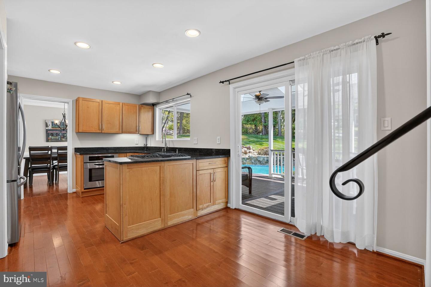 Summer is here and the pool is open! Just bring your bathing suit and try out your own in-ground swimming pool when you come see this home in person! Welcome to Vale Park West and 11715 Lariat Lane a beautifully updated colonial set on a premium acre professionally landscaped lot with a rear Trex covered porch with skylights and ceiling fans which overlooks the stunning swimming pool with water feature. At night, you can light up the pool making this an ideal spot to grill out with friends or dine outside under the stars while others play in the pool. This property delivers the ideal combination of space, comfort, and outdoor living, all in one of Oaktons most desirable neighborhoods. Freshly painted throughout, the home is truly movein ready. Youll appreciate the peace of mind that comes with updated roof, vinyl windows, and vinyl siding, along with the timeless appeal of hardwood floors on both the main and upper levels. The main level offers a bright, spacious family room with a woodburning fireplace and cathedral ceiling, perfect for gatherings or quiet evenings at home. The kitchen is wellappointed with plentiful cabinets, under-cabinet lighting, granite countertops and stainless steel appliances including a gas cooktop, wall oven, dishwasher, and a refrigerator with ice maker. Upstairs, youll find four bedrooms and two full bathrooms. The primary suite includes a huge walkin closet and a renovated bathroom with a standup shower. Three additional bedrooms feature hardwood flooring, fresh paint, and share a beautifully renovated hall bathroom with ceramic tile flooring, a new vanity, and updated plumbing and light fixtures. Theres plenty of room to entertain your dinner guests in the dining room that overlooks the rear yard and pool. The walk-out lower level features brandnew plush neutral carpet, creating a warm and inviting space to relax. A door leads you to the side and rear yard. Hurry to see this home and be sure to bring your bathing suit!