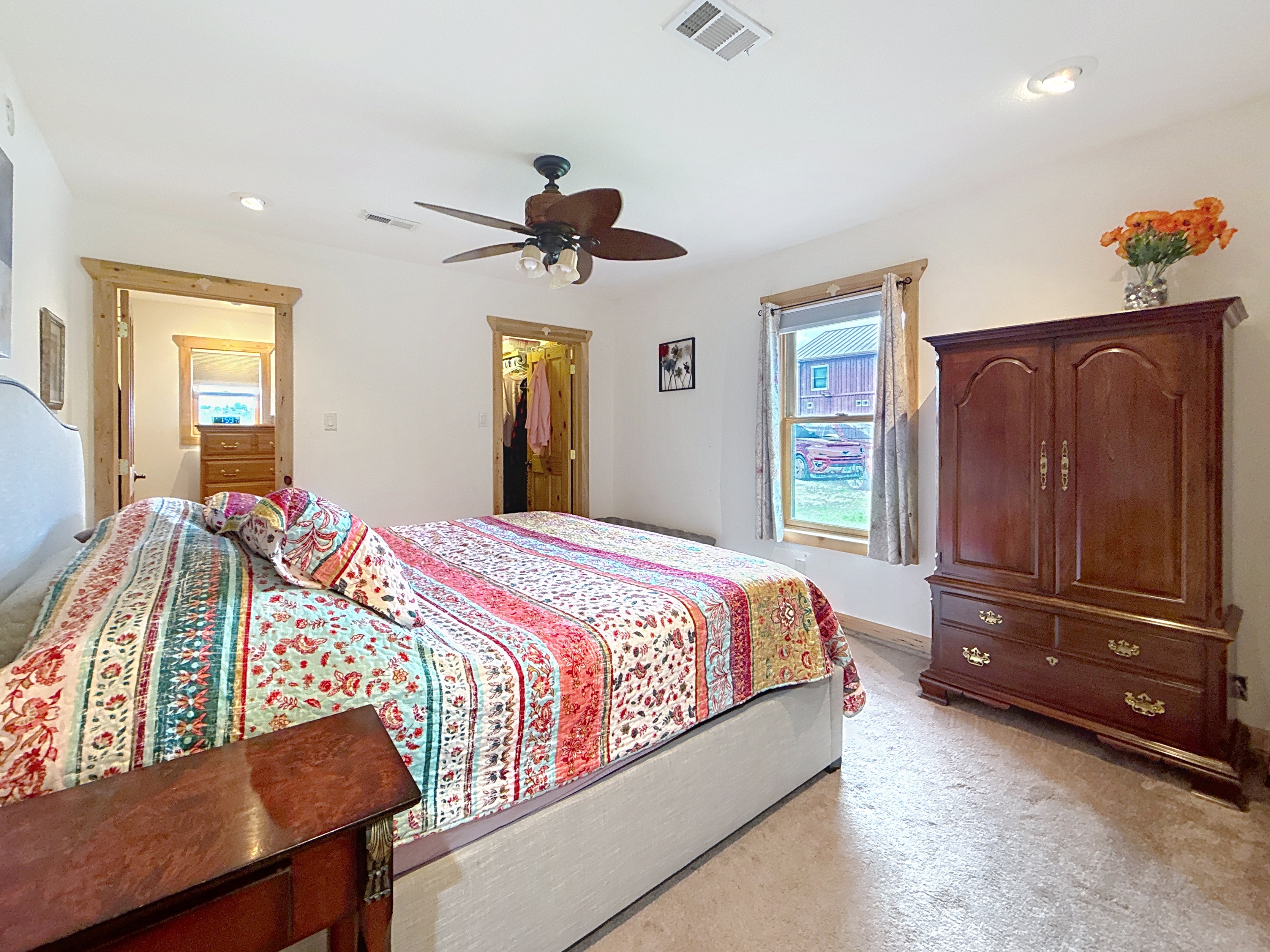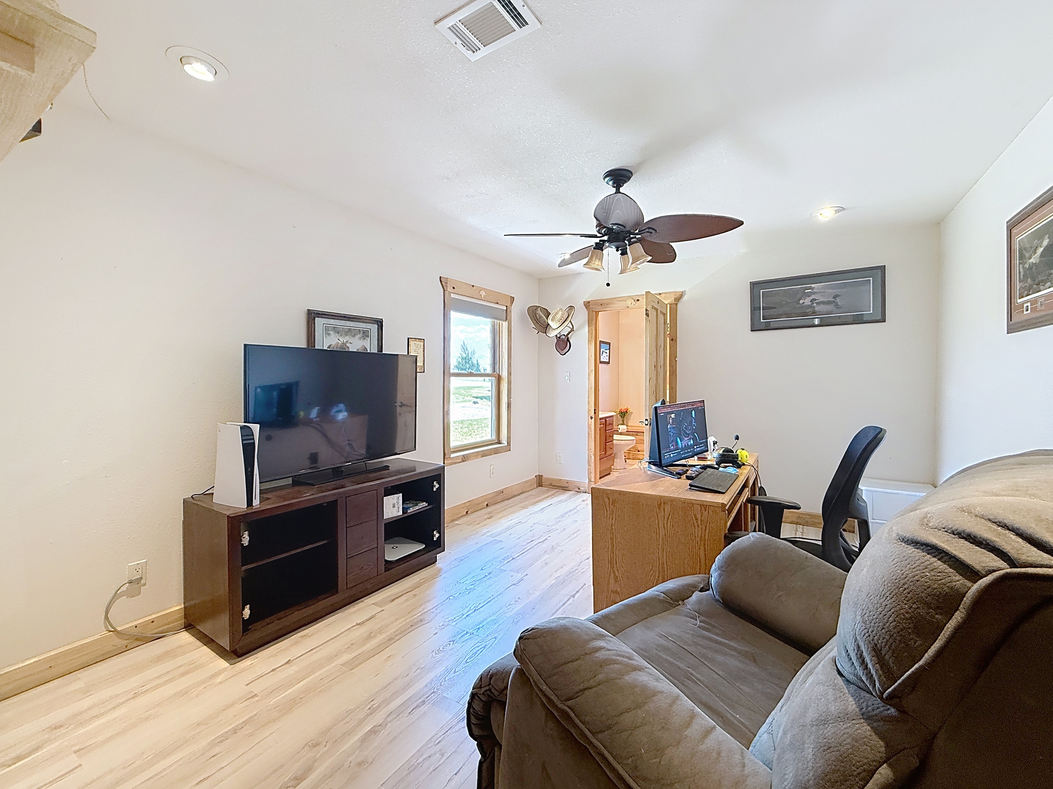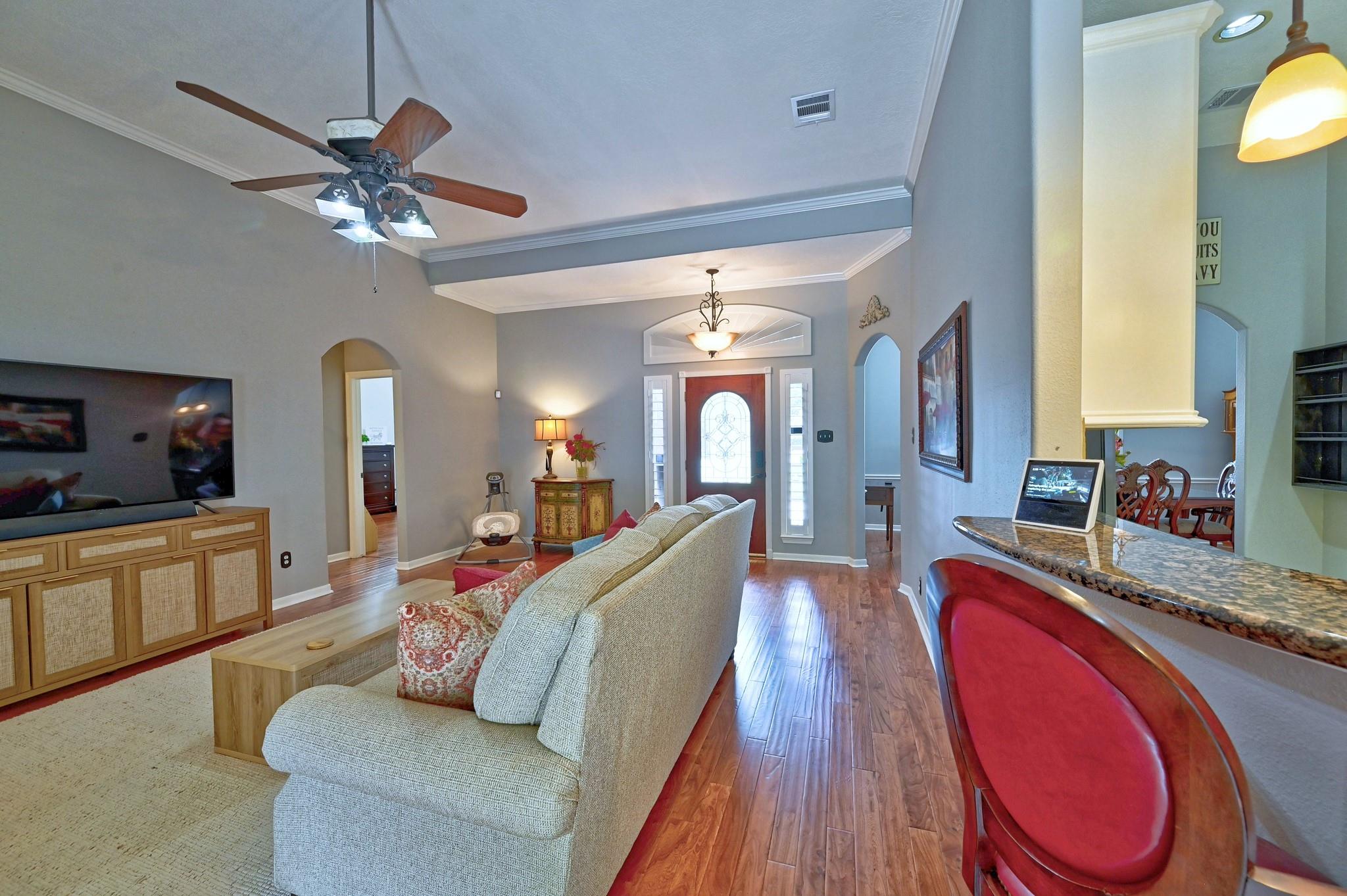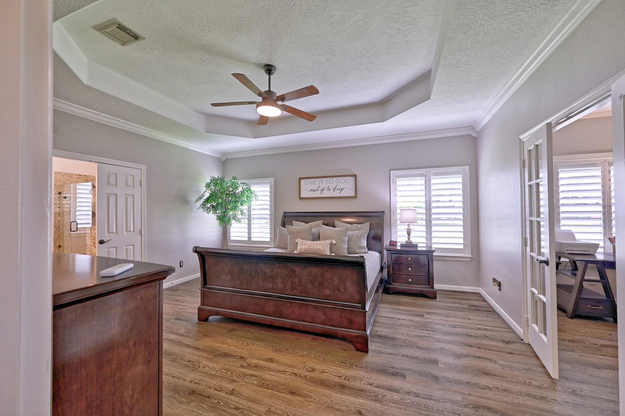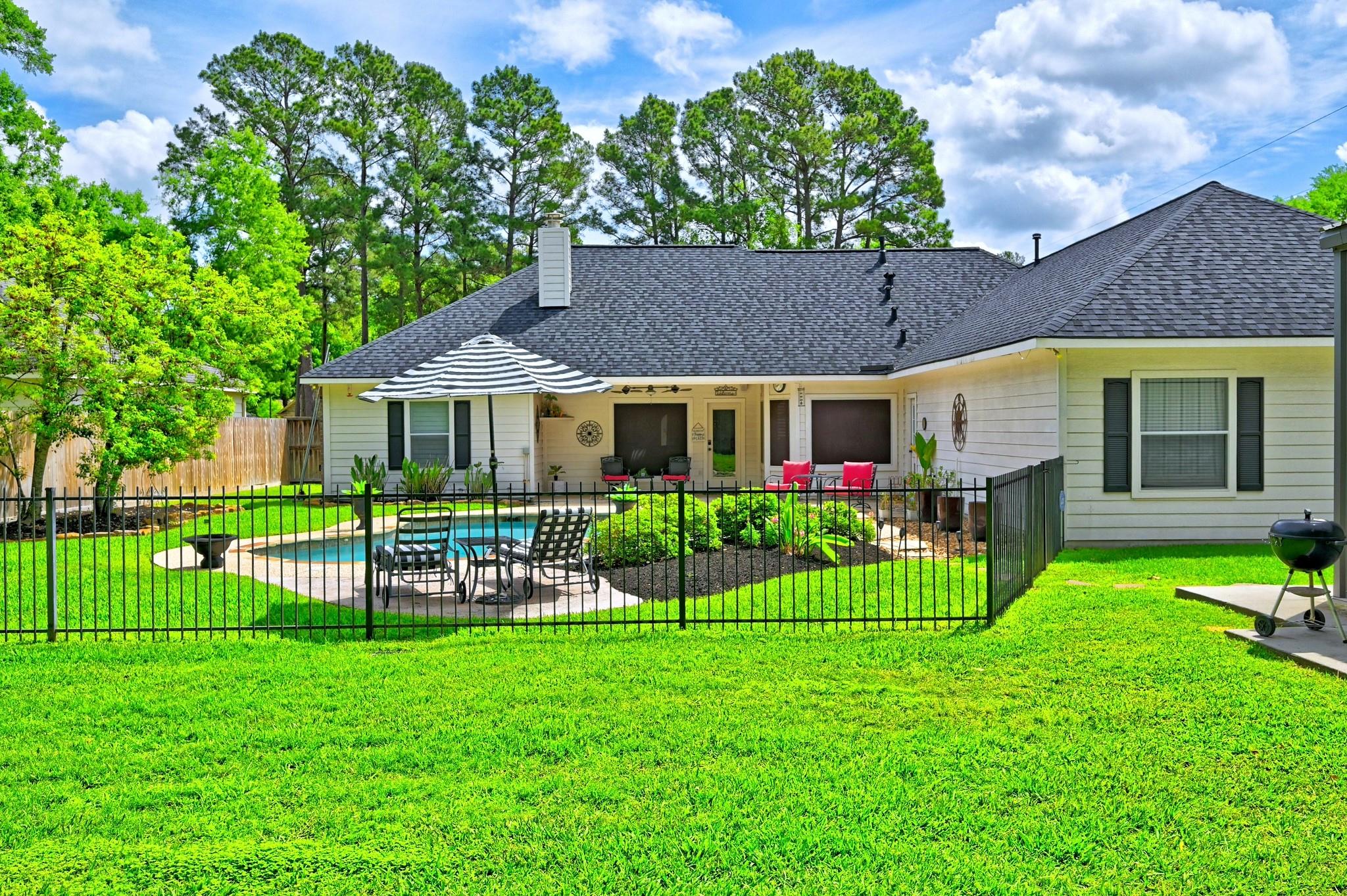 Welcome home to a perfect combination of indoor comfort and outdoor living. This single story, 3 bed, 2.5 bath home boasts modern updates throughout. With a spacious layout and a flowing floorplan, each room offers privacy. The primary suite features a vaulted ceiling, double doors leading to a flex area that could be a home office or nursery.