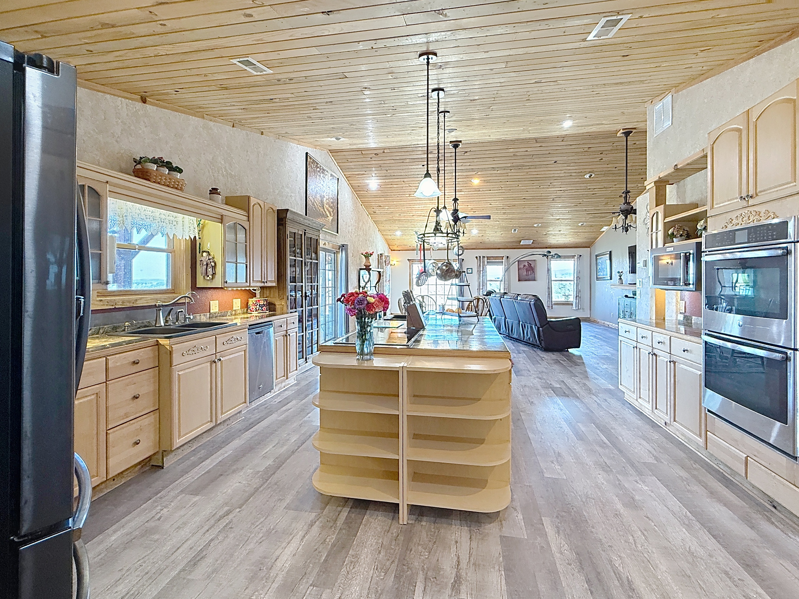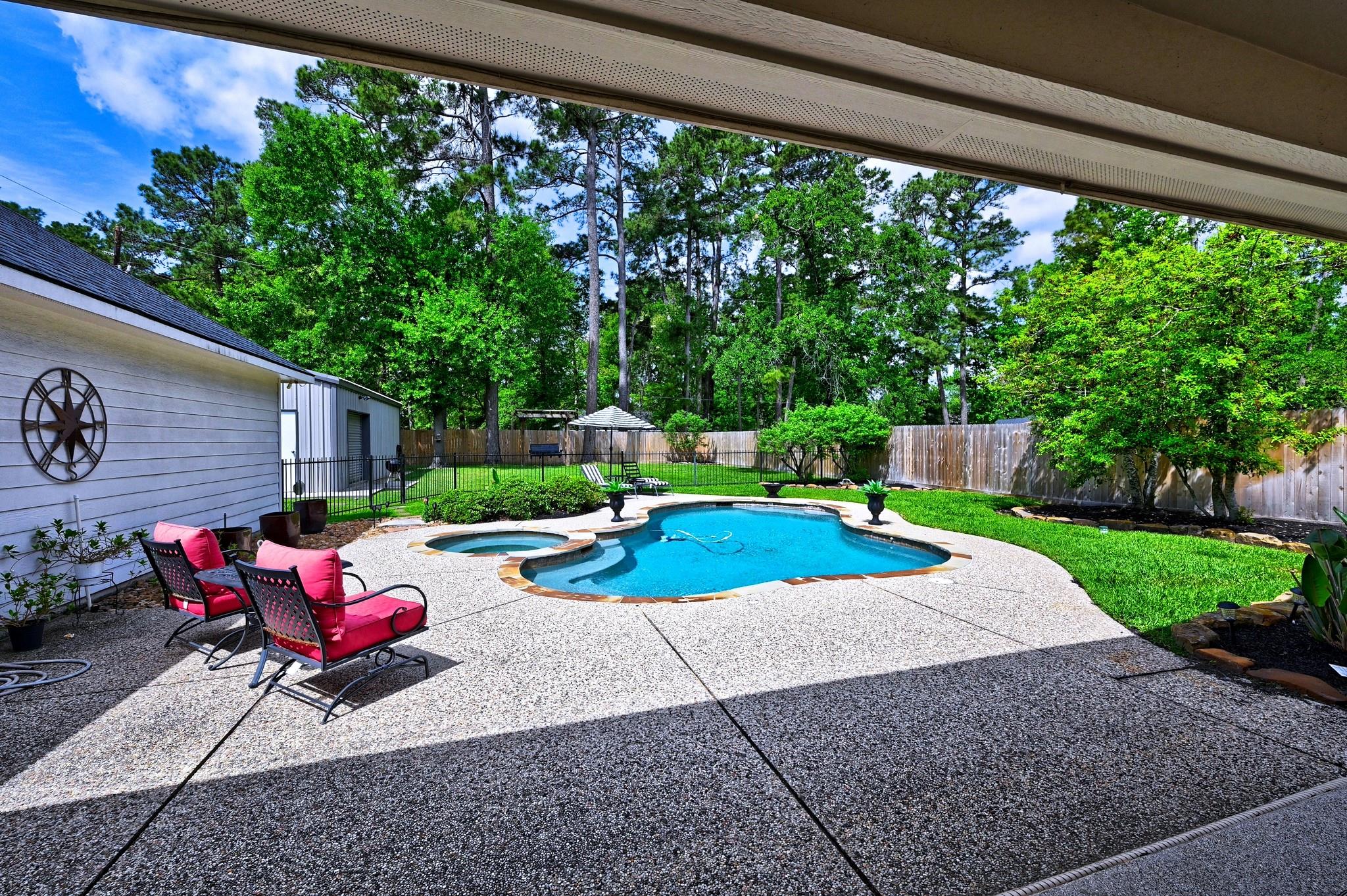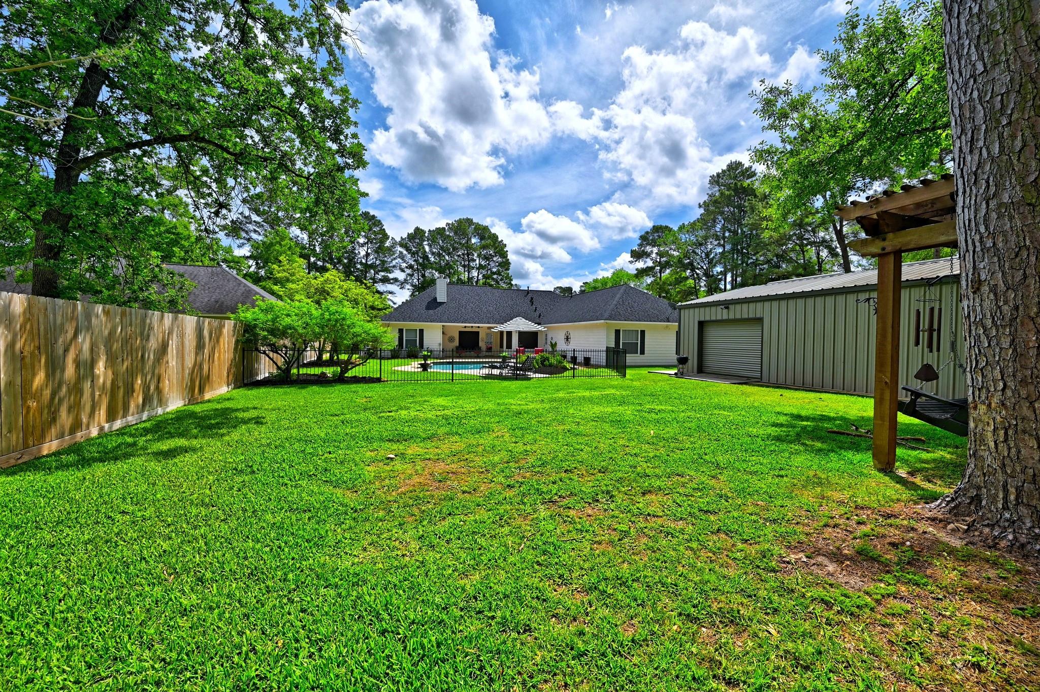 Welcome home to a perfect combination of indoor comfort and outdoor living. This single story, 3 bed, 2.5 bath home boasts modern updates throughout. With a spacious layout and a flowing floorplan, each room offers privacy. The primary suite features a vaulted ceiling, double doors leading to a flex area that could be a home office or nursery. The island kitchen showcases custom cabinetry, granite countertops, and a breakfast area overlooking the pool. Wood flooring and plantation shutters adorn the home. A large laundry room with a half bath is conveniently located near the pool. Situated on a 19,998 sq ft. lot, this immaculate property includes a heated pool, spa, and a 24x36 shop with HVAC for year round comfort. Privacy fenced with iron double gate for easy access to the shop. The three-car garage features insulation and Epoxy shield flooring! Added feature is a circular drive for extra parking! Original owners have maintained this gem well. NO MUD - LOW PROPERTY TAXES