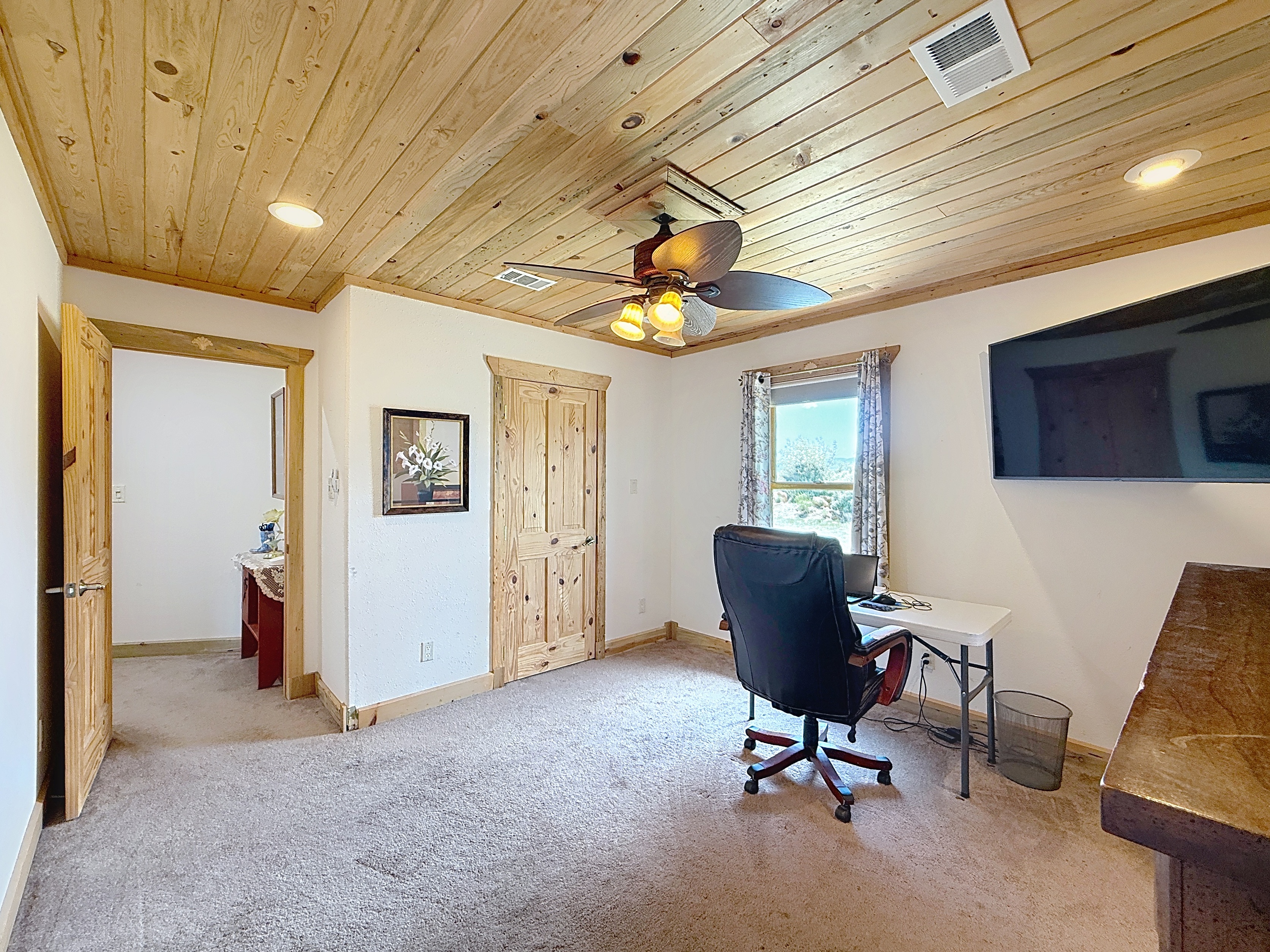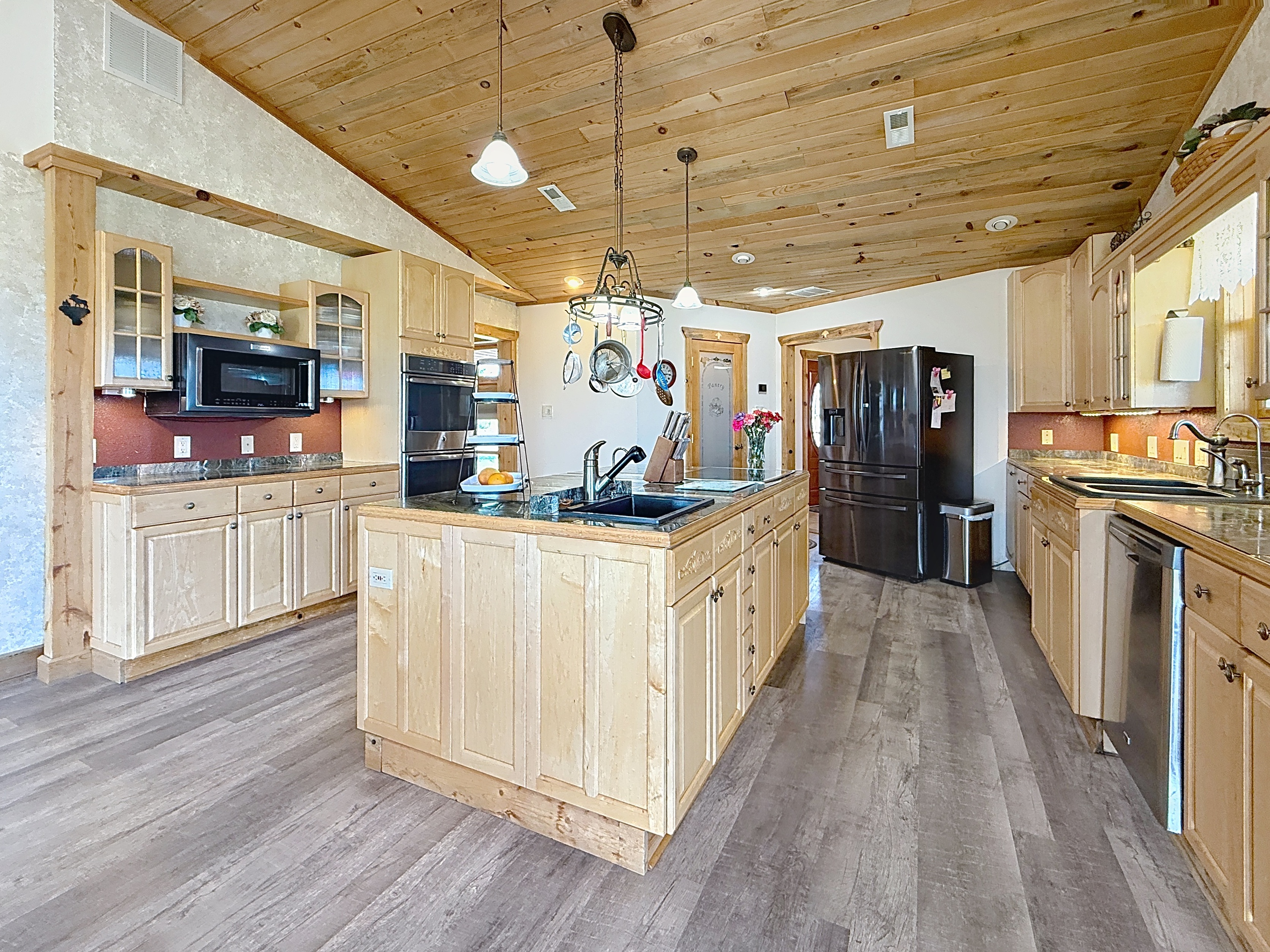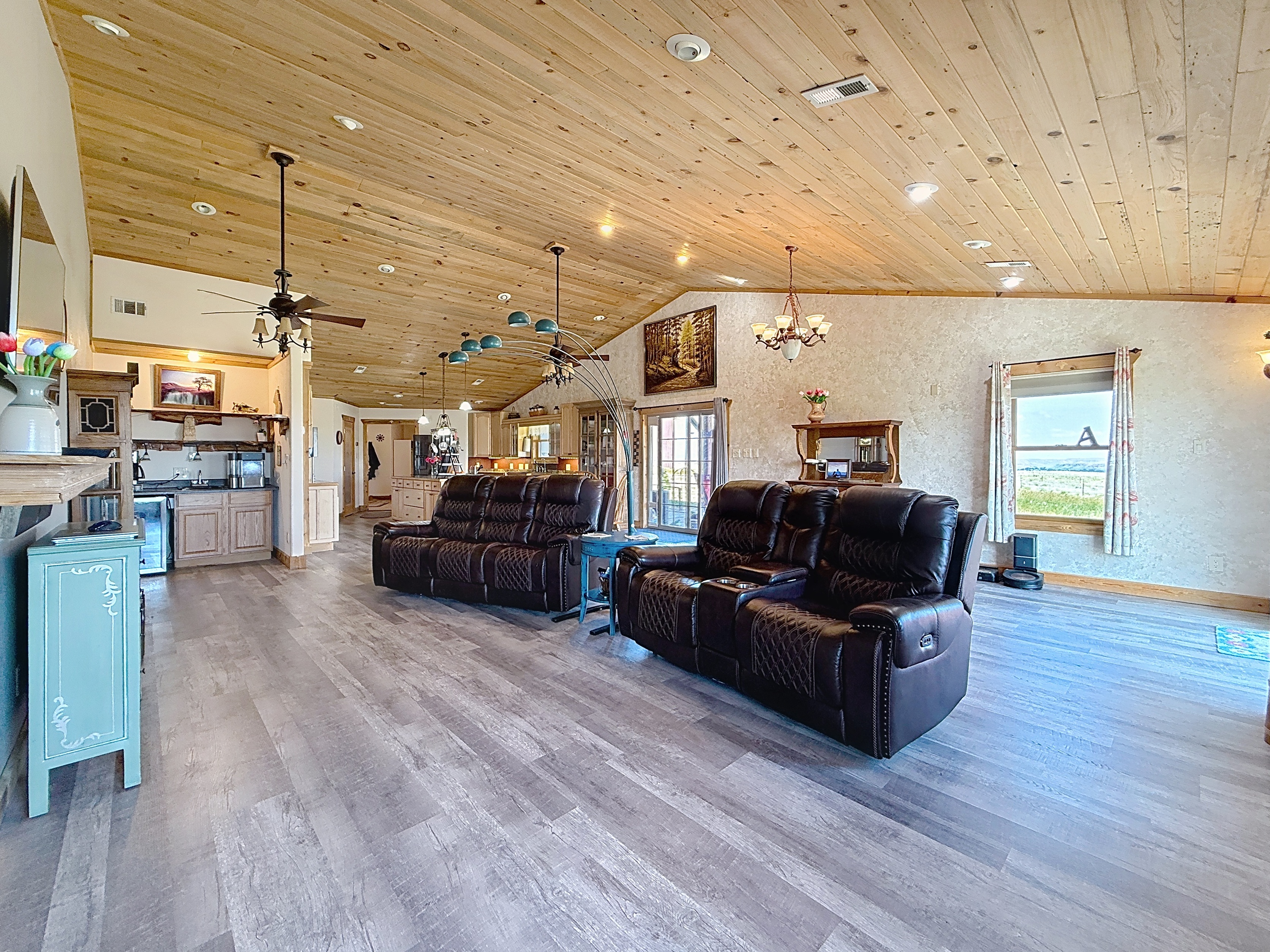Welcome home to a perfect combination of indoor comfort and outdoor living. This single story, 3 bed, 2.5 bath home boasts modern updates throughout. With a spacious layout and a flowing floorplan, each room offers privacy. The primary suite features a vaulted ceiling, double doors leading to a flex area that could be a home office or nursery. The island kitchen showcases custom cabinetry, granite countertops, and a breakfast area overlooking the pool. Wood flooring and plantation shutters adorn the home. A large laundry room with a half bath is conveniently located near the pool. Situated on a 19,998 sq ft. lot, this immaculate property includes a heated pool, spa, and a 24x36 shop with HVAC for year round comfort. Privacy fenced with iron double gate for easy access to the shop. The three-car garage features insulation and Epoxy shield flooring! Added feature is a circular drive for extra parking! Original owners have maintained this gem well. NO MUD - LOW PROPERTY TAXES
