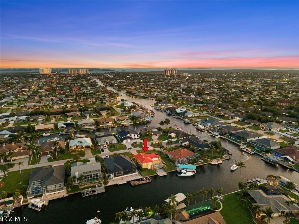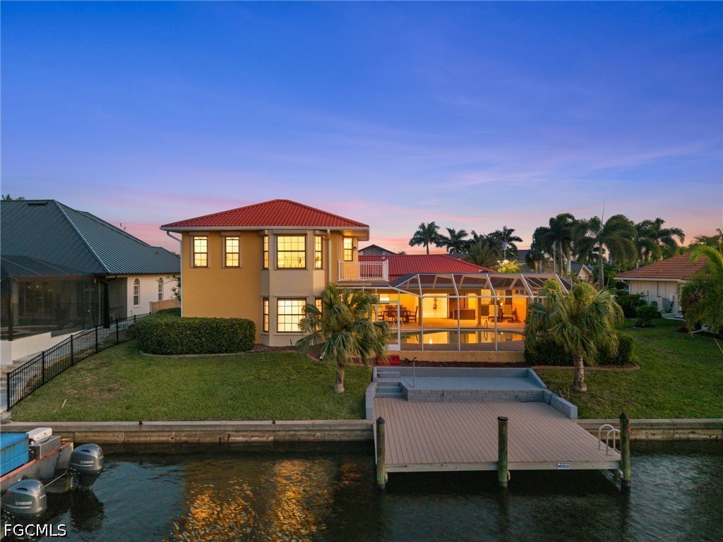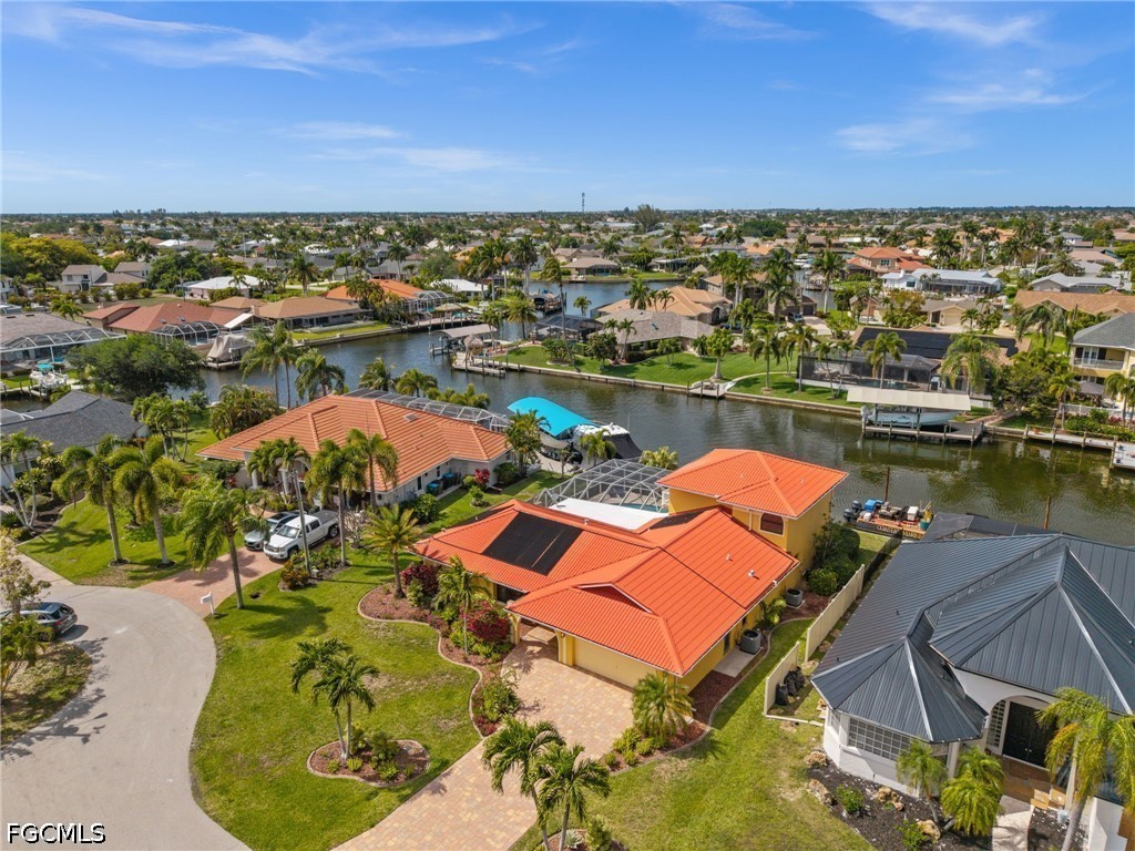 JUST A SHORT BOAT RIDE AND NO BRIDGES TO OPEN WATER!DIRECT GULF ACCESS, 2-STORY HOME WITH 2 PRIMARY SUITES, POOL, AND 125-FOOT WIDE CANAL VIEWS! Welcome to 1223 SW 51st St in the sought-after Unit 64 area of SW Cape Coral. This 4-bedroom den, 3 bath, 2-story waterfront home offers 2,856 square feet, a DIRECT DEEP WATER SAILBOAT ACCESS location, and one of the boating setups serious boaters are looking for. Situated on the Finn Canal, a 125-foot-wide canal off the Gloriana Canal, this home offers NO BRIDGES and NO LOCKS, with quick access out to the Caloosahatchee and on toward the Gulf, beaches, Cape Harbour, Tarpon Point, and more. The cul-de-sac location adds to the appeal, while the wide canal views, mature neighborhood, and established lot give this property a setting that is hard to duplicate. The homeowners also note a major recent investment in the outdoor waterfront living, including lanai pavers, pool tile and surfacing, balcony work, and an expansion-ready dock.Inside, the layout is flexible and spacious, with two separate living areas, a bright open kitchen, indoor and outdoor dining flow, and a den that works well as an office, bonus room, or extra gathering space. One of the standout features is the TWO PRIMARY SUITES, one downstairs and one upstairs, making the home especially appealing for multigenerational living, guests, or buyers who want extra privacy. The upstairs primary suite occupies the second floor and includes its own waterfront sitting area and private balcony, while the downstairs primary suite offers convenient access to the pool area. The guest bedrooms are generously sized, and the guest bath doubles as a pool bath with a large soaking tub.The kitchen and interior finishes were updated with the kind of improvements buyers will notice, including custom soft-close cabinetry, quartz countertops, updated appliances, and tile flooring that fits the Florida boating and pool lifestyle well. Major system and feature updates include a metal roof, 2 complete A/C systems, updated electrical panel, water heater, impact-resistant windows in key areas, custom shutters, new interior and exterior paint, remodeled baths, LVP flooring upstairs and on the stairs, epoxy garage floor, and more. The pool is solar heated and has an above-average size and depth, with an approximately 6-foot deep end. The property is also wired for fiber internet. If boating, poolside living, and a prime Southwest Cape Coral location are on your list, you need to see this home!