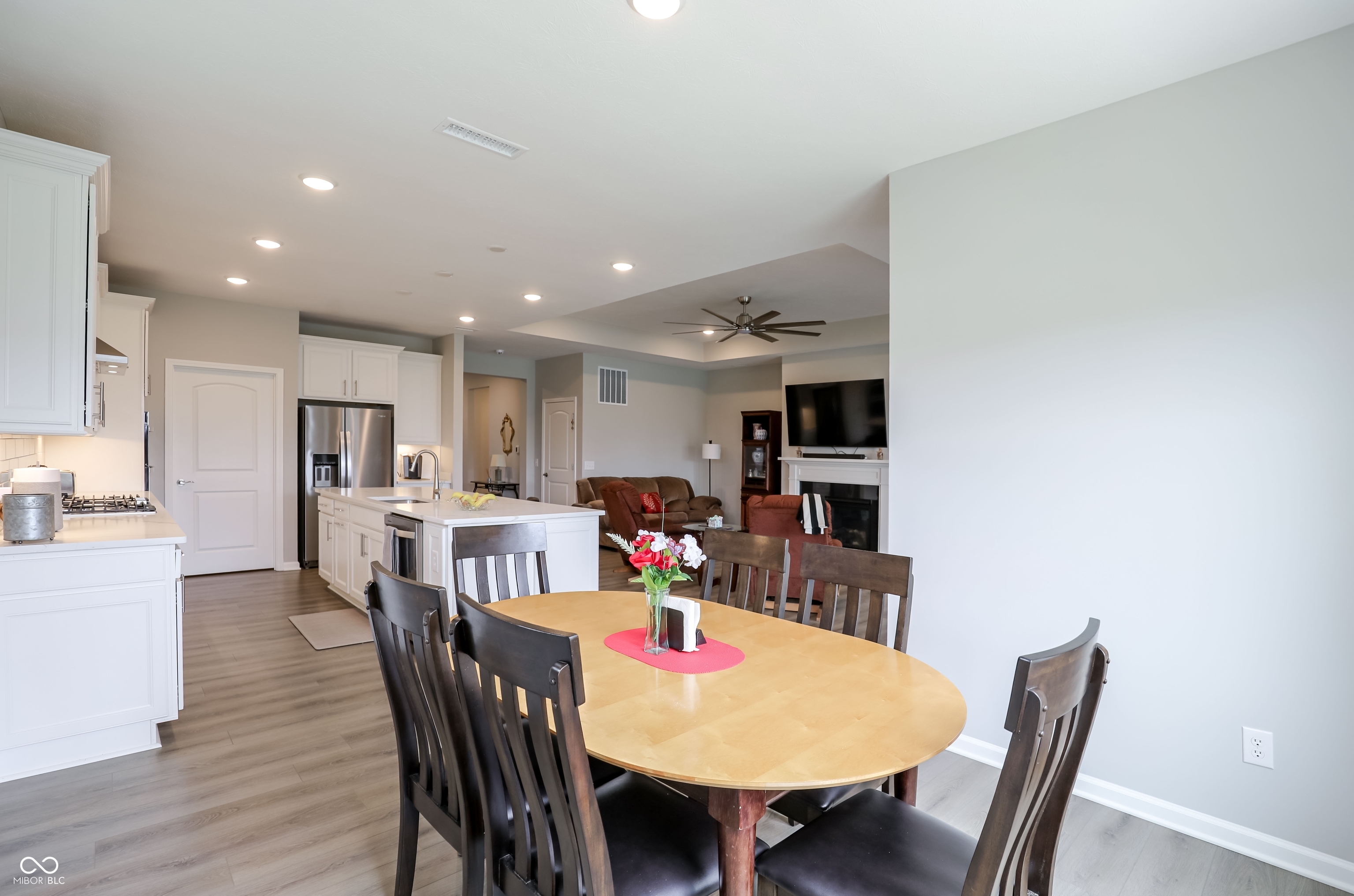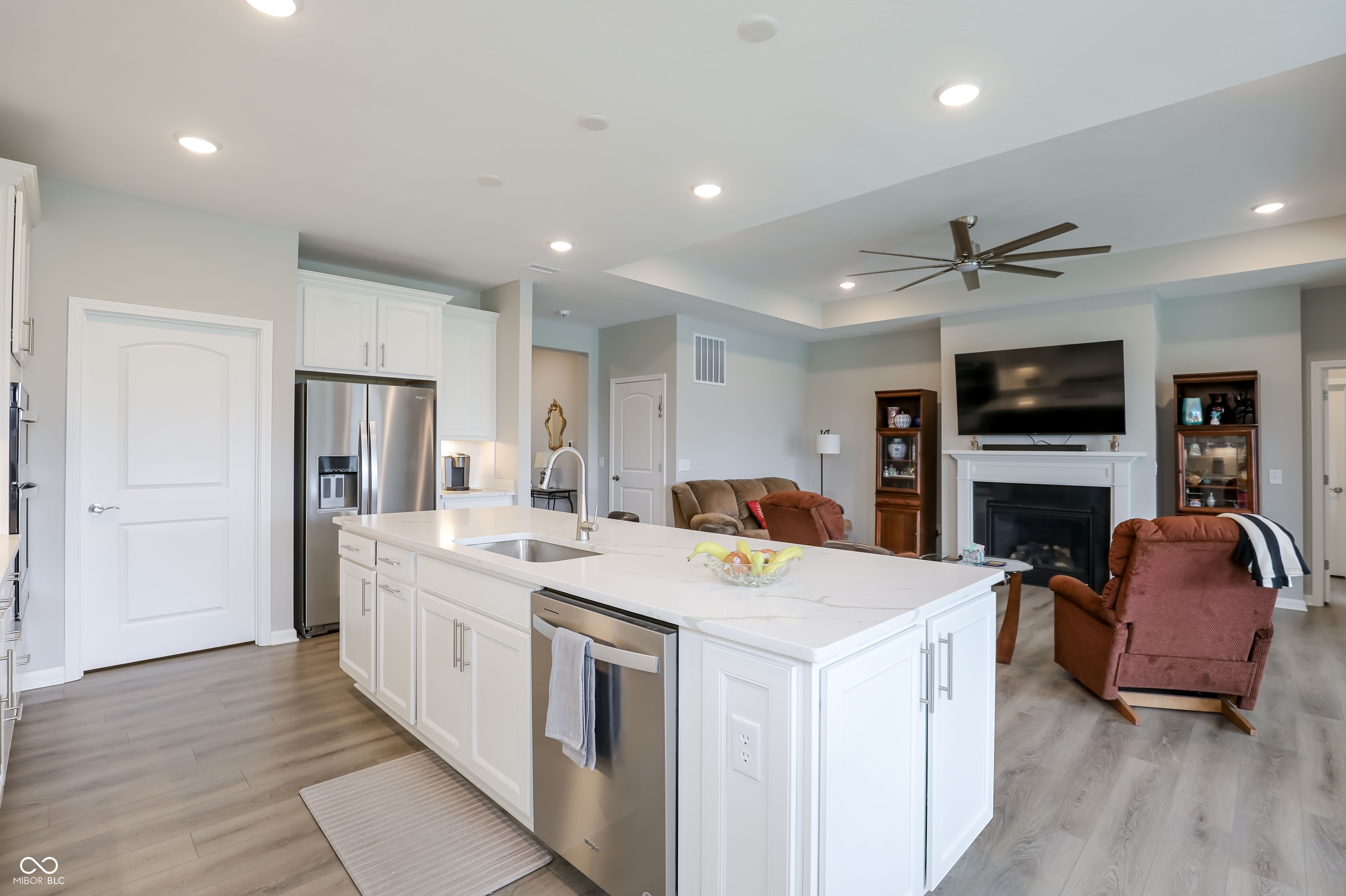 Welcome to this 3 bedroom 2.5 bath nearly new luxury home in a highly sought-after 55 community that offers the perfect blend of modern design, low-maintenance comfort, and resort-style amenities. This beautifully maintained single-story Prestige floor plan showcases an open-concept layout designed for both everyday living and entertaining. Luxury vinyl plank flooring flows throughout the home, leading you into a spacious great room featuring a cozy fireplace that seamlessly connects to the gourmet kitchen. Here, you'll find 42 cabinetry, quartz countertops, stainless steel appliances, a stylish subway tile backsplash, under-cabinet lighting, and a generous walk-in pantry. The adjoining dining area and sunroom are filled with natural light and provide serene views of the backyard pond-creating a peaceful retreat right at home. Step outside to your private patio and enjoy tranquil mornings or relaxing evenings overlooking the water. The private owner's suite is thoughtfully tucked away and features a spacious walk-in closet and a spa-like ensuite bath complete with dual vanities and a large custom-tiled walk-in shower. Additional highlights include a convenient laundry room with utility sink, a powder bath for guests, and a finished 2-car attached garage. Kimblewick delivers an unmatched lifestyle with a stunning 13,000 sq. ft. clubhouse, indoor and outdoor pools, state-of-the-art fitness center, pickleball and tennis courts, bocce ball, walking trails, and even a golf simulator. A full-time Lifestyle Director curates a vibrant calendar of clubs, social events, and activities, making it easy to stay active, connected, and engaged. Enjoy peaceful green spaces, community gathering areas, and scenic surroundings that make every day feel like a getaway. This is more than a home-it's a lifestyle.