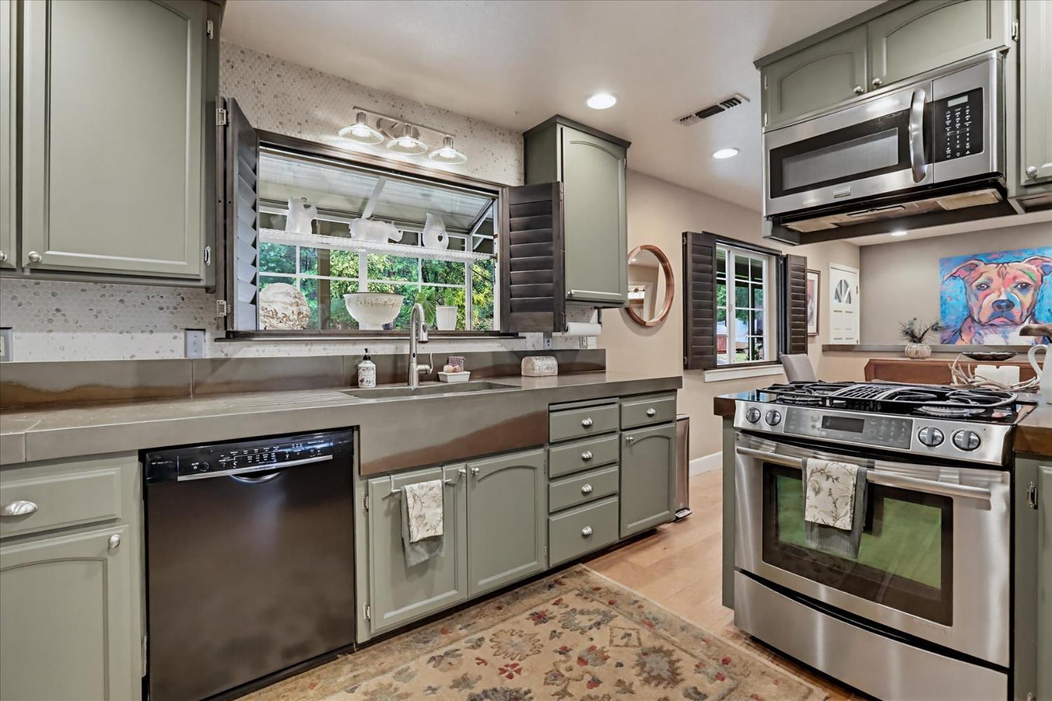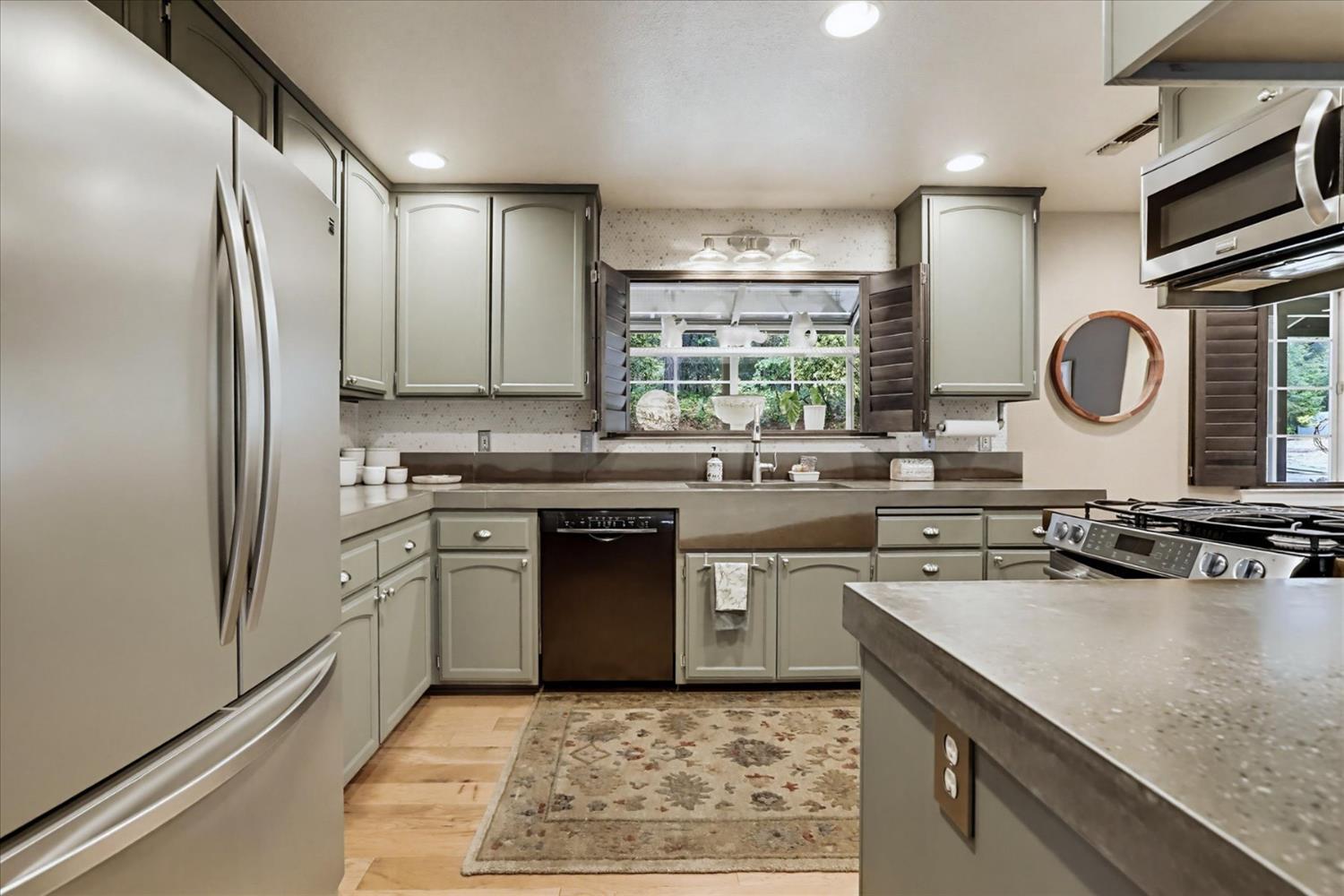 CHARM, CHARM CHARM!!! Impeccable and sunny one story home on a beautiful level 1.13 acre parcel accessed by a delightful paved country driveway! Privacy and beautiful solar exposure dances around this farm style home with a full wrap around porch to enjoy the great outdoors! Formal entry leads you into the lovely great room with a fantastic open floor plan from the living room to the generous cooks kitchen with stainless appliances, concrete counters and vaulted ceilings. Easy access to the outside deck for summer BBQs! The three bedrooms are generous including the romantic master suite and the smells and sounds of the wind through the Cedars will lift your heart! Oversized detached two car garage, lots of RV or boat parking and a large flat area ready for an ADU, large shop or a huge garden! Unfinished basement has loads of possibilities. Great internet, strong well and fully remodeled and ready to move in! You will be absolutely delighted the minute you drive up and relax!!