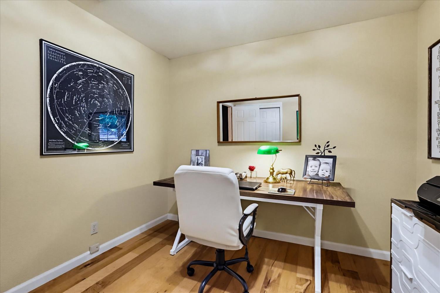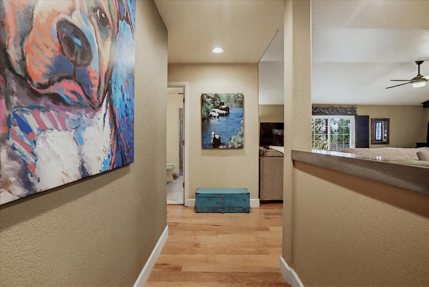Welcome to 1619 Croton Street, a stunning Spanish Mediterranean two-story nestled in one of Beaumonts most desirable neighborhoods. The warm stucco facade, clay tile roof, and charming covered front porch create a welcoming first impression that carries all the way through the front door. Step inside to a soaring two-story entry foyer bathed in natural light from transom windows above the elegant staircase. The main level is designed for the way families actually live, flowing seamlessly between a formal living room and a generous open-concept family room, giving everyone room to gather or find a quiet corner. Crown molding and recessed lighting add polished finishing touches throughout. The chef-worthy kitchen is the true heart of the home. A large granite island with seating for four anchors the space, surrounded by gleaming white cabinetry, subway tile backsplash, stainless steel appliances, including a built-in double oven and refrigerator, and pendant lighting that sets the perfect mood. The dining area sits just beyond, with sliding glass doors opening directly to the covered back patio for effortless indoor-outdoor entertaining. A dedicated home office, a full bathroom, and a comfortable bedroom on the main floor make this layout exceptionally versatile, perfect for guests, in-laws, or a quiet work-from-home setup. Upstairs, a spacious loft offers endless possibilities as a media room, playroom, study space, or second family room. The primary suite is a true retreat. A private balcony frames breathtaking mountain and valley views, while the spa-inspired en-suite features dual vanities with a dedicated makeup station, a deep-soaking tub, a glass-enclosed shower, and generous storage. Three additional well-sized bedrooms with scenic views and plush carpet share two full bathrooms, each with dual sinks and clean white finishes. Thoughtful upgrades include a whole-home water softener, leased solar panels to reduce utility costs, and an epoxy-finished garage floor. The covered front porch and back patio make outdoor living a year-round pleasure under the beautiful skies of the Inland Empire. The HOA offers an impressive lineup of resort-style amenities, including three pools, three spas, two BBQ areas, a playground, a basketball court, and a bocce court. With this much to enjoy just steps from home, every day feels like a getaway. Conveniently located minutes from top-rated schools, shopping, dining, and the I-10 freeway.