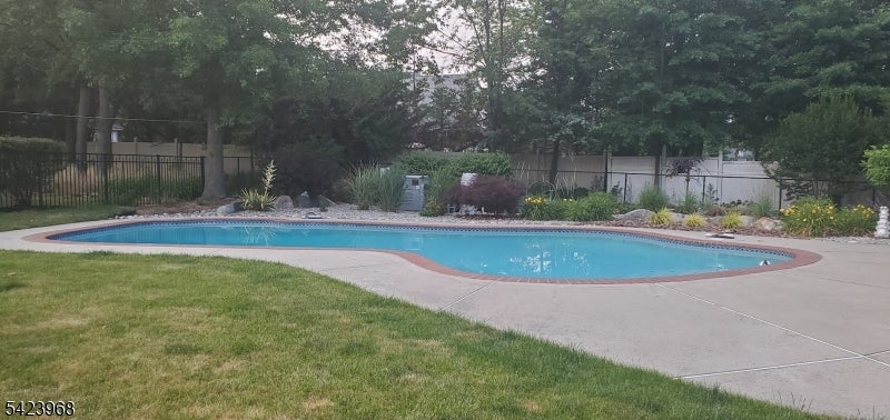 Custom-built Colonial set on a large lot featuring 5 bedrooms and 3 full baths. This home offers a functional layout with a dual staircase, conservatory, and first-floor bedroom or office with a full bath. The main level includes wood flooring and a spacious kitchen equipped with a built-in convection microwave, double stainless steel sinks, and a pantry closet. Crown molding in dining room, living room, & 1st fl. bedroom/office. Custom blinds in conservatory and primary bath. The primary bedroom suite includes a sitting room, a large walk-in closet, and a bathroom with a soaking tub. Additional features include a 3-car garage, two-zone heating and central air conditioning, and an HVAC system replaced in 2025. 2 picture windows and the foyer window was replaced in 2023 and include a transferable warranty. The outdoor space includes a Trex deck that was recently replaced, a heated saltwater in-ground concrete pool with replaced pool cover, a wrought iron fence on three sides, sprinkler system in the front and back, Jacuzzi pad and electrical hook-up, covered vegetable garden, and a dedicated flower/wildlife garden area. Family room wood burning fireplace as is no know issues. Contingent on seller relocating.