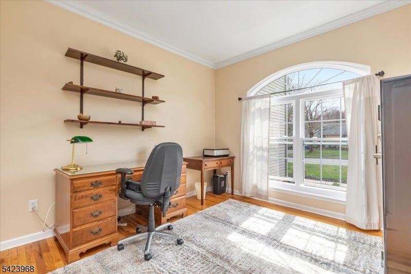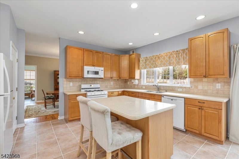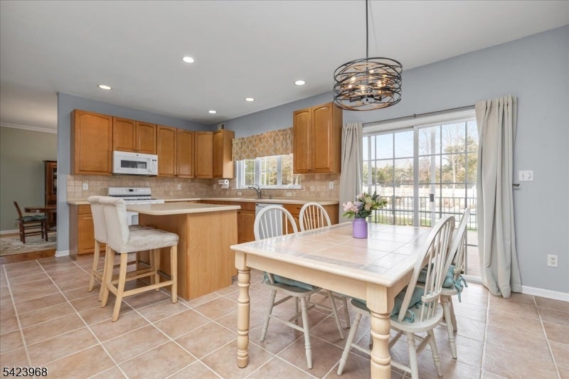 Custom-built Colonial set on a large lot featuring 5 bedrooms and 3 full baths. This home offers a functional layout with a dual staircase, conservatory, and first-floor bedroom or office with a full bath. The main level includes wood flooring and a spacious kitchen equipped with a built-in convection microwave, double stainless steel sinks, and a pantry closet.