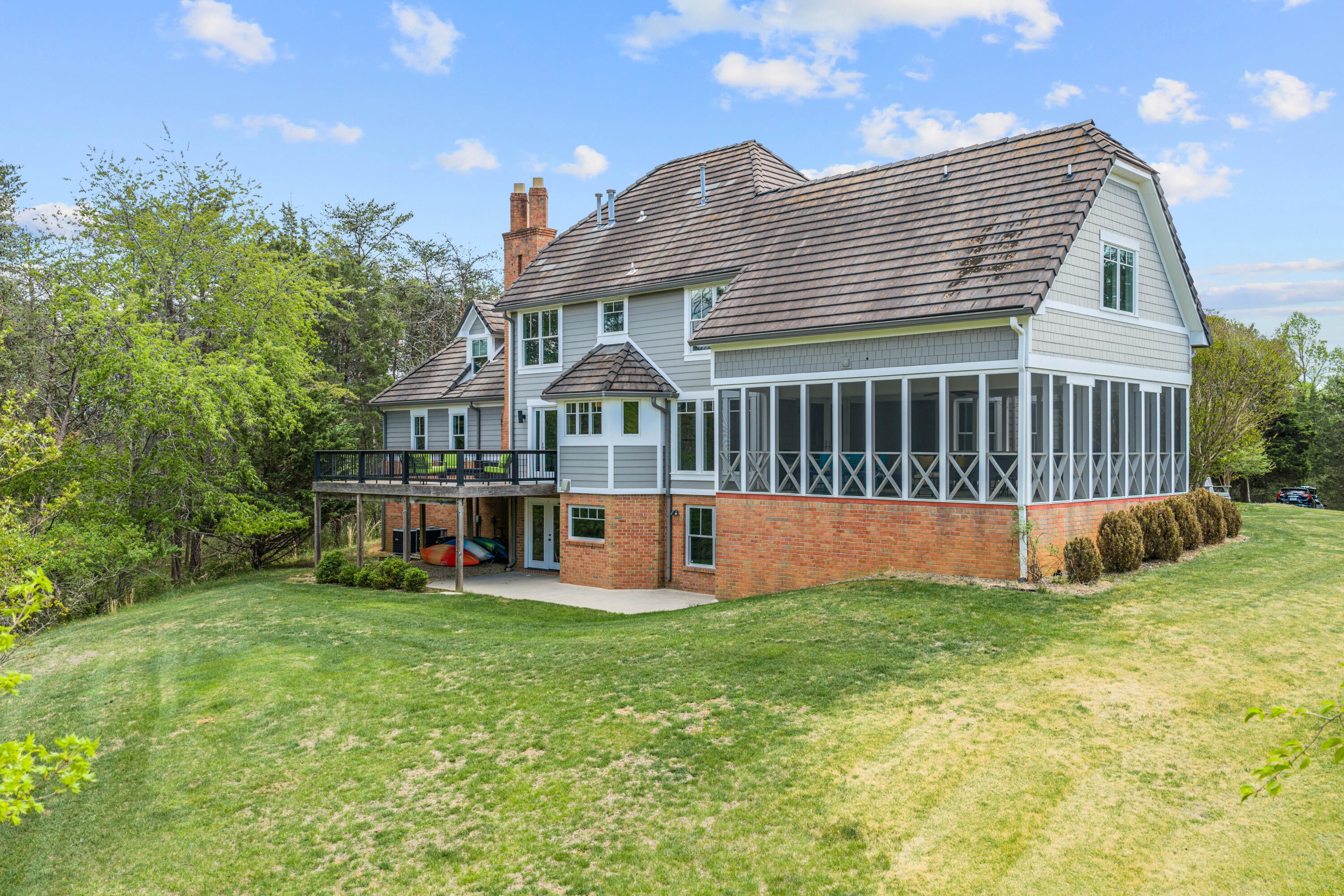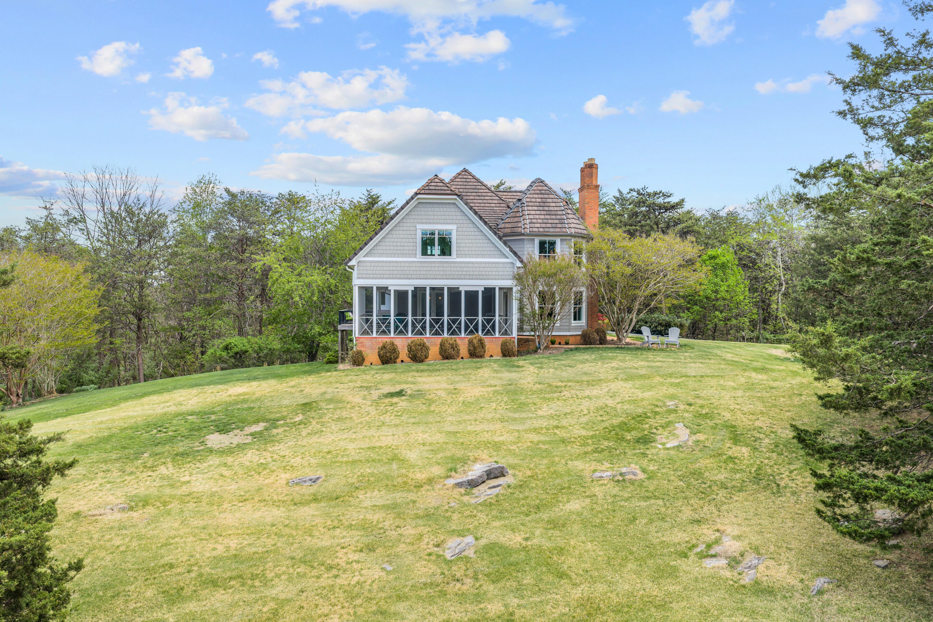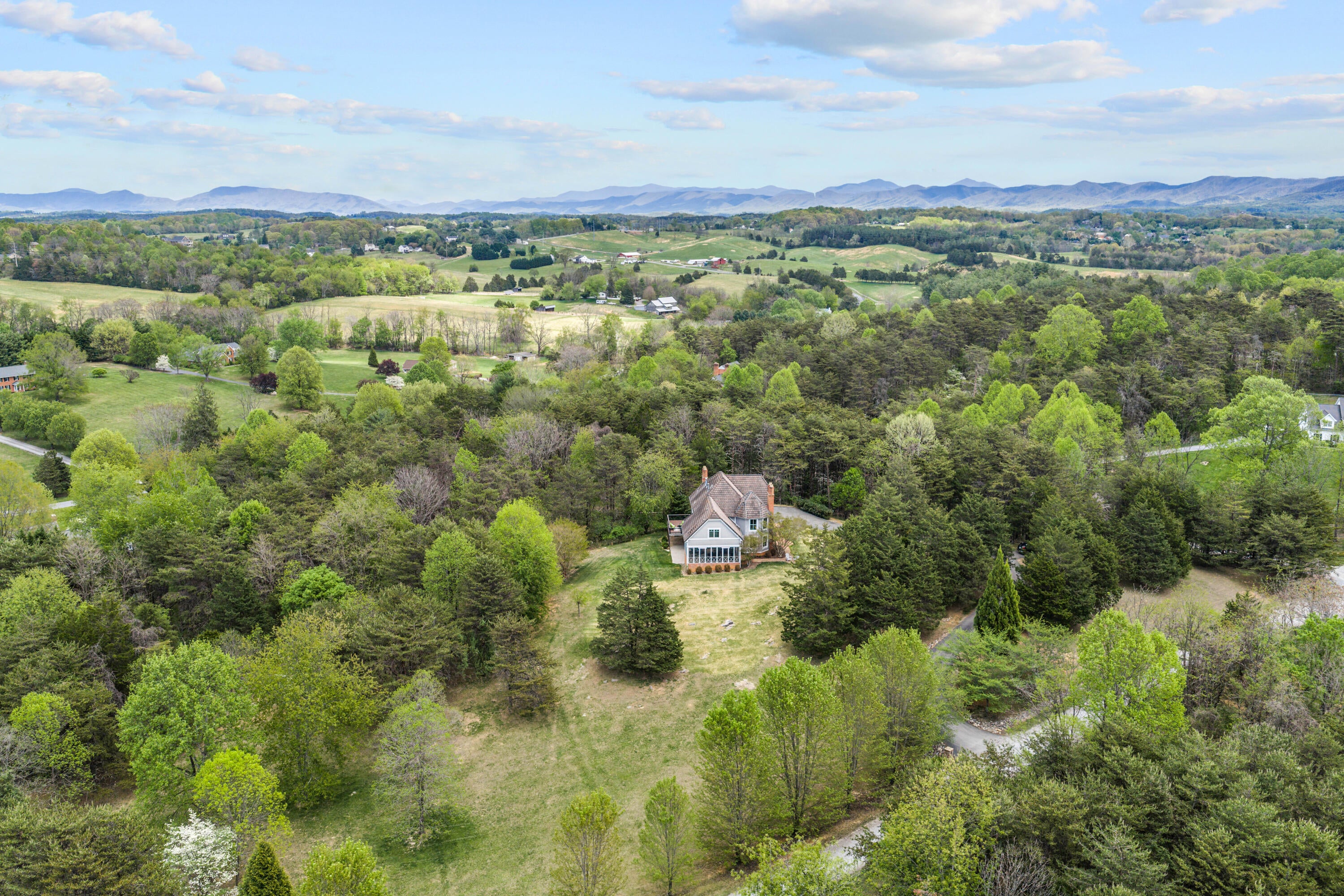 Exceptional estate on 6 private acres in one of Botetourts finest cul-de-sac neighborhoods, zoned for Greenfield, Central Academy, and Lord Botetourt. A dramatic two-story foyer with curved staircase welcomes you into a thoughtfully updated home featuring a renovated gourmet kitchen with induction cooktop, walk-in pantry, and full-size freezer. Four fireplaces, hardwood floors, and fresh paint throughout. Turret-style primary suite with updated spa bath and soaking tub views. Expansive screened porch, two-tier deck, and walkout basement patio create incredible indoor-outdoor living. Lifetime cement roof, fiber internet, and room to grow in the unfinished basement.