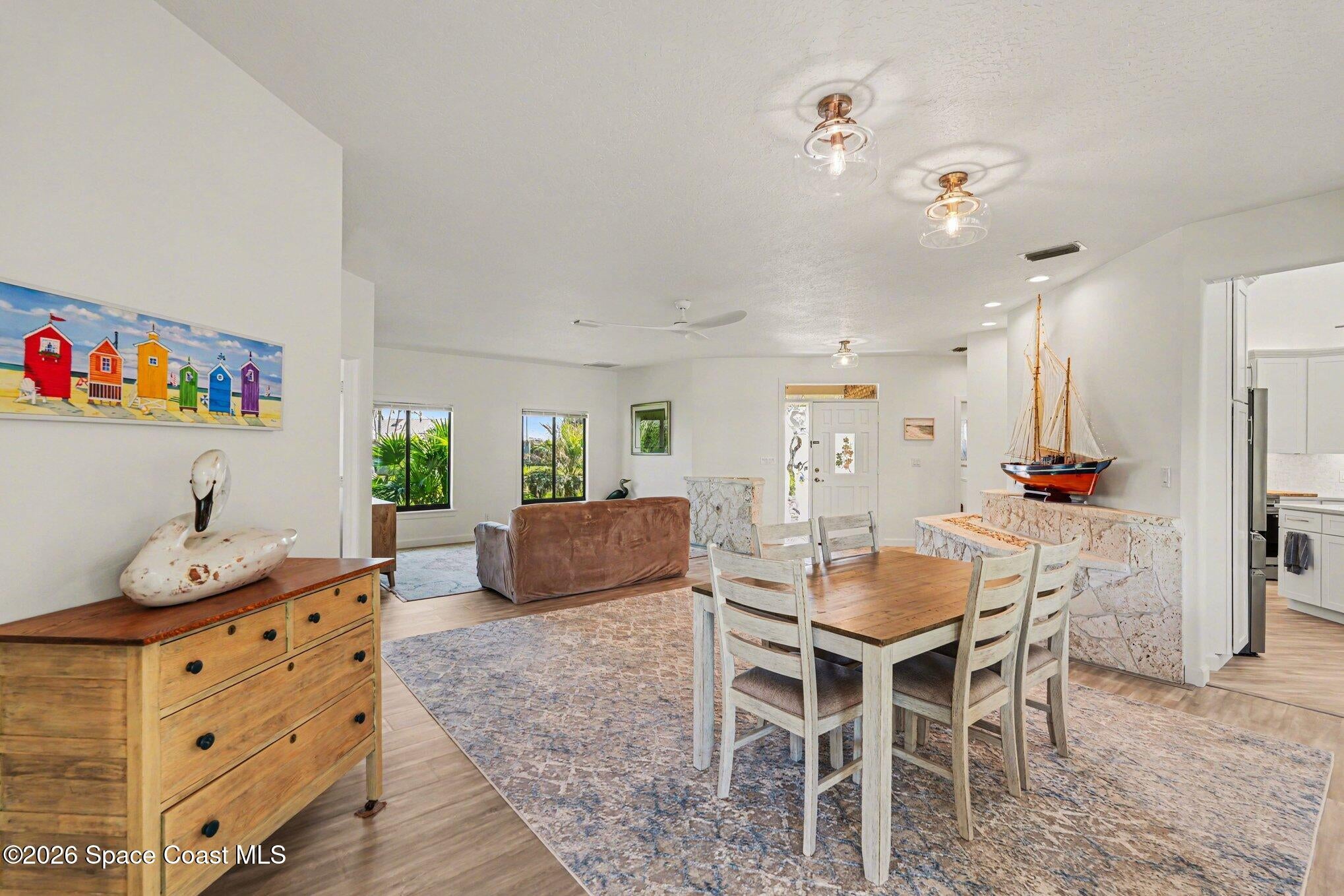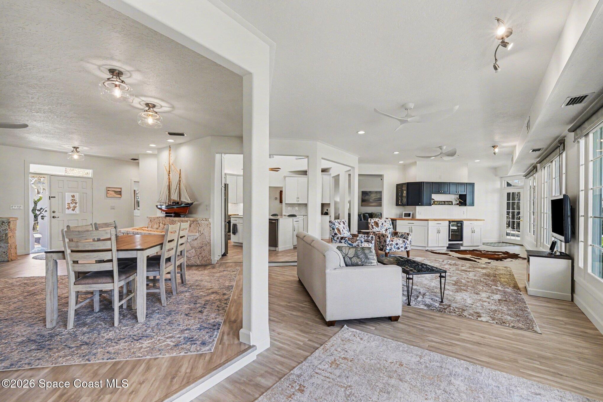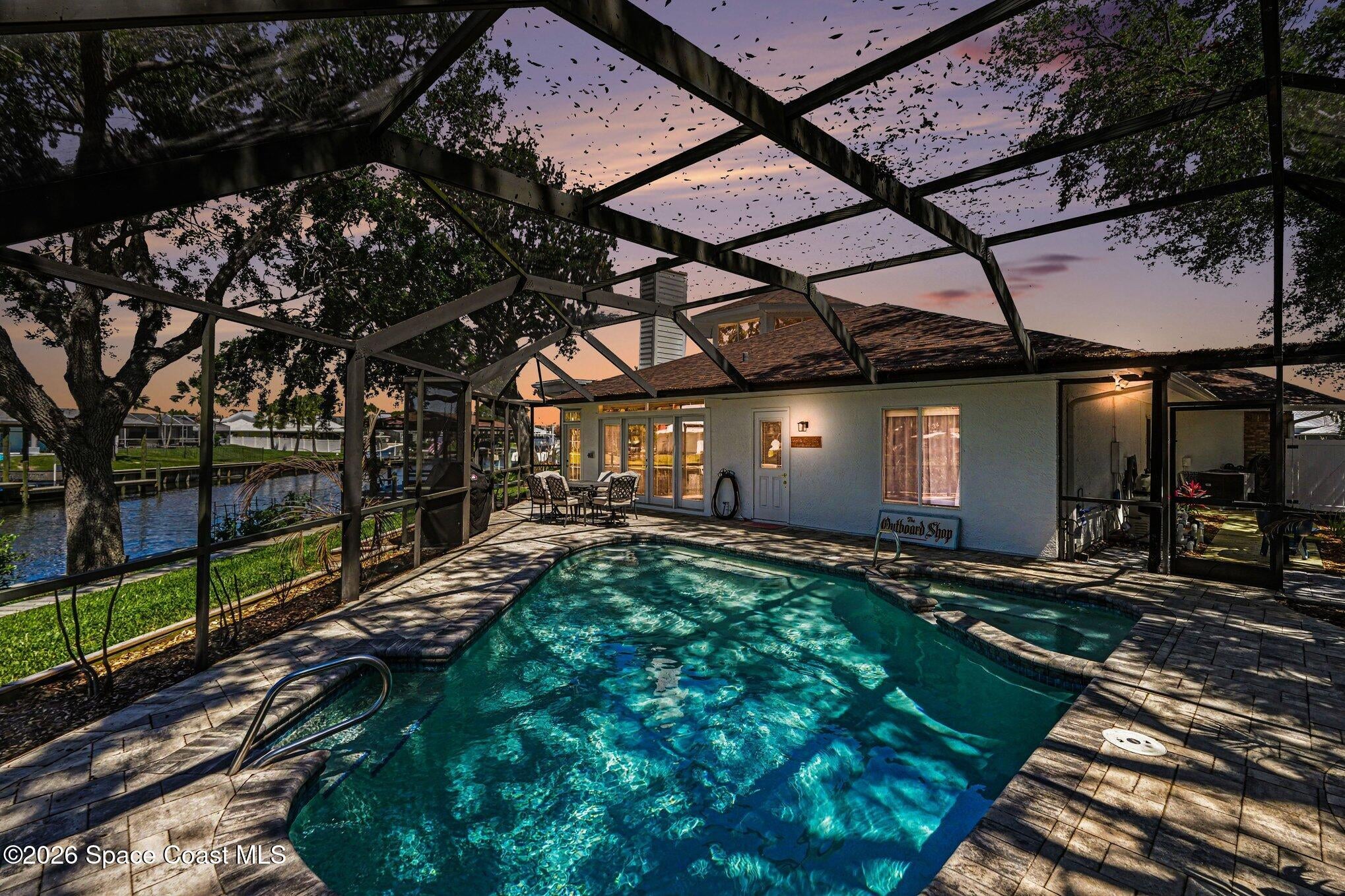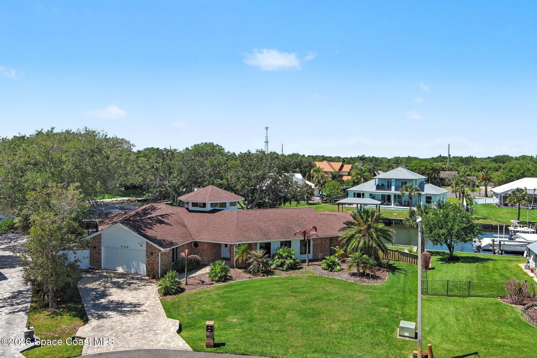 Wake up to the sparkling water views and enjoy the beauty of true waterfront living in this exceptional 4 bedroom, 2.5 bath estate on just over half an acre with 200 feet of navigable Canal frontage, only 2 homes from the river entrance. Renovated in 2024 this one of a kind home blends architectural character with refined updates, featuring soaring ceilings, dramatic turret windows, new custom kitchen soft close cabinets and sunlit living spaces designed to showcase the stunning surroundings. The enclosed Florida Room is a favorite gathering place offering peaceful water views and a seamless extension of the homes living space. Outdoors , a new seawall, private boathouse with lift, screened lanai with pool, spa and expansive paver deck create the perfect setting for boating, entertaining or simply enjoying the waterfront lifestyle. New carpeting in the bedrooms and a gorgeous master bath with soaking tub and walk in shower. The oversized paver driveway completes this impressive home.