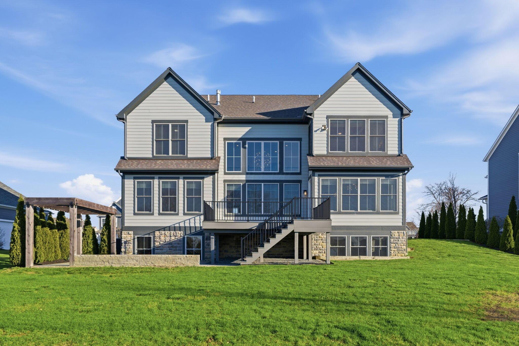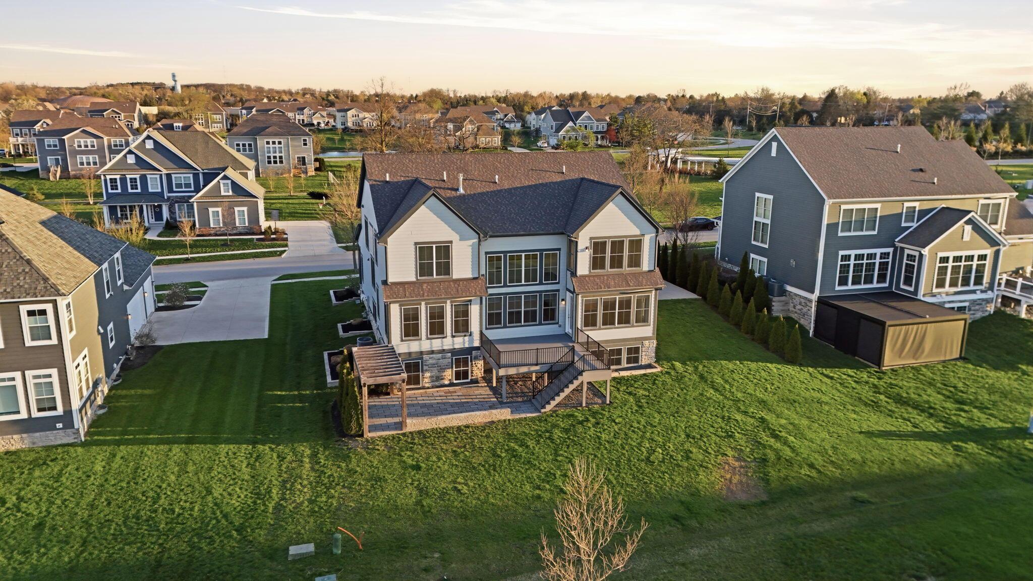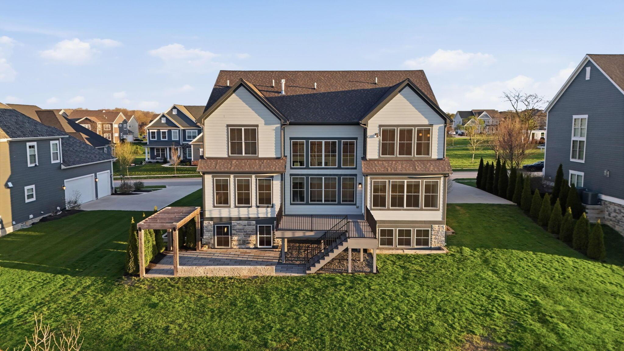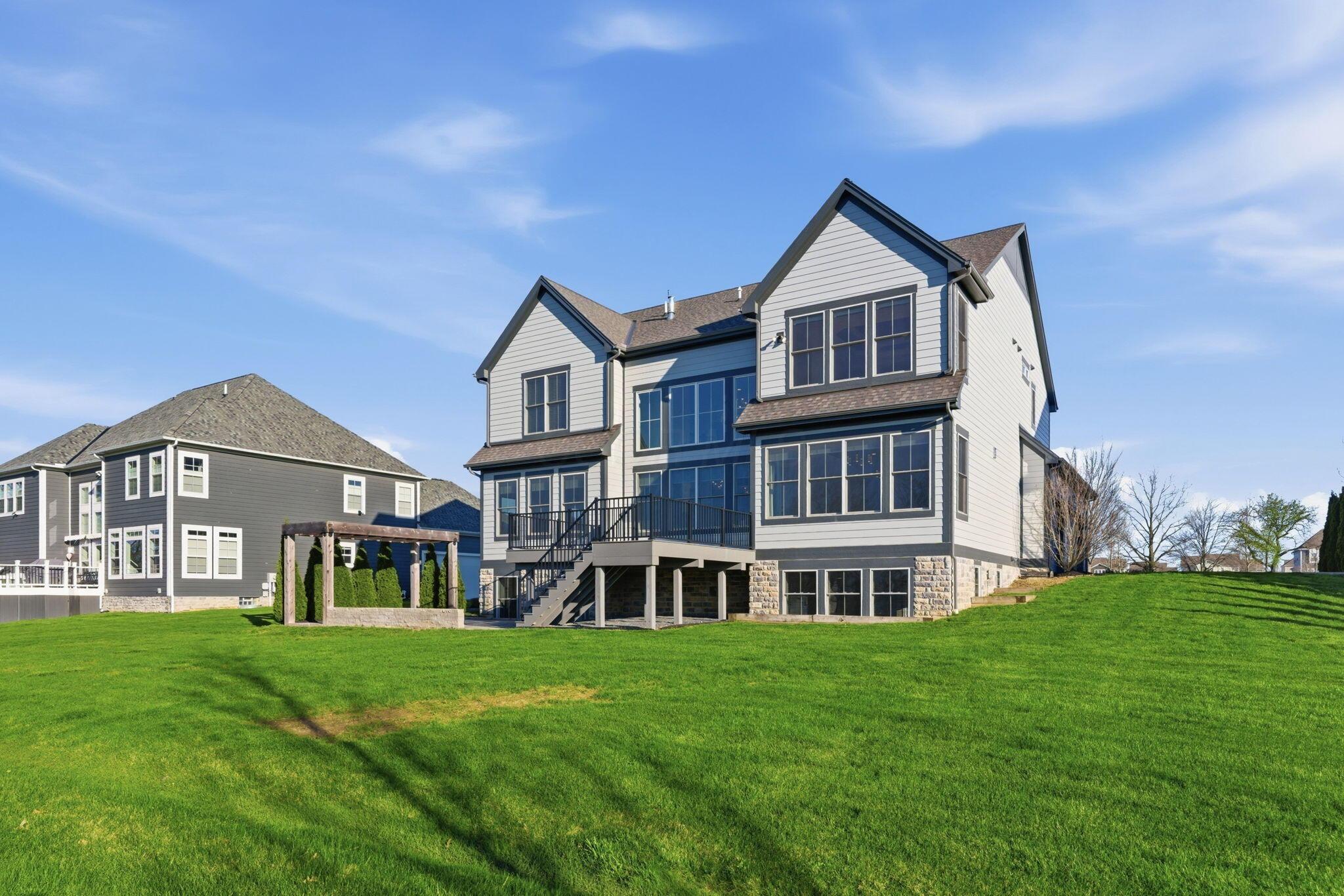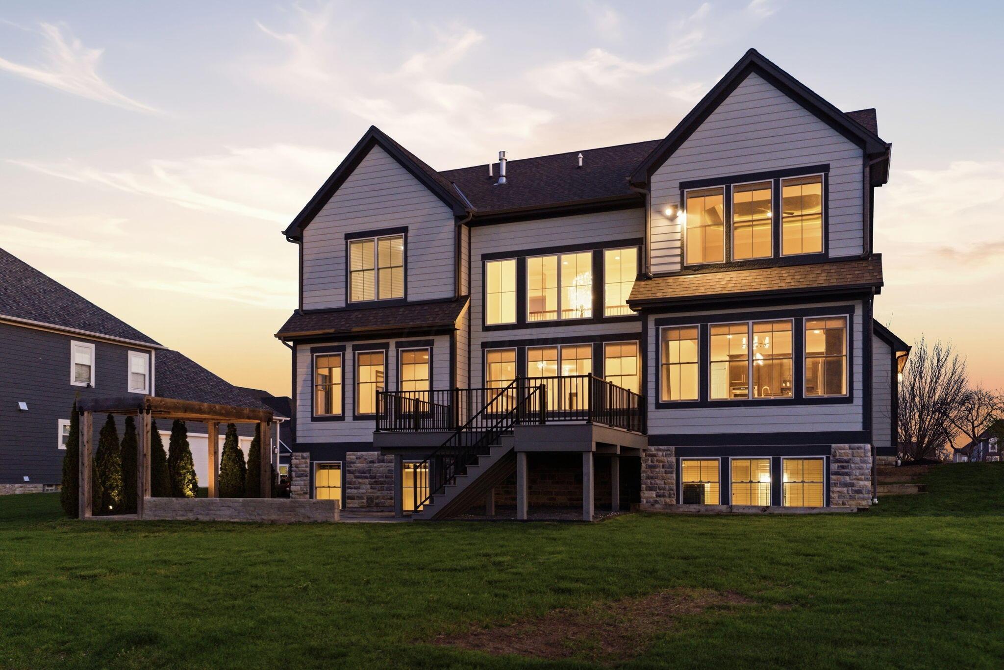Step into refined luxury in this exceptional custom-built Bob Webb residence, showcasing impeccable craftsmanship. Over 150,000 in additional high-end upgrades have been done after purchase. Offering nearly 5,800 finished sqft, this home is thoughtfully designed for both sophisticated everyday living and elevated entertaining. Featuring 5 bedrooms and 5 full baths, the main level includes a beautifully appointed guest suite, ideal for multi-generational living. The open-concept design flows seamlessly into a chefs kitchen with an oversized island, abundant custom cabinetry, a walk-in pantry, and dual dishwashers. The dramatic two-story great room features soaring ceilings and a wall of windows, filling the space with natural light and opening to a large deck, perfect for entertaining and gatherings. Below, an expansive paver patio offers the ideal setting for relaxing. Upstairs, youll find four generously sized bedrooms, three full baths, and a convenient second-floor laundry. The luxurious primary suite offers a spa-like bath with an oversized walk-in shower, dual vanities, and an expansive walk-in closet with dual sections. The finished lower level is built for entertaining with egress windows, a full bath, wet bar, and full size fridge. Additional highlights include dual HVAC systems, tankless hot water heater, poured foundation walls, and a passive radon system. Perfectly positioned on a premium lot backing to open green space within the highly sought-after Dublin City School District, this move-in-ready home offers the ultimate blend of luxury, privacy, and lifestyle.