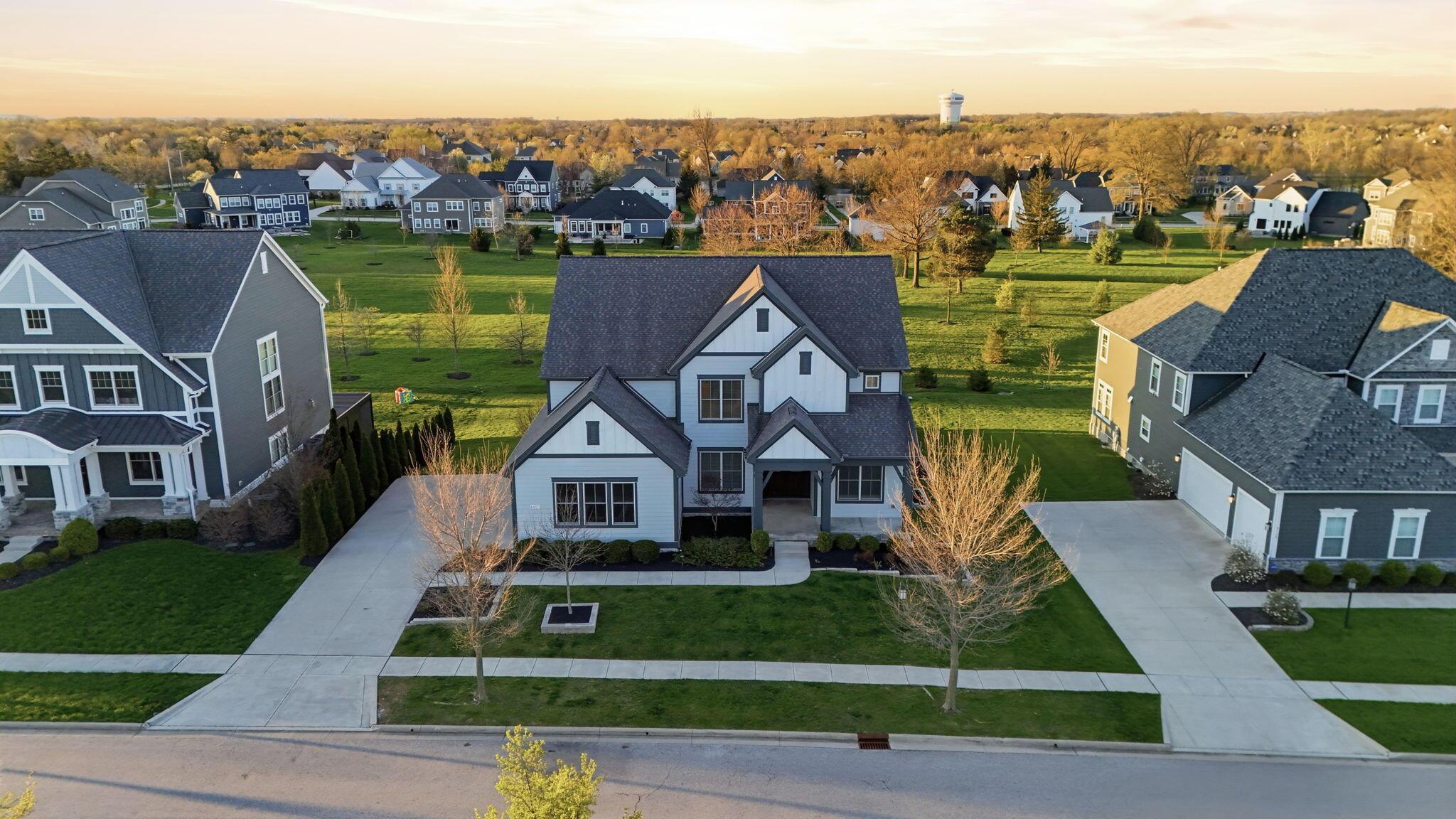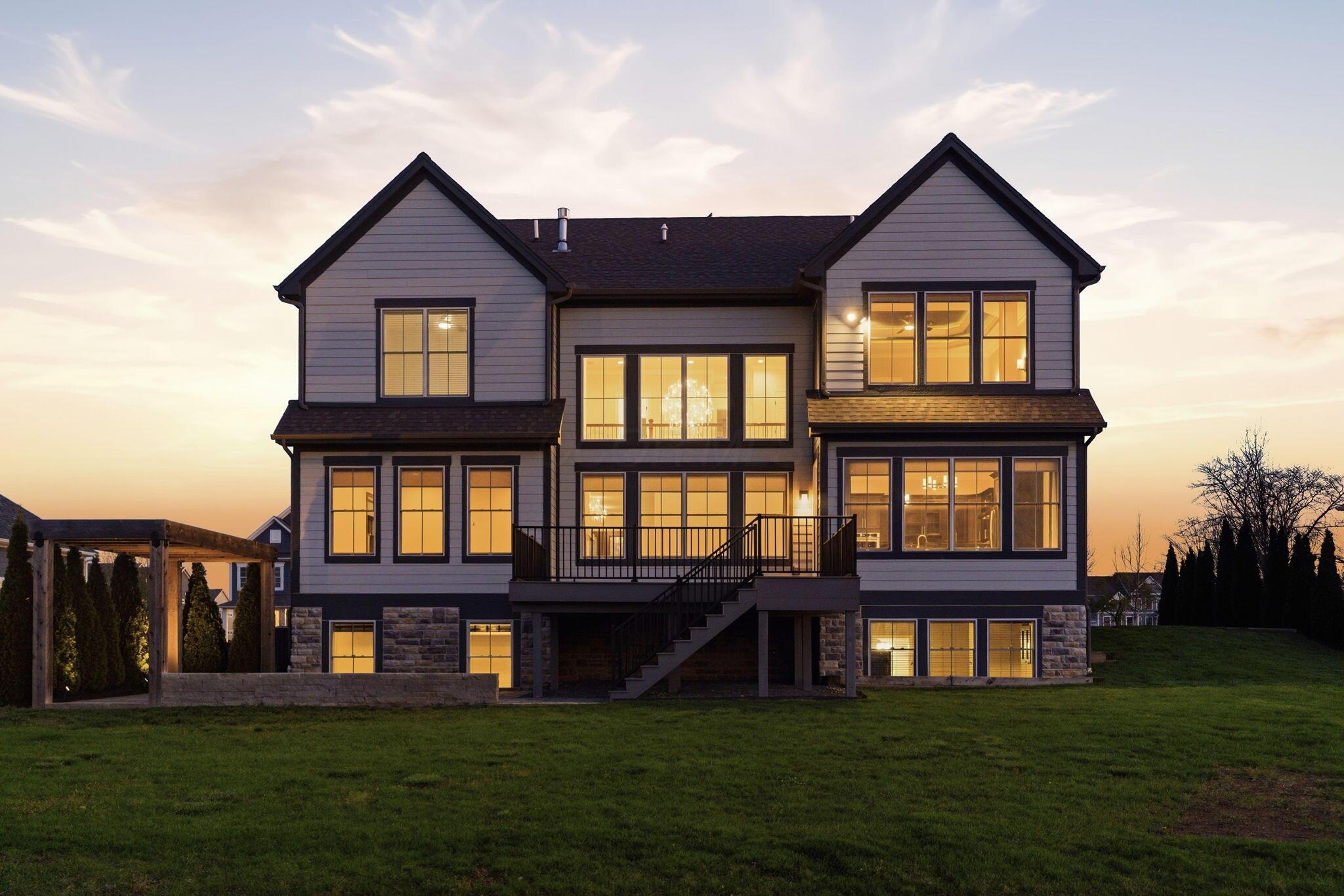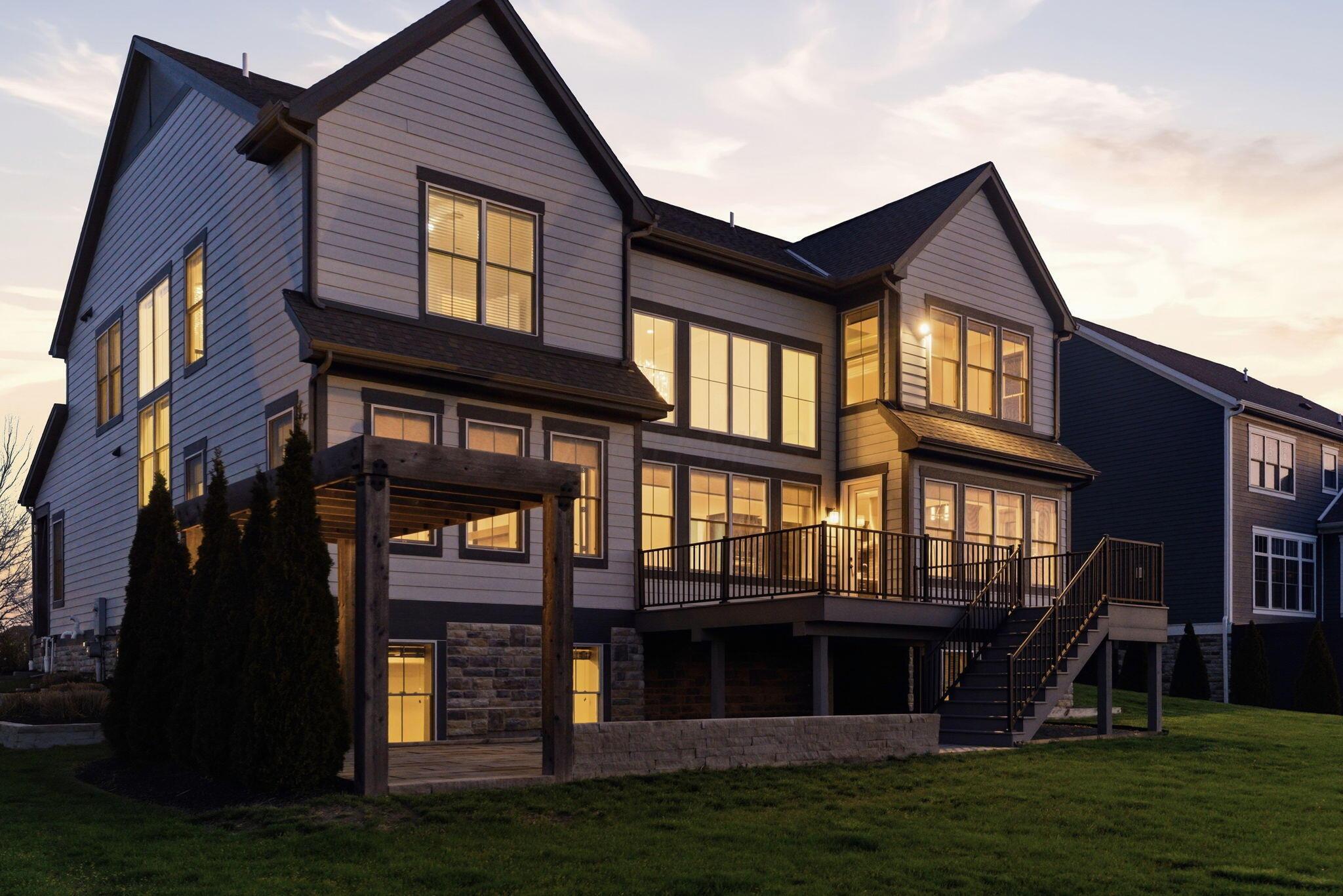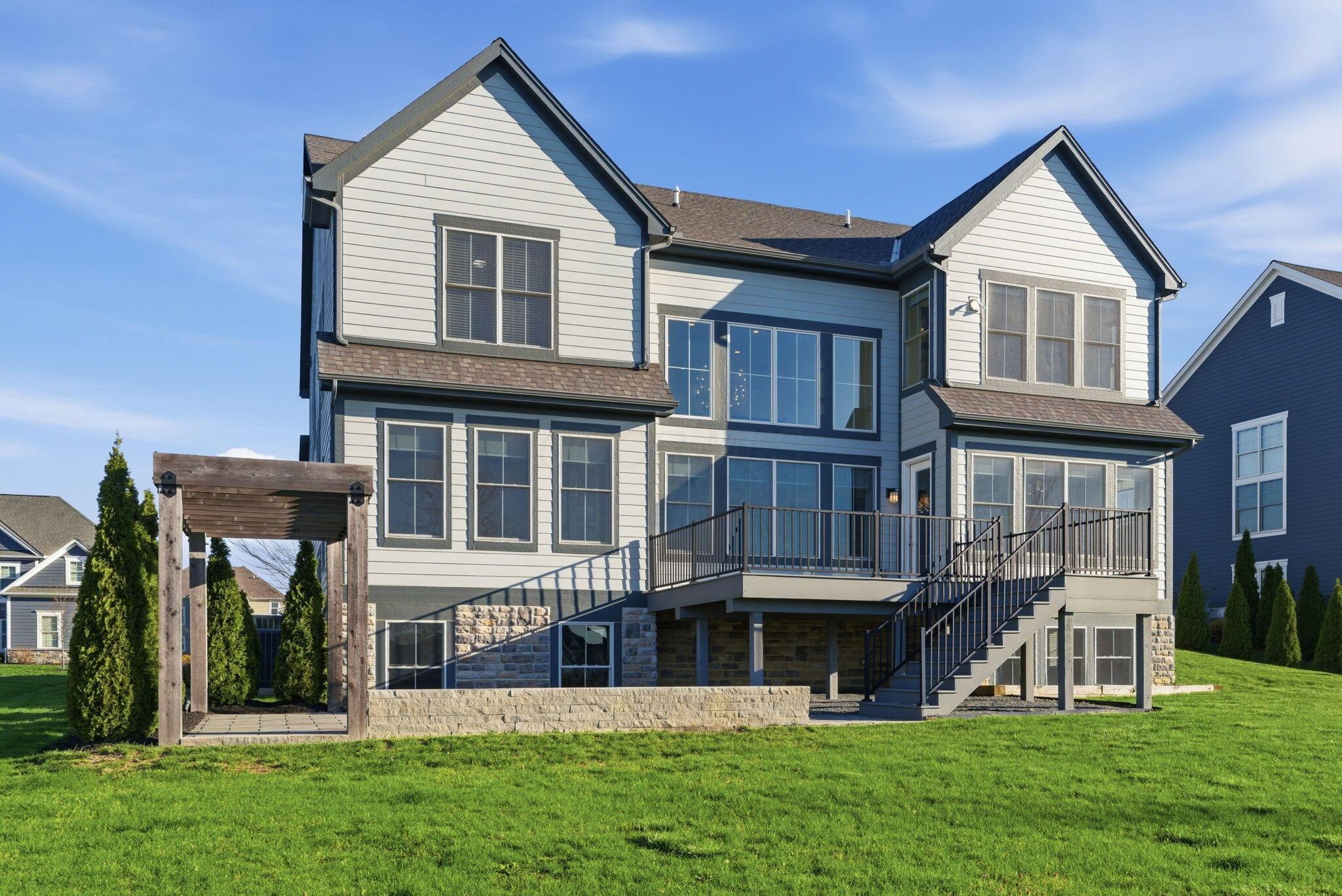 Step into refined luxury in this exceptional custom-built Bob Webb residence, showcasing impeccable craftsmanship. Over 150,000 in additional high-end upgrades have been done after purchase. Offering nearly 5,800 finished sqft, this home is thoughtfully designed for both sophisticated everyday living and elevated entertaining. Featuring 5 bedrooms and 5 full baths, the main level includes a beautifully appointed guest suite, ideal for multi-generational living. The open-concept design flows seamlessly into a chefs kitchen with an oversized island, abundant custom cabinetry, a walk-in pantry, and dual dishwashers. The dramatic two-story great room features soaring ceilings and a wall of windows, filling the space with natural light and opening to a large deck, perfect for entertaining and gatherings. Below, an expansive paver patio offers the ideal setting for relaxing. Upstairs, youll find four generously sized bedrooms, three full baths, and a convenient second-floor laundry. The luxurious primary suite offers a spa-like bath with an oversized walk-in shower, dual vanities, and an expansive walk-in closet with dual sections. The finished lower level is built for entertaining with egress windows, a full bath, wet bar, and full size fridge. Additional highlights include dual HVAC systems, tankless hot water heater, poured foundation walls, and a passive radon system. Perfectly positioned on a premium lot backing to open green space within the highly sought-after Dublin City School District, this move-in-ready home offers the ultimate blend of luxury, privacy, and lifestyle.