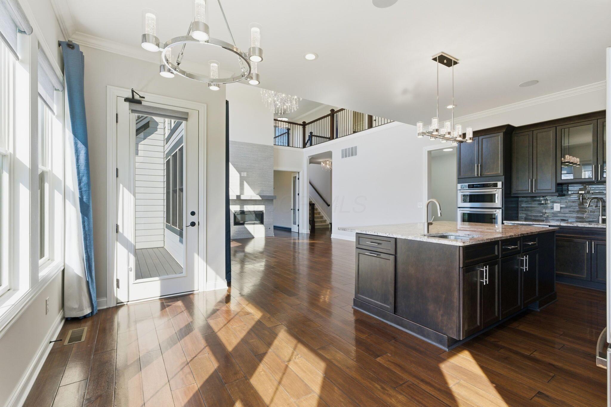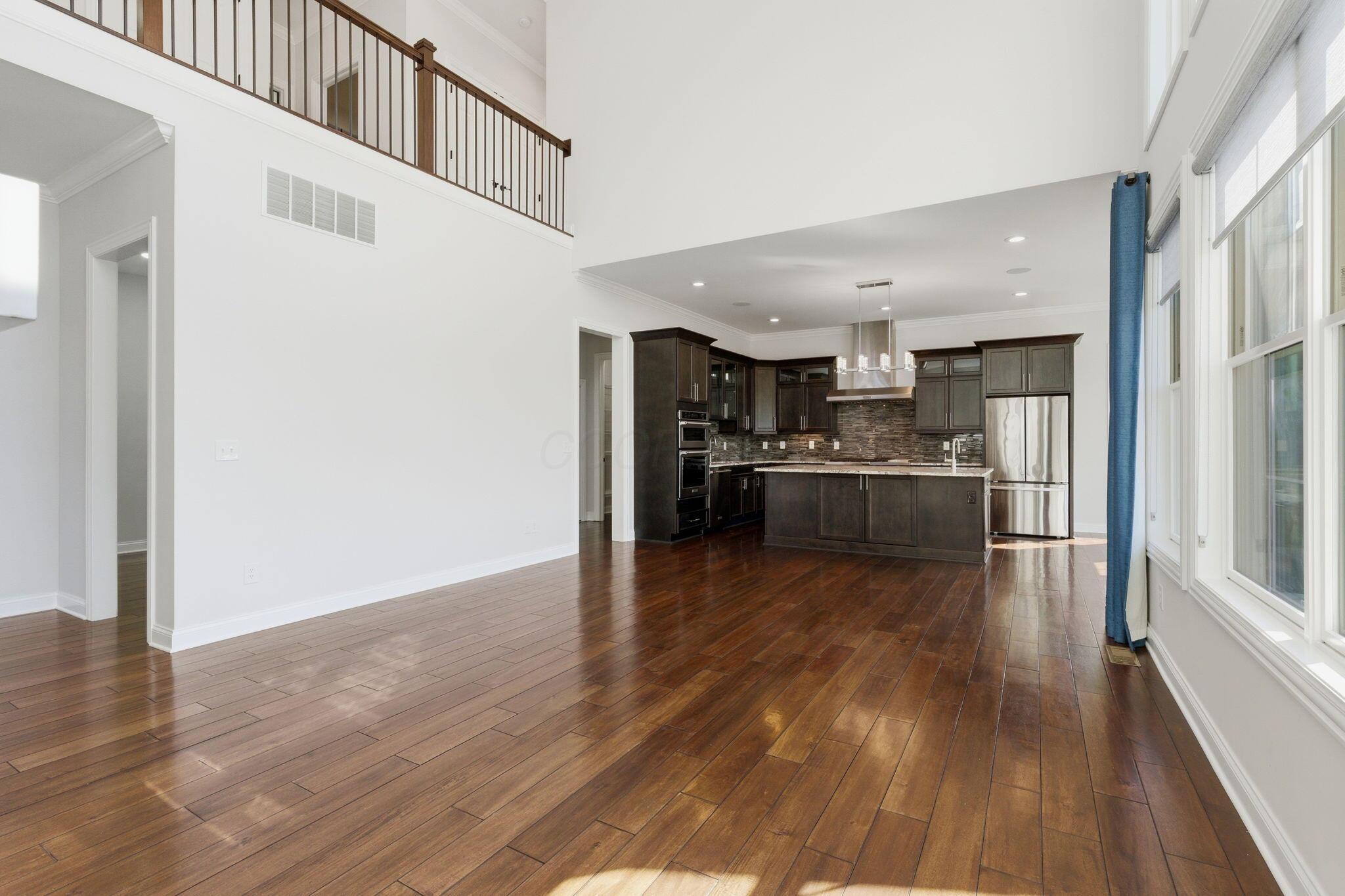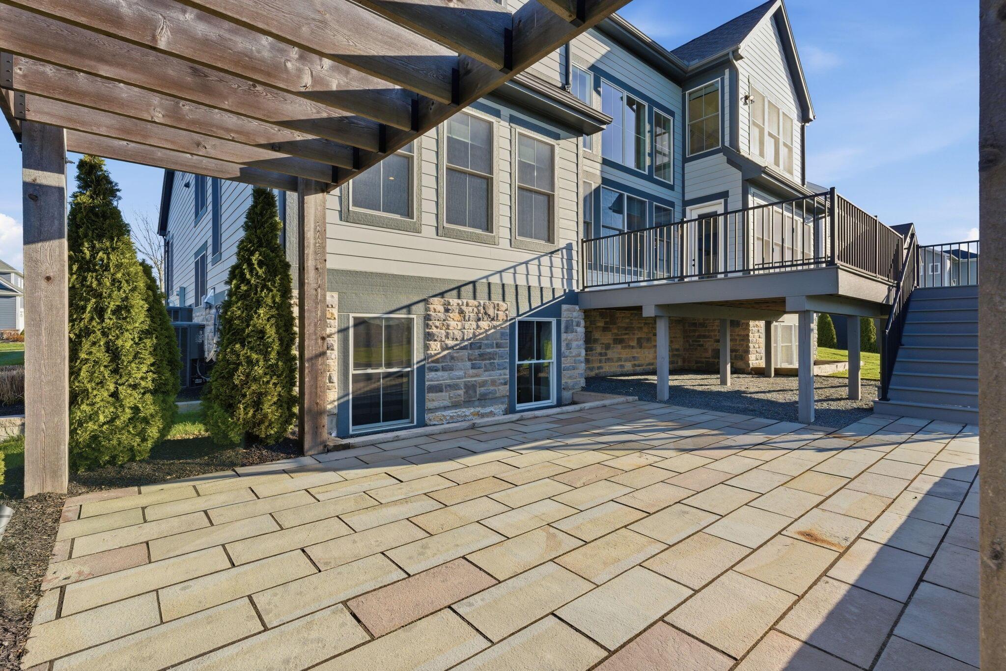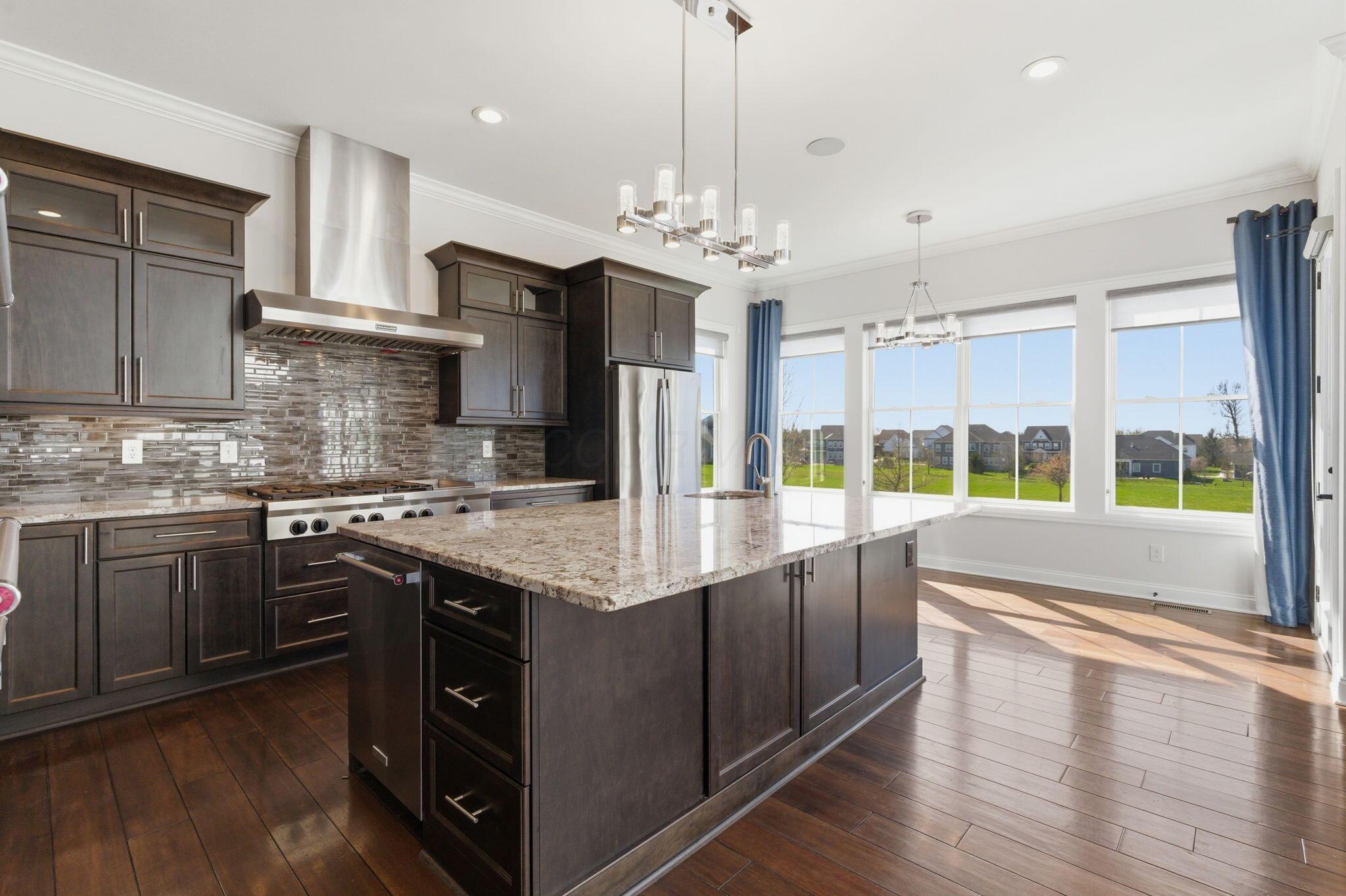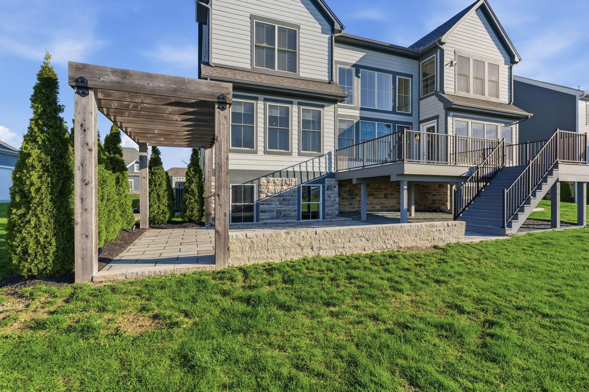 Step into refined luxury in this exceptional custom-built Bob Webb residence, showcasing impeccable craftsmanship. Over 150,000 in additional high-end upgrades have been done after purchase. Offering nearly 5,800 finished sqft, this home is thoughtfully designed for both sophisticated everyday living and elevated entertaining. Featuring 5 bedrooms and 5 full baths, the main level includes a beautifully appointed guest suite, ideal for multi-generational living. The open-concept design flows seamlessly into a chefs kitchen with an oversized island, abundant custom cabinetry, a walk-in pantry, and dual dishwashers. The dramatic two-story great room features soaring ceilings and a wall of windows, filling the space with natural light and opening to a large deck, perfect for entertaining and gatherings. Below, an expansive paver patio offers the ideal setting for relaxing. Upstairs, youll find four generously sized bedrooms, three full baths, and a convenient second-floor laundry. The luxurious primary suite offers a spa-like bath with an oversized walk-in shower, dual vanities, and an expansive walk-in closet with dual sections. The finished lower level is built for entertaining with egress windows, a full bath, wet bar, and full size fridge. Additional highlights include dual HVAC systems, tankless hot water heater, poured foundation walls, and a passive radon system. Perfectly positioned on a premium lot backing to open green space within the highly sought-after Dublin City School District, this move-in-ready home offers the ultimate blend of luxury, privacy, and lifestyle.