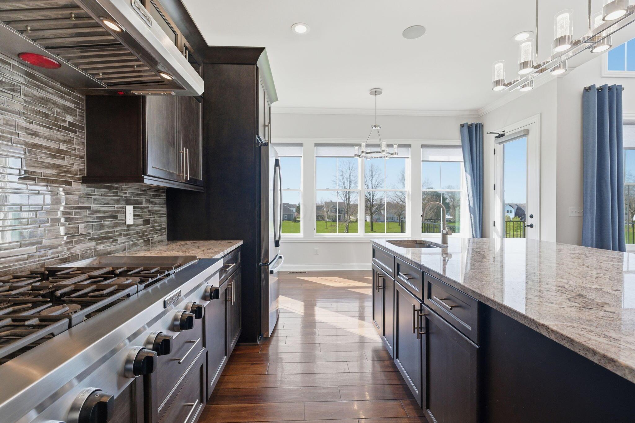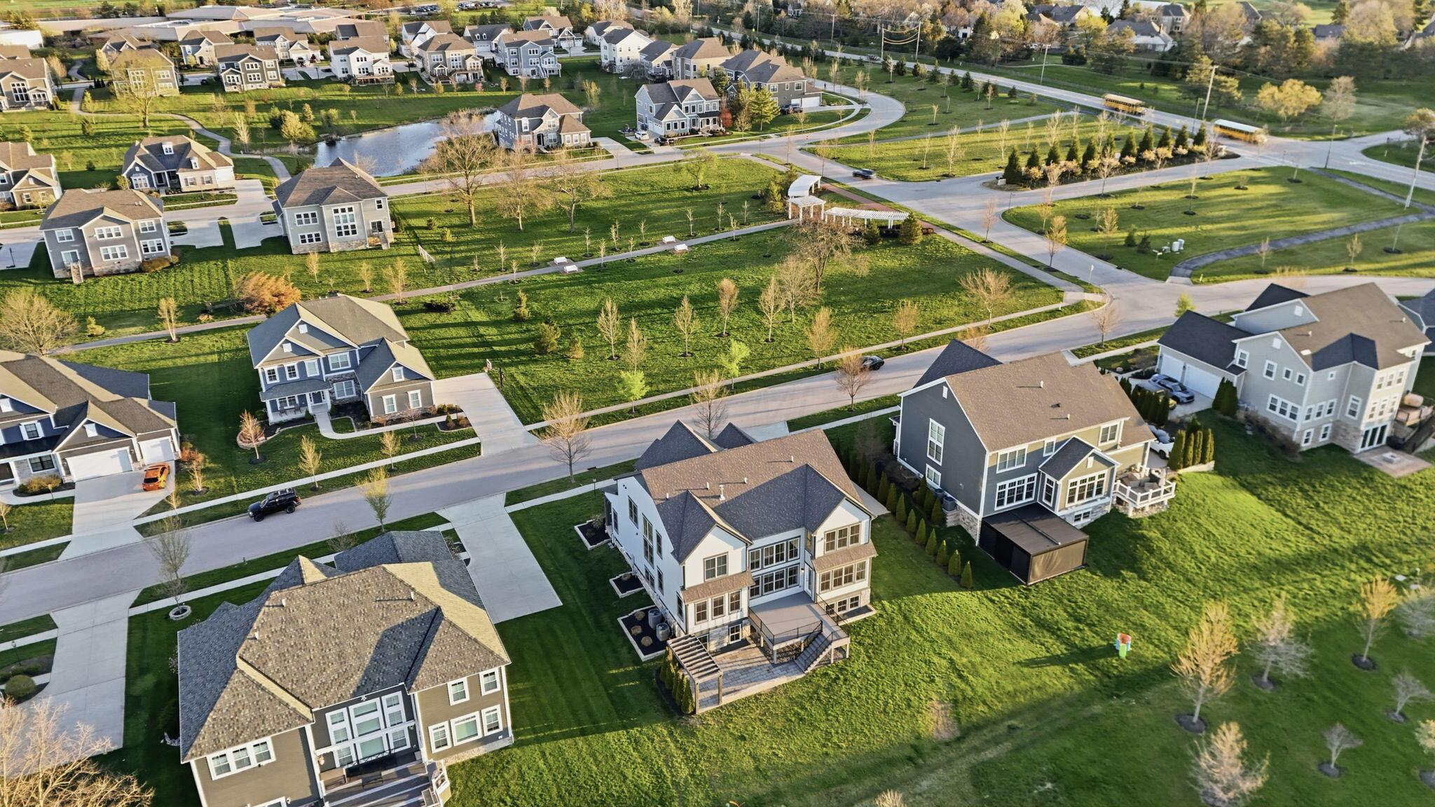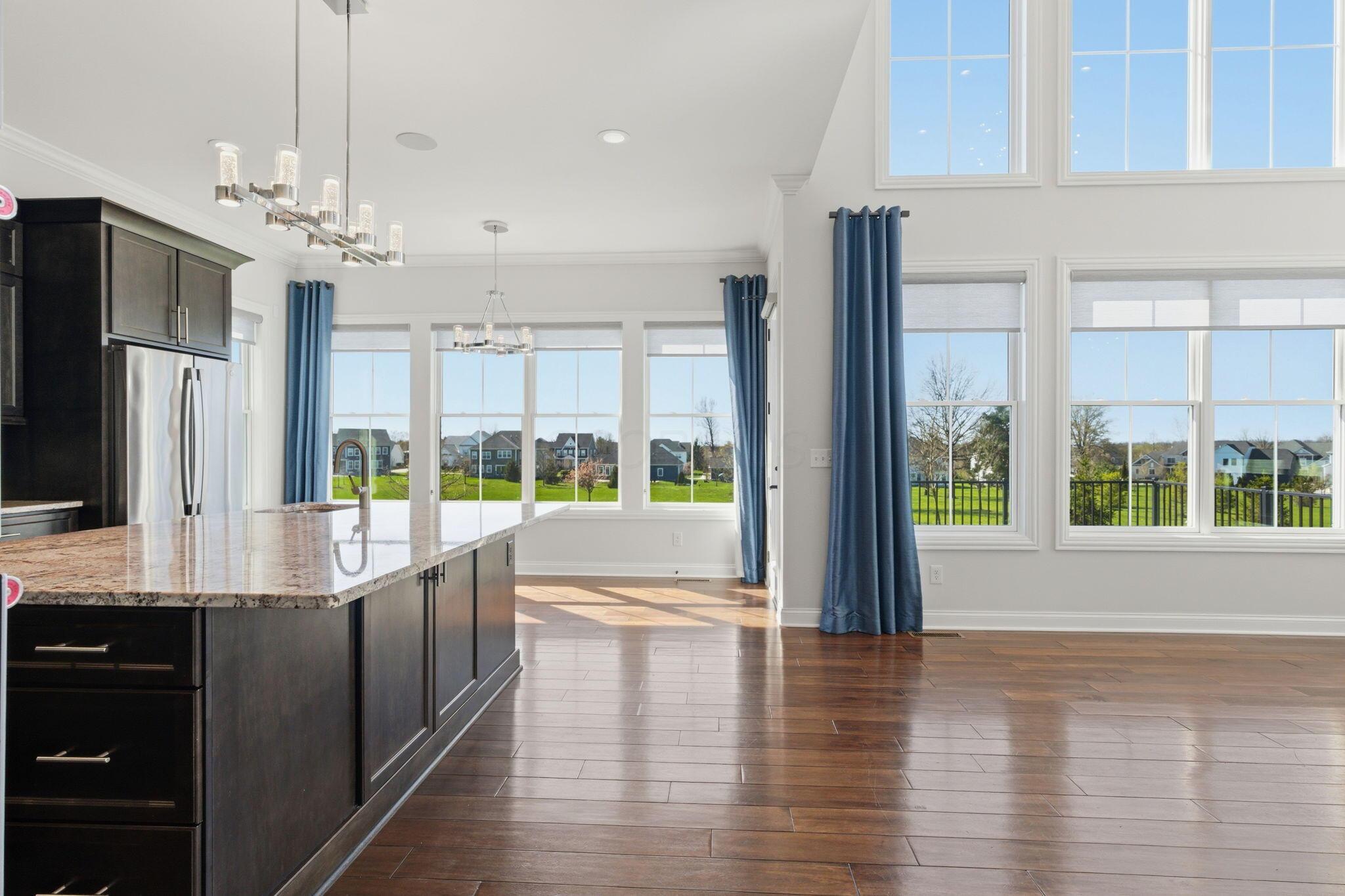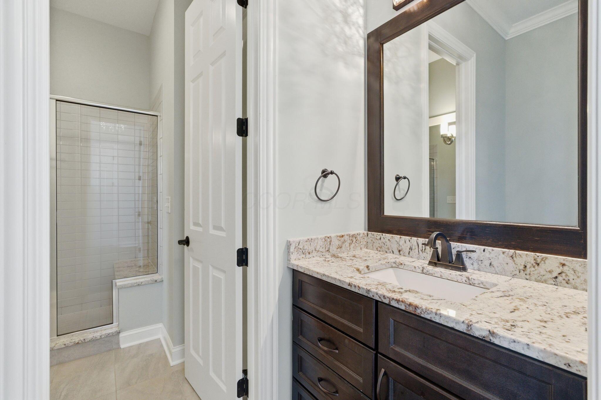 Step into refined luxury in this exceptional custom-built Bob Webb residence, showcasing impeccable craftsmanship. Over 150,000 in additional high-end upgrades have been done after purchase. Offering nearly 5,800 finished sqft, this home is thoughtfully designed for both sophisticated everyday living and elevated entertaining. Featuring 5 bedrooms and 5 full baths, the main level includes a beautifully appointed guest suite, ideal for multi-generational living. The open-concept design flows seamlessly into a chefs kitchen with an oversized island, abundant custom cabinetry, a walk-in pantry, and dual dishwashers. The dramatic two-story great room features soaring ceilings and a wall of windows, filling the space with natural light and opening to a large deck, perfect for entertaining and gatherings. Below, an expansive paver patio offers the ideal setting for relaxing. Upstairs, youll find four generously sized bedrooms, three full baths, and a convenient second-floor laundry. The luxurious primary suite offers a spa-like bath with an oversized walk-in shower, dual vanities, and an expansive walk-in closet with dual sections. The finished lower level is built for entertaining with egress windows, a full bath, wet bar, and full size fridge. Additional highlights include dual HVAC systems, tankless hot water heater, poured foundation walls, and a passive radon system. Perfectly positioned on a premium lot backing to open green space within the highly sought-after Dublin City School District, this move-in-ready home offers the ultimate blend of luxury, privacy, and lifestyle.
