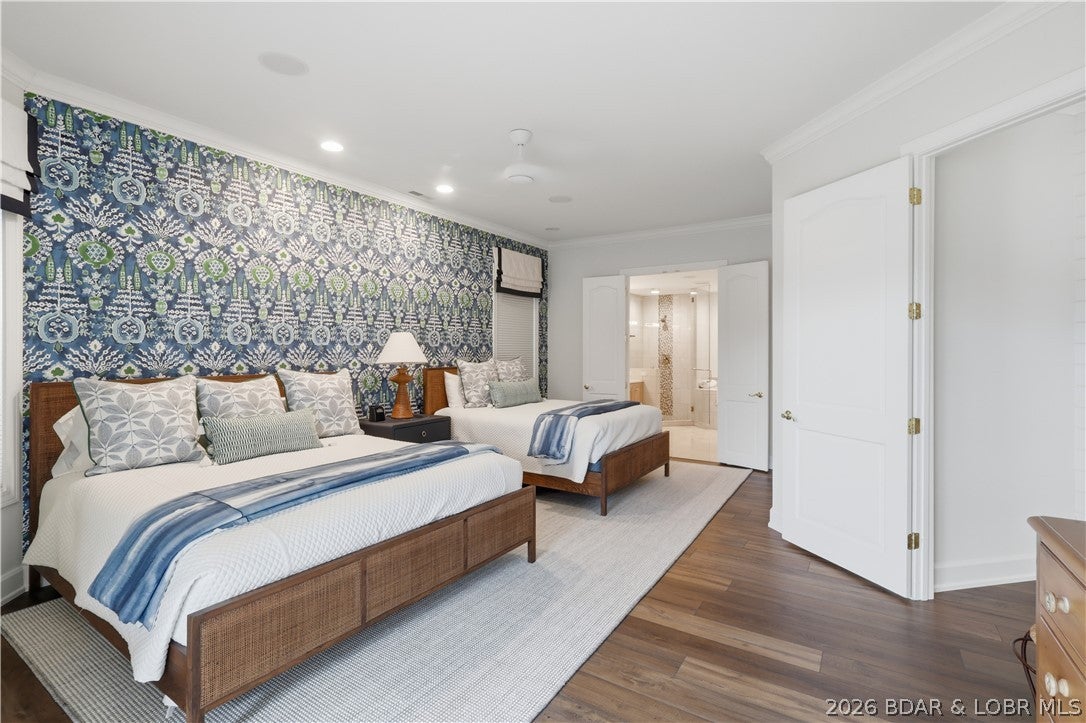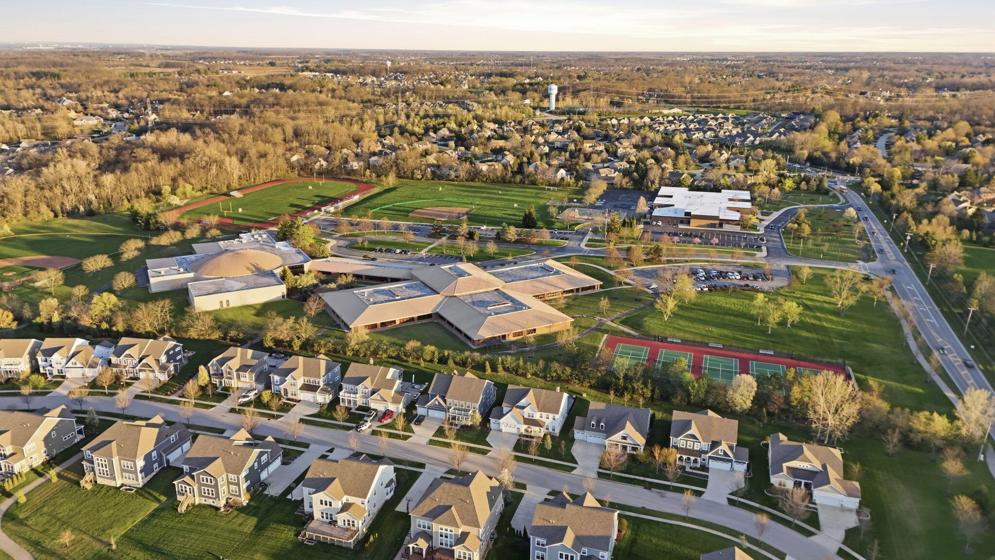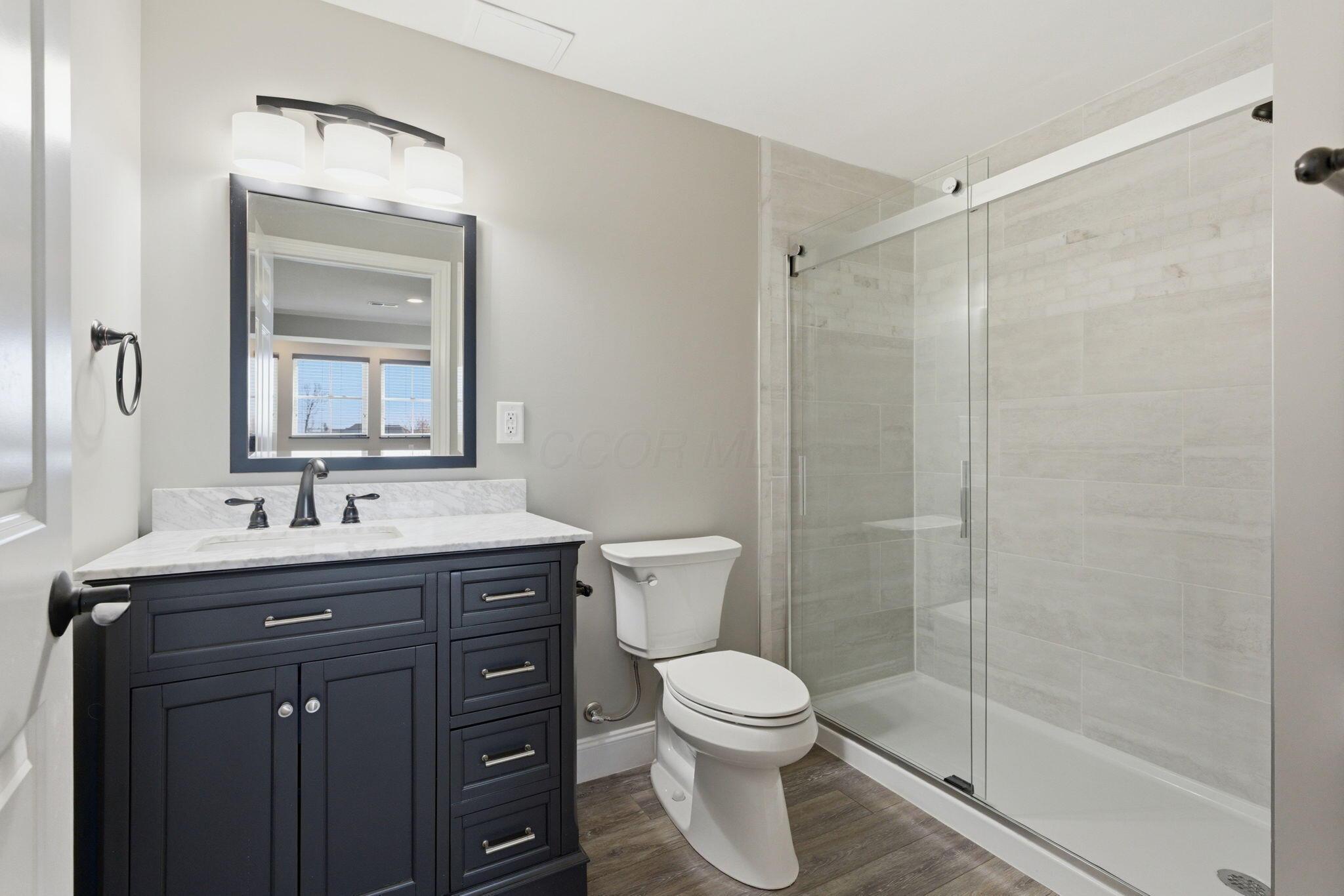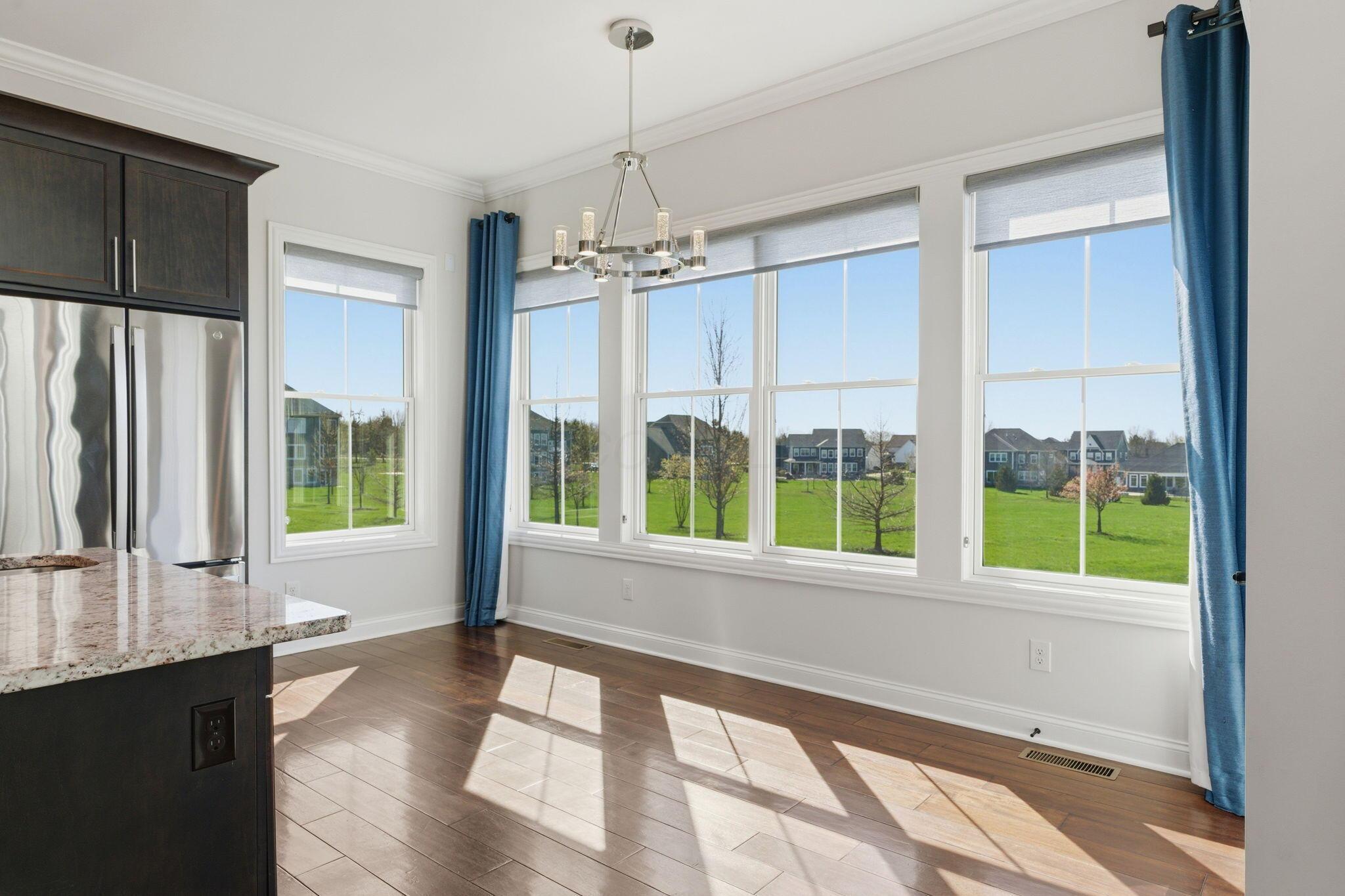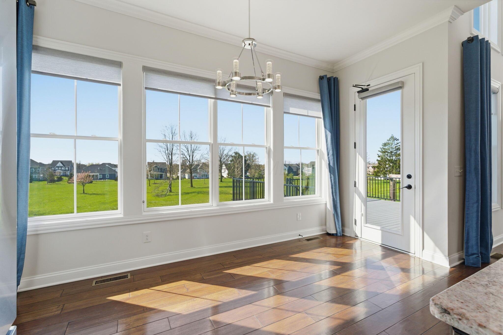 Step into refined luxury in this exceptional custom-built Bob Webb residence, showcasing impeccable craftsmanship. Over 150,000 in additional high-end upgrades have been done after purchase. Offering nearly 5,800 finished sqft, this home is thoughtfully designed for both sophisticated everyday living and elevated entertaining. Featuring 5 bedrooms and 5 full baths, the main level includes a beautifully appointed guest suite, ideal for multi-generational living. The open-concept design flows seamlessly into a chefs kitchen with an oversized island, abundant custom cabinetry, a walk-in pantry, and dual dishwashers. The dramatic two-story great room features soaring ceilings and a wall of windows, filling the space with natural light and opening to a large deck, perfect for entertaining and gatherings. Below, an expansive paver patio offers the ideal setting for relaxing. Upstairs, youll find four generously sized bedrooms, three full baths, and a convenient second-floor laundry. The luxurious primary suite offers a spa-like bath with an oversized walk-in shower, dual vanities, and an expansive walk-in closet with dual sections. The finished lower level is built for entertaining with egress windows, a full bath, wet bar, and full size fridge. Additional highlights include dual HVAC systems, tankless hot water heater, poured foundation walls, and a passive radon system. Perfectly positioned on a premium lot backing to open green space within the highly sought-after Dublin City School District, this move-in-ready home offers the ultimate blend of luxury, privacy, and lifestyle.